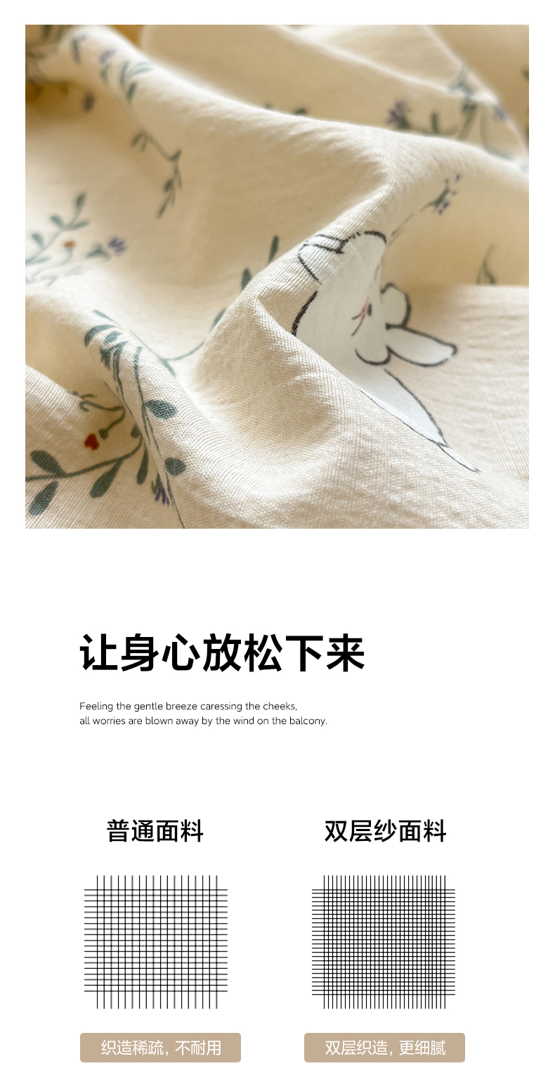当前位置: 91家纺网 > 商品网购 > 床品套件 > 四件套 > 其它四件套 > 卡迪熊家纺 2025新款超柔云感m印花双层纱四件套 迷路兔兔