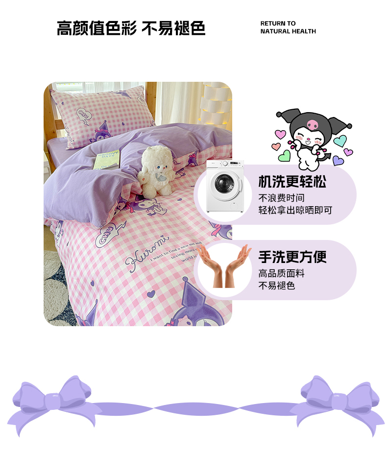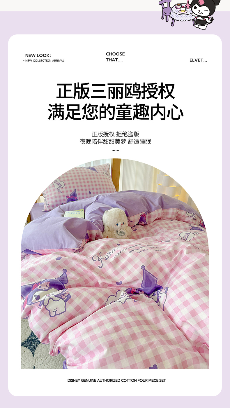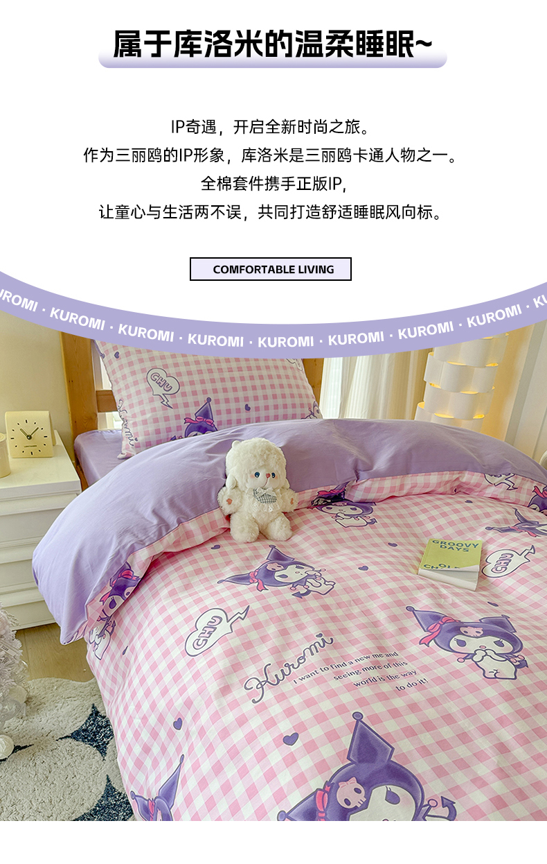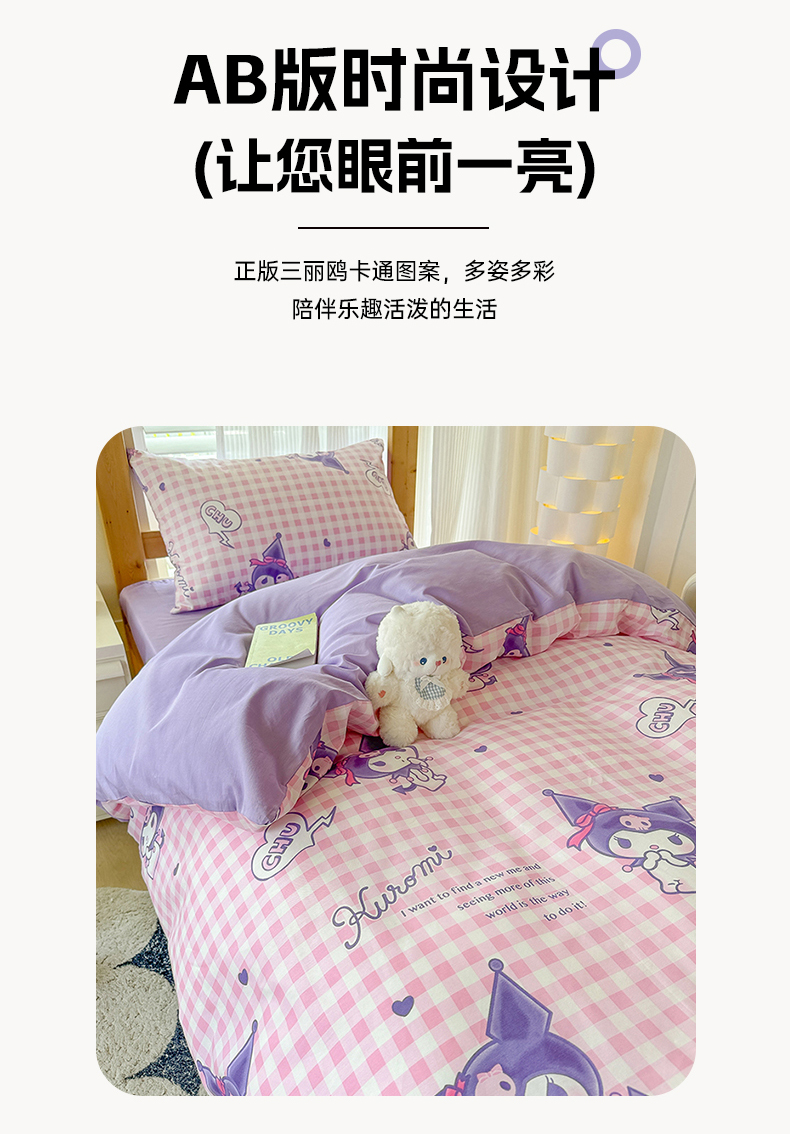 (总)玉元坊 2026新款正版授权三丽鸥系列全棉纯棉床单四件套学生三件套-库洛米系列,库洛米【简约款】,库洛米宝贝【简约款】,甜甜库洛米【简约款】,条纹库洛米【简约款】,樱桃库洛米【简约款】,紫格库洛米【简约款】