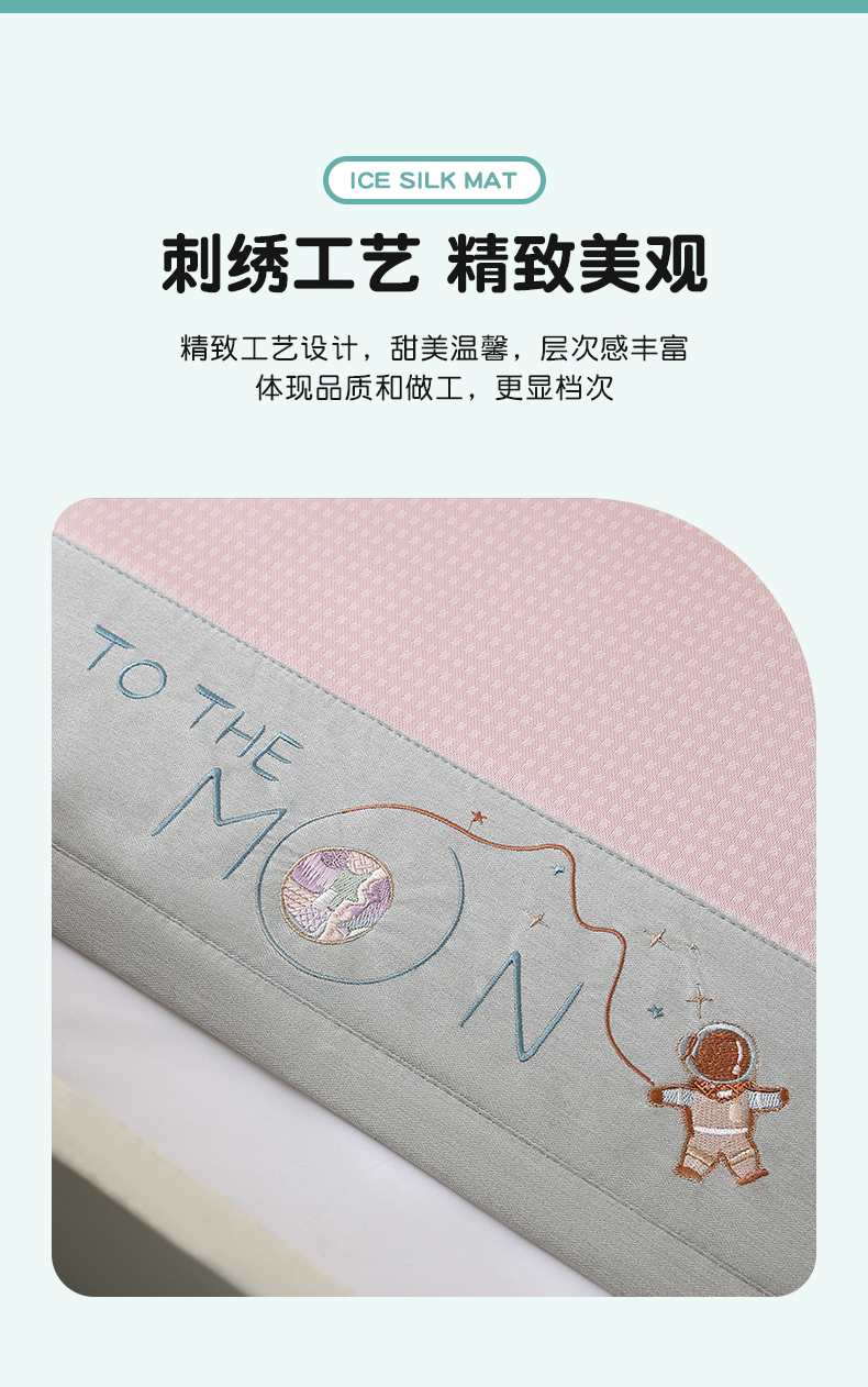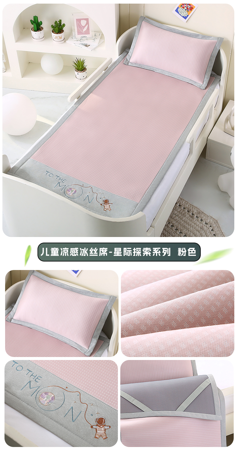 商品名称:小牛席业 2025新款儿童凉感冰丝席儿童席-星际探索 星际探索-粉色