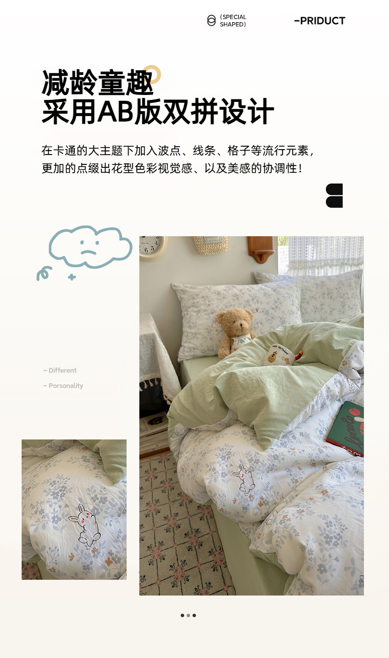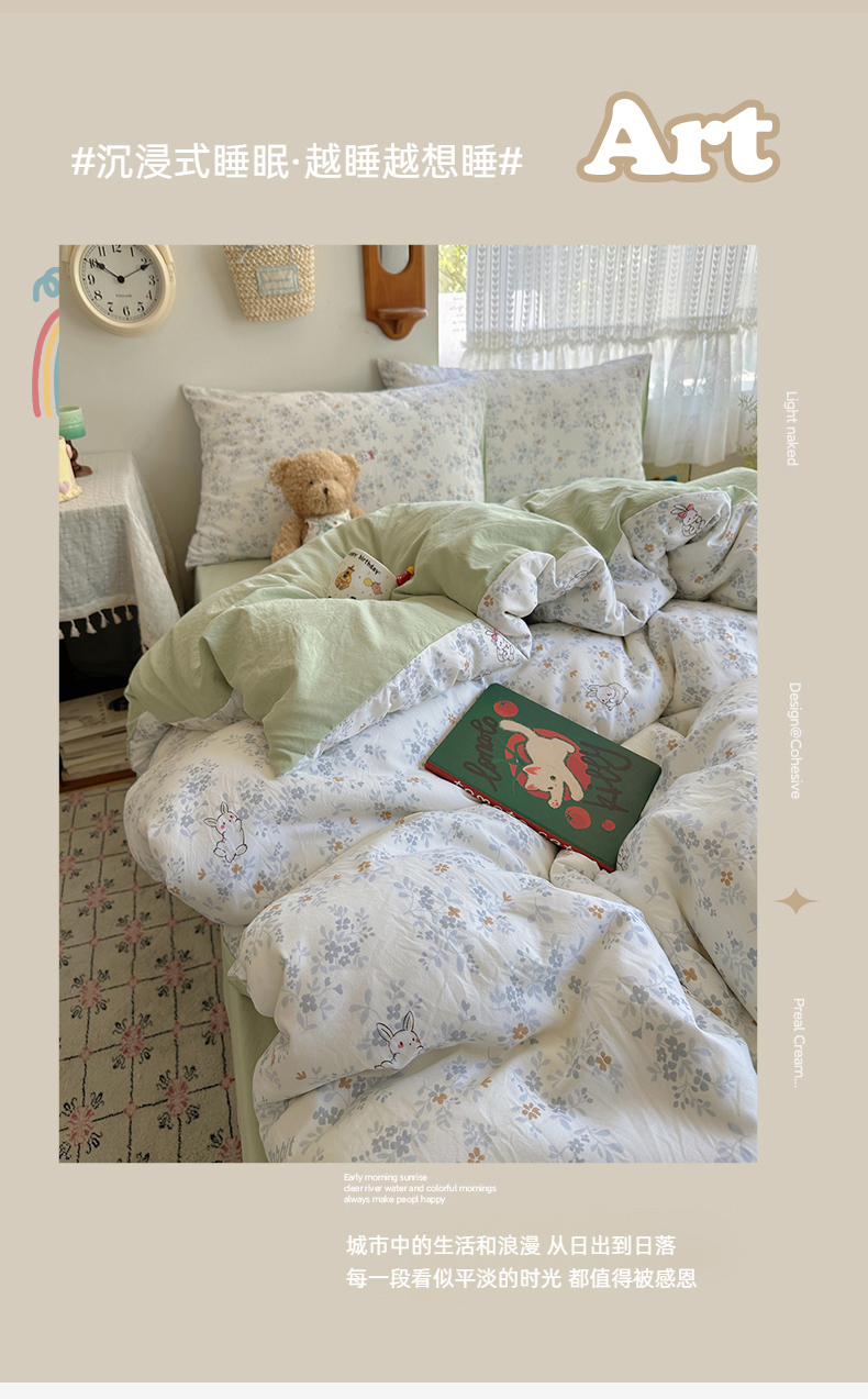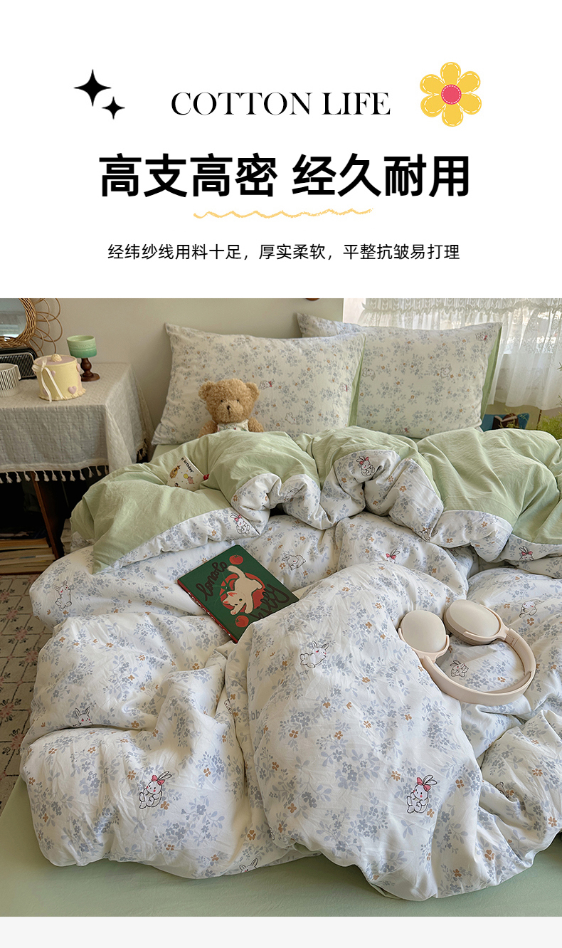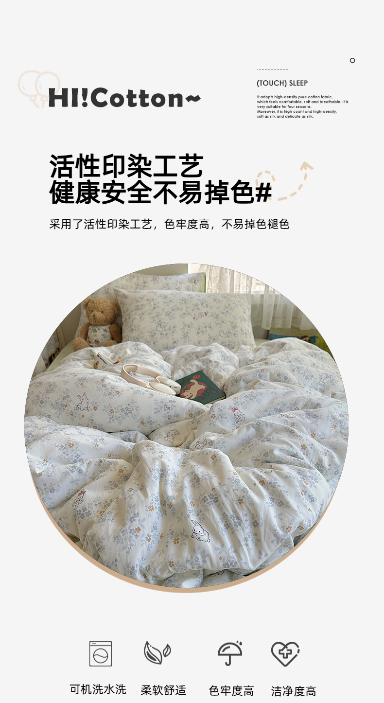 当前位置: 91家纺网 > 商品网购 > 床品套件 > 四件套 > 水洗棉四件套 > 沐芷 2025 开学季水洗棉四件套A类 卡通简约风超柔舒适三件套 繁花兔兔