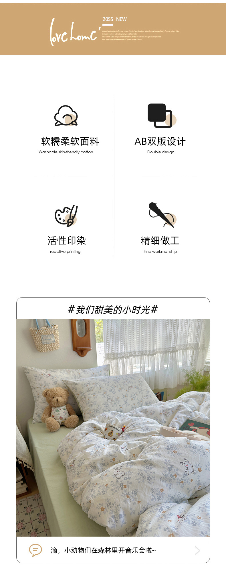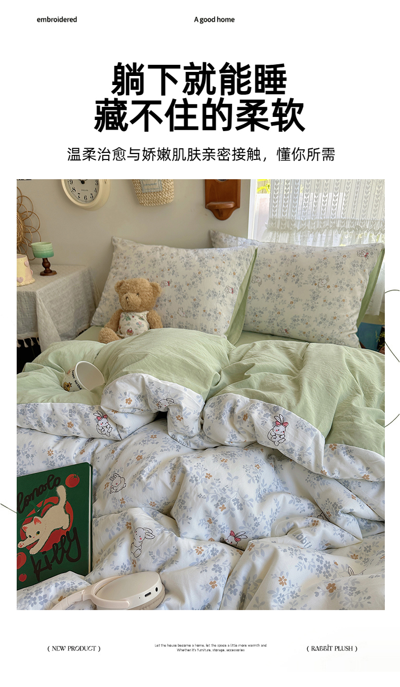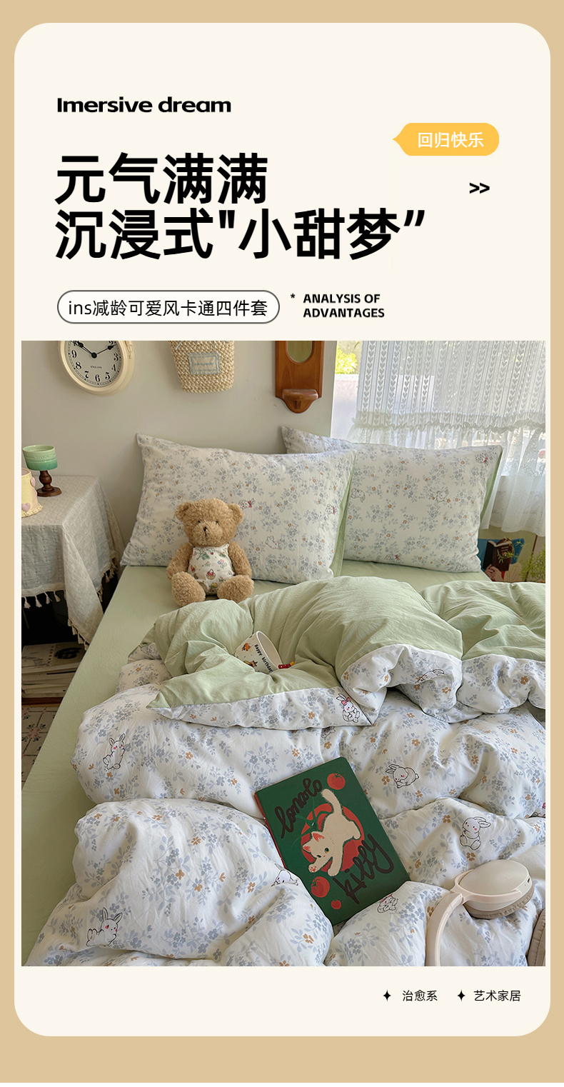 当前位置: 91家纺网 > 商品网购 > 床品套件 > 四件套 > 水洗棉四件套 > 沐芷 2025 开学季水洗棉四件套A类 卡通简约风超柔舒适三件套 繁花兔兔