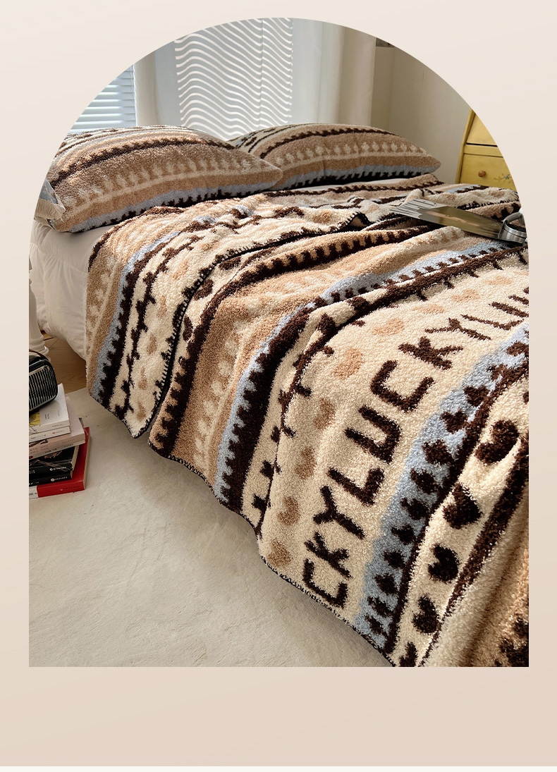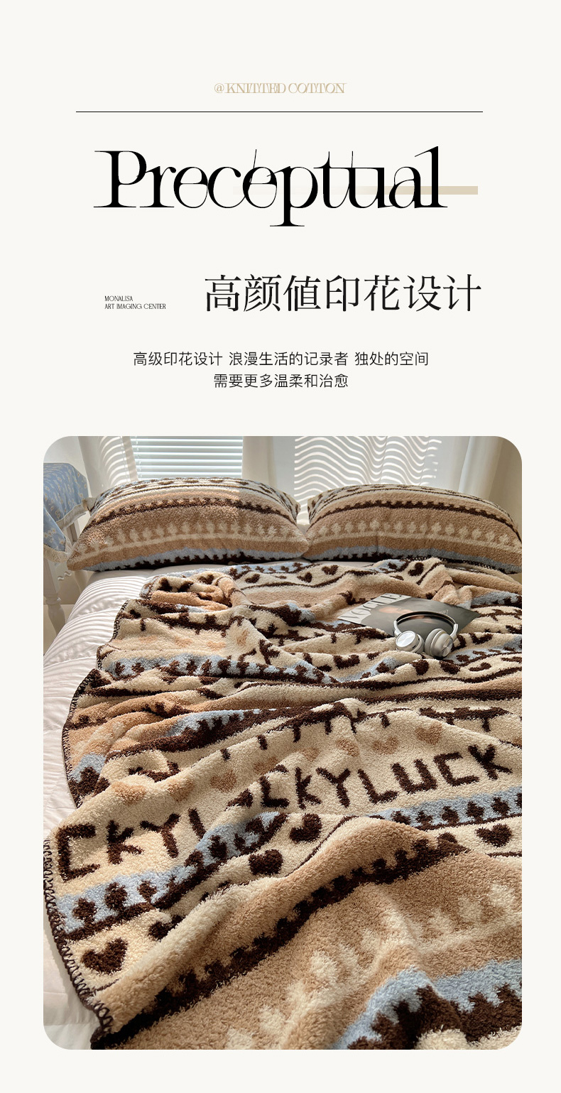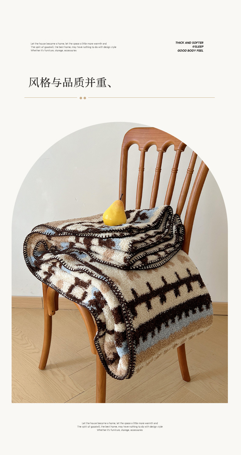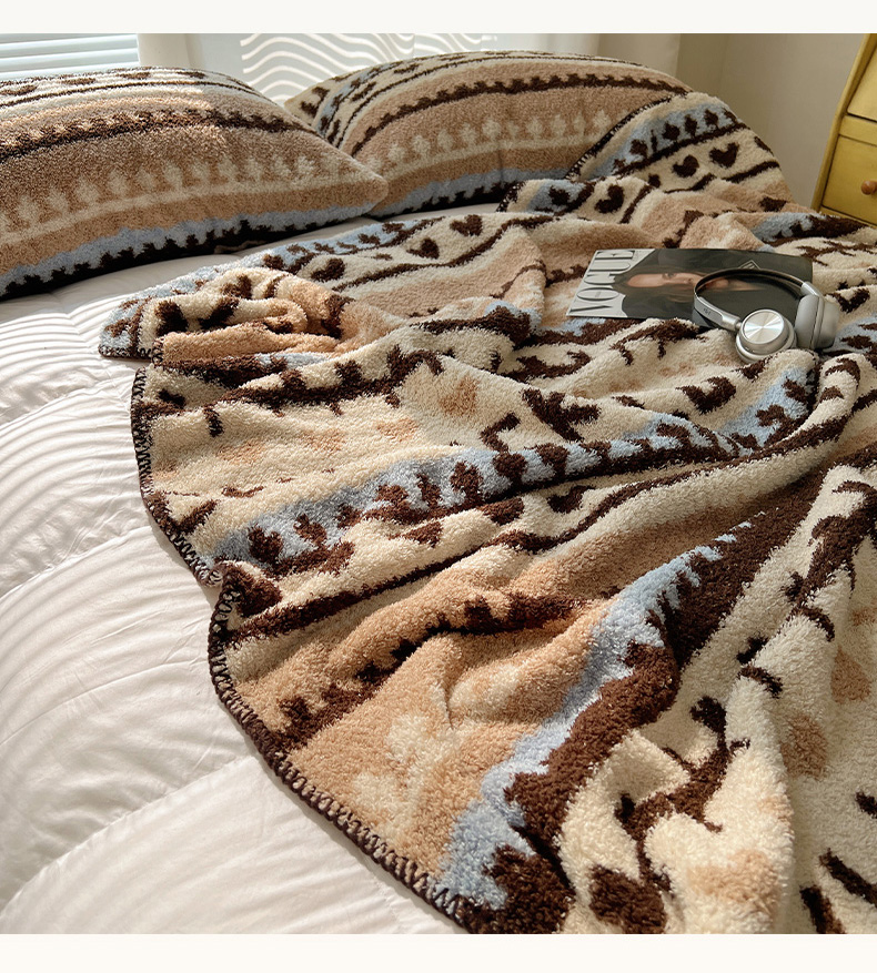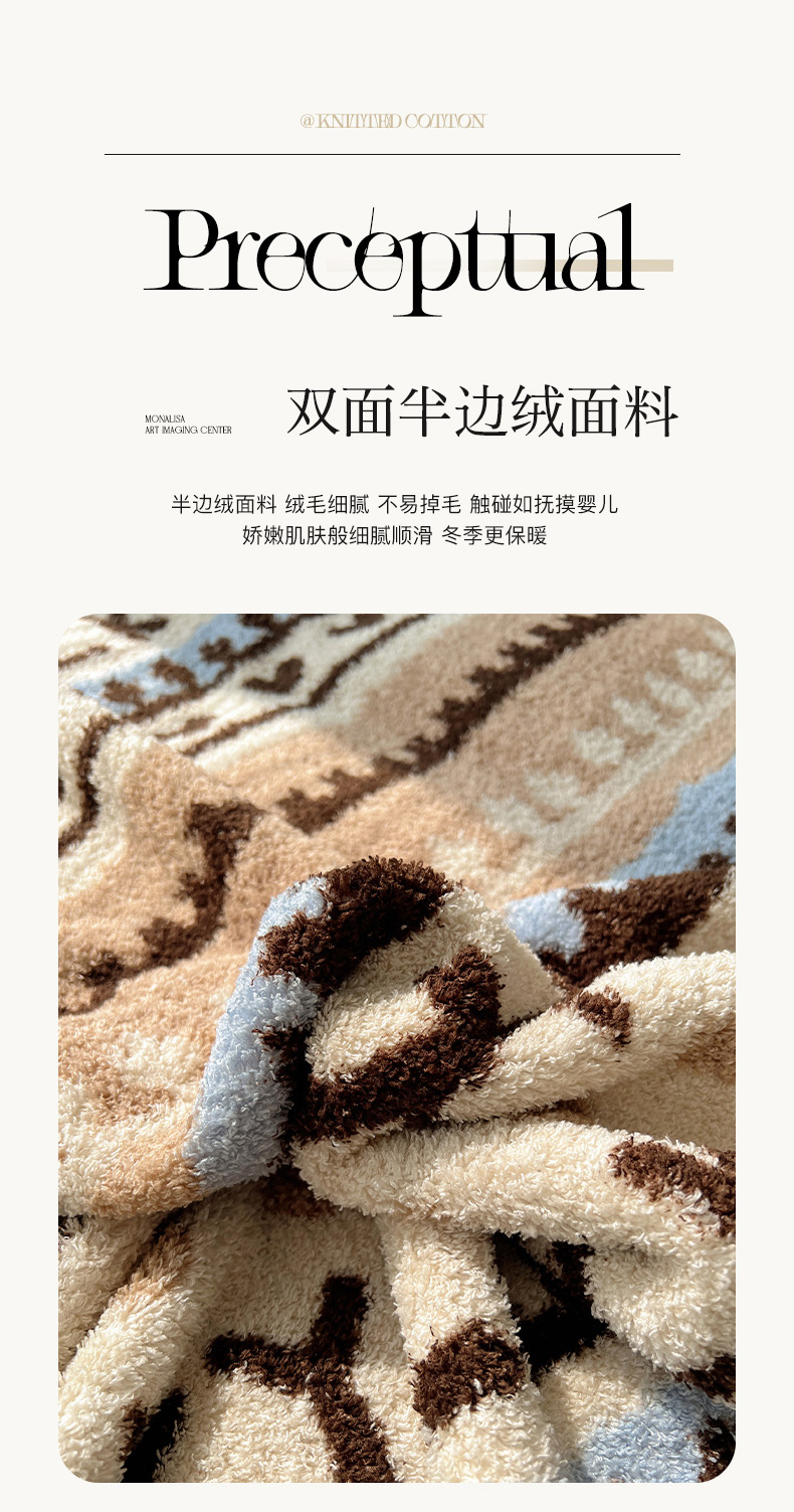 商品名称:舒隅家纺 A类高级感半边绒三角针毛毯毯子 费尔岛-咖
