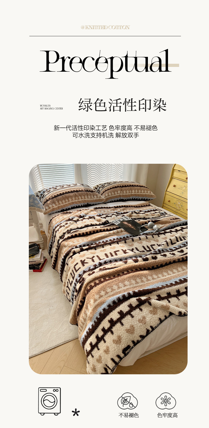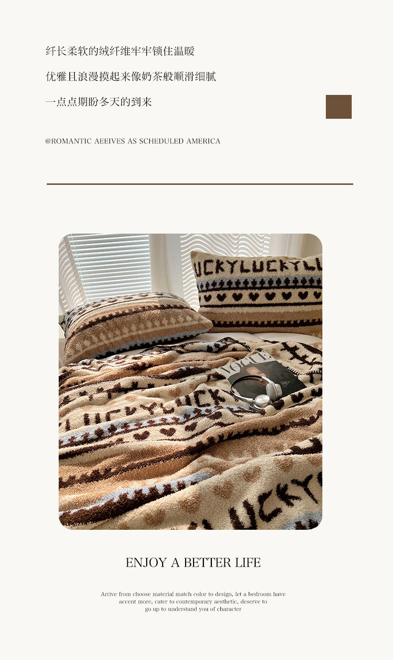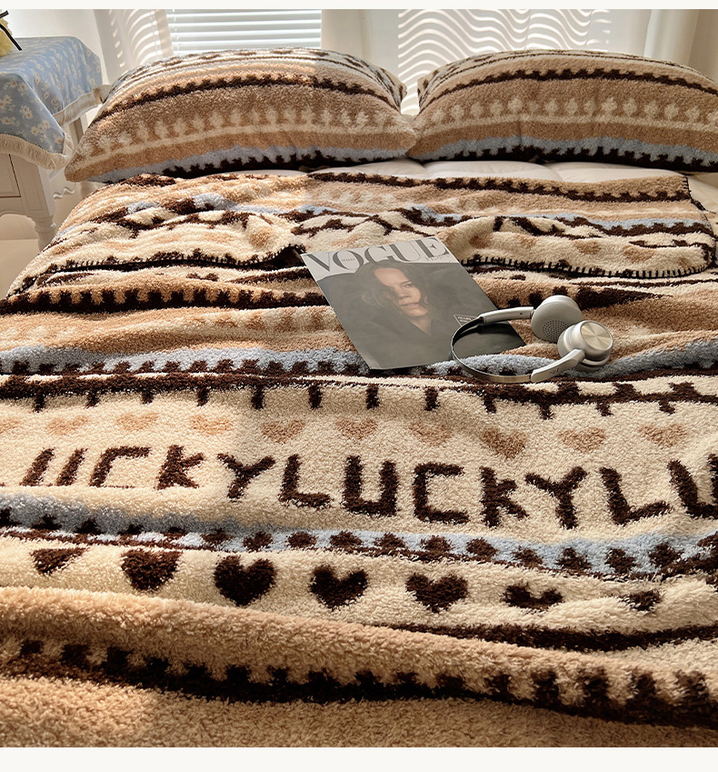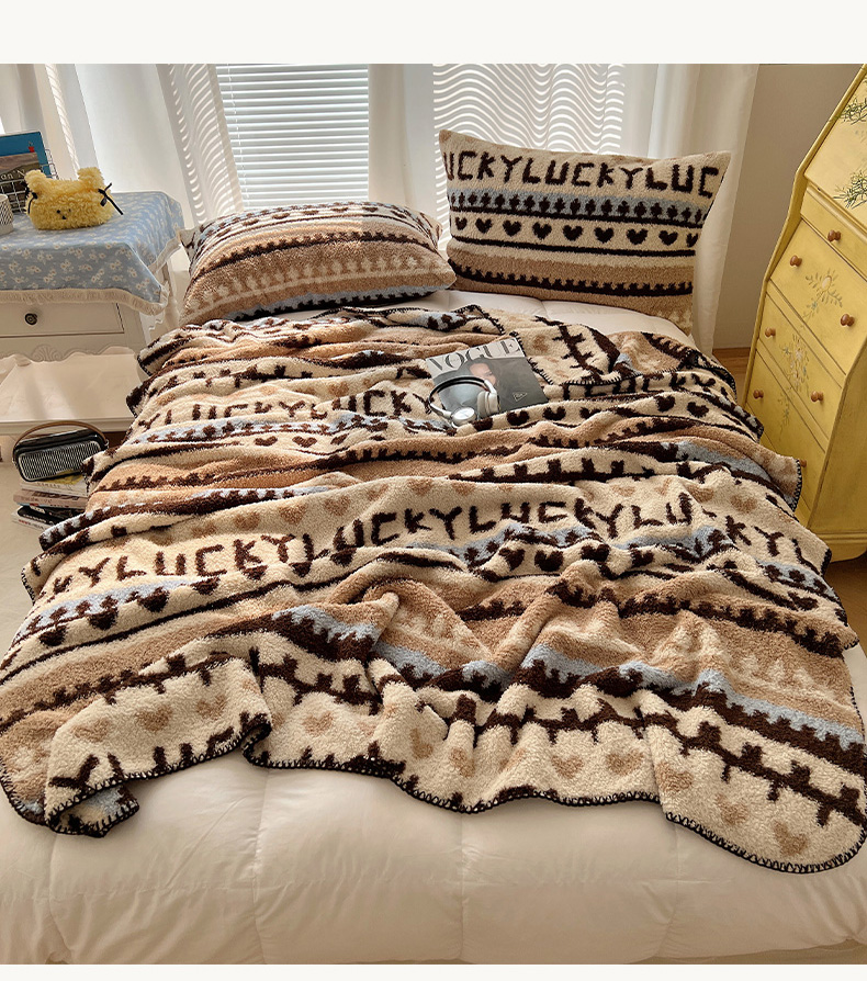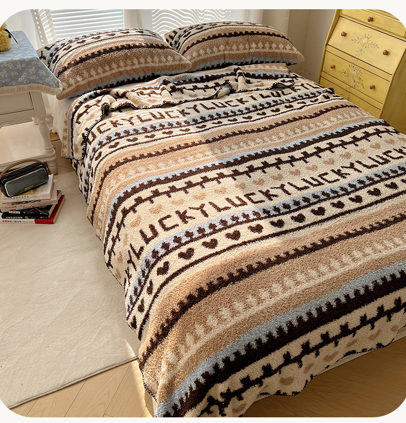 商品名称:舒隅家纺 A类高级感半边绒三角针毛毯毯子 费尔岛-咖