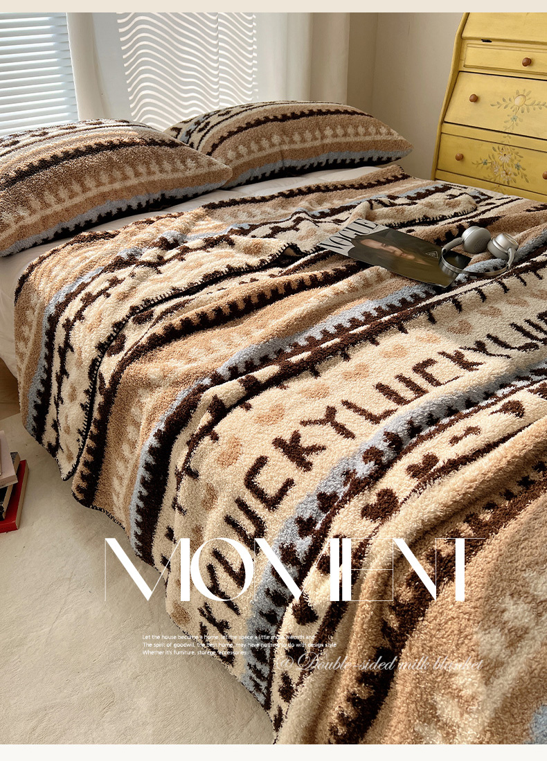舒隅家纺 A类高级感半边绒三角针毛毯毯子 费尔岛-咖