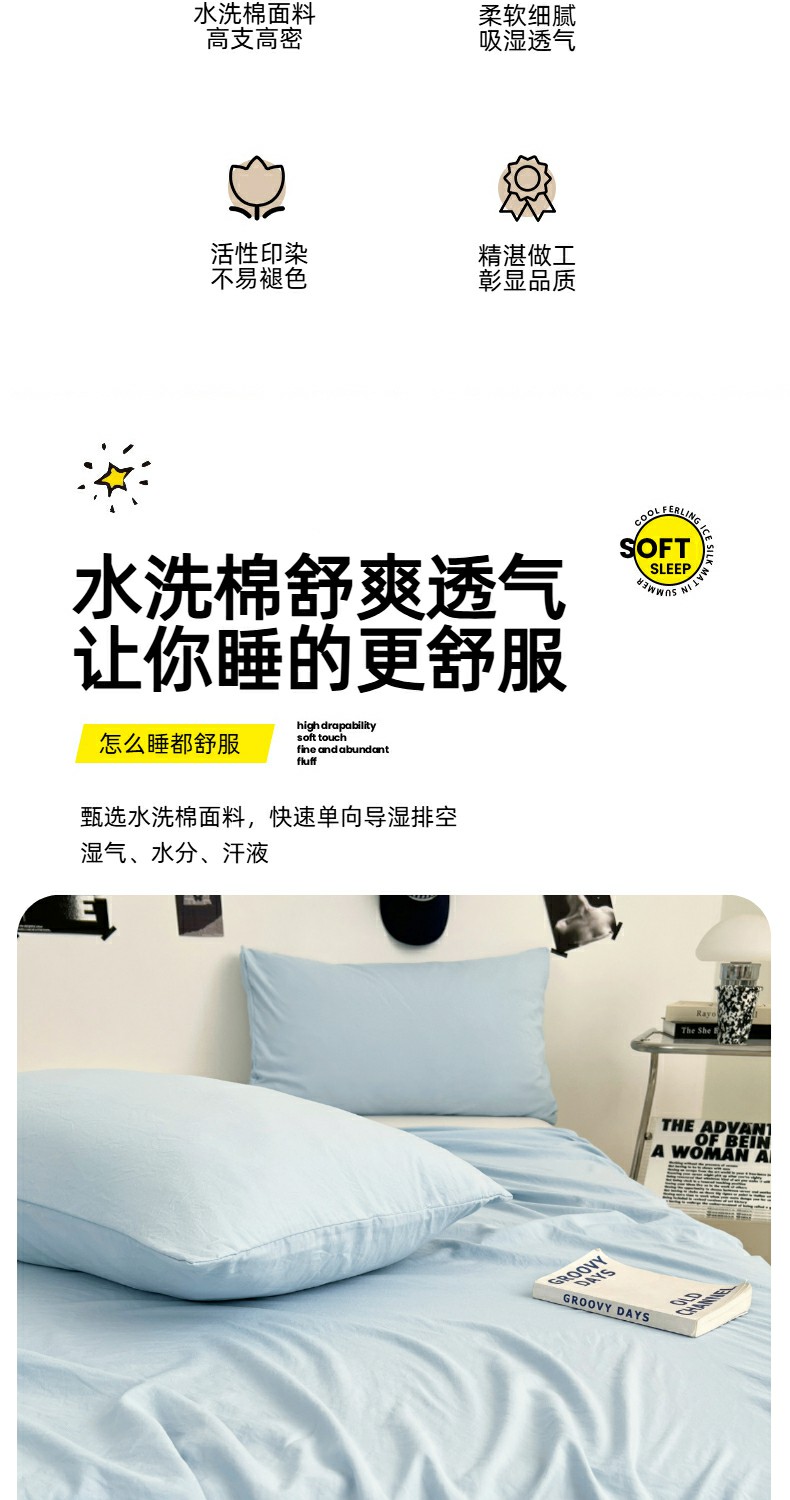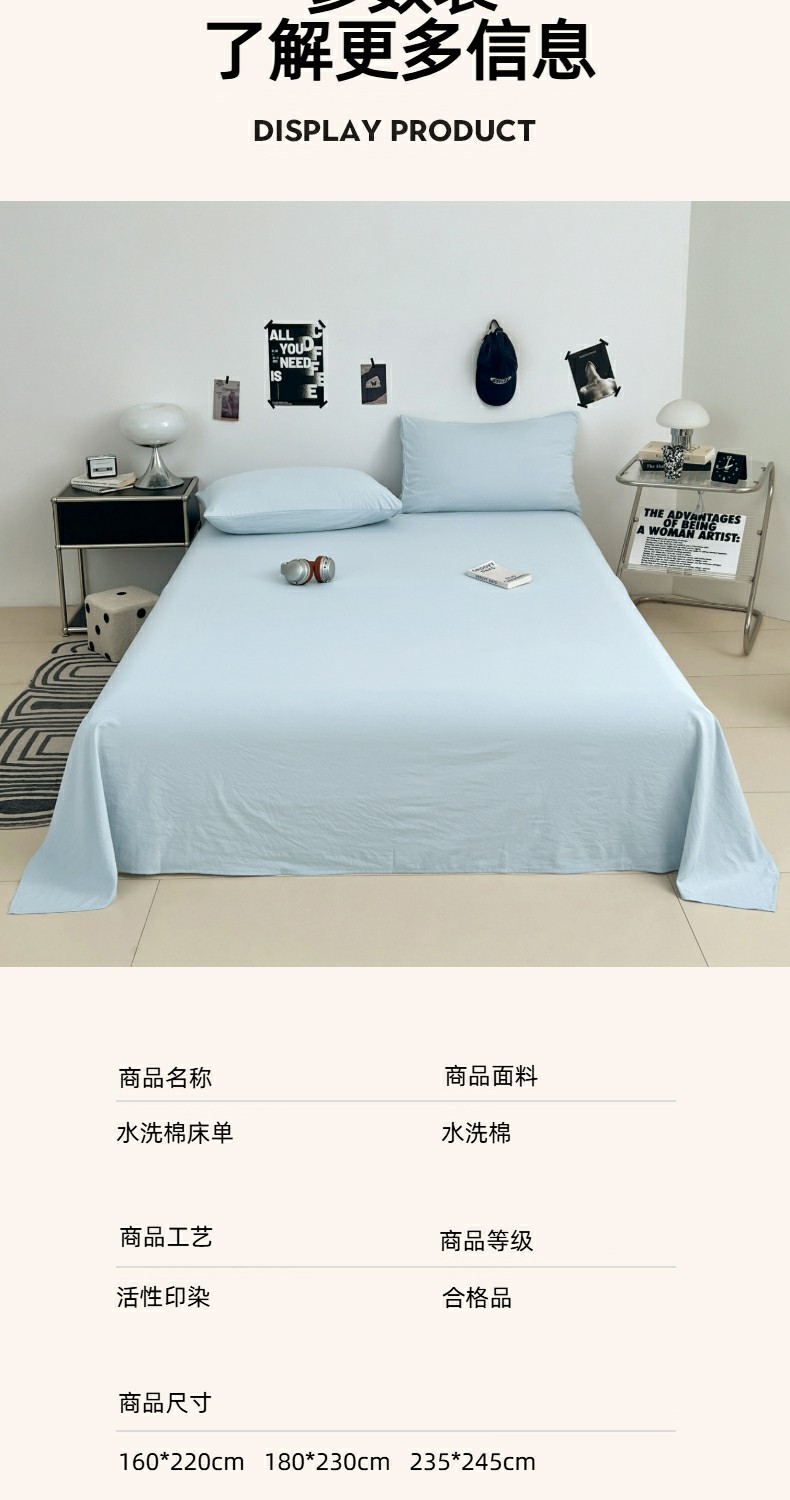 优佳优品 2025新款亲肤水洗棉纯色单品床单 冰岛蓝