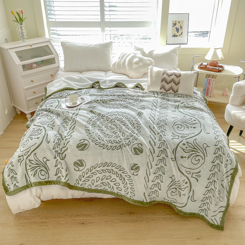 总来菲毛毯 2025新款背印剪花牛奶绒毛毯加厚双层毯子不掉毛高端毯子,粉兔兔,狗兔熊,灰公式,灰蓝公式,灰蓝熊,咖啡熊,绿恐龙,千鸟格,波纹,灰山陵,菱形格,图腾花,鱼鳞纹,云朵,紫格子