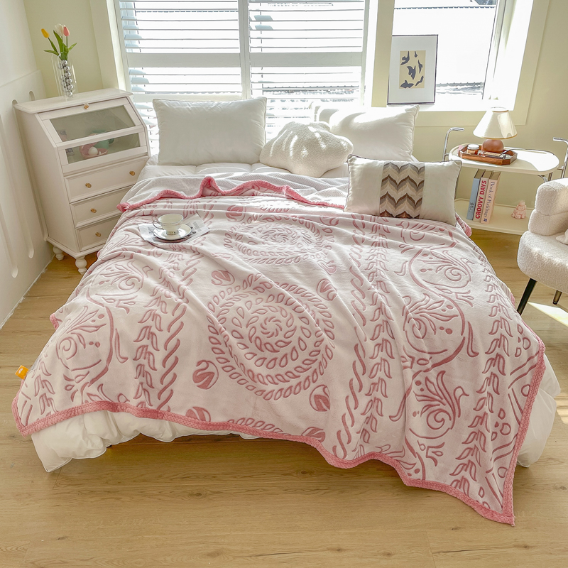 总来菲毛毯 2025新款阳离子剪花复合毛毯高端加厚双层毯子不掉毛高端毯,咖啡,灰色,灰蓝,粉色,草绿,黑色