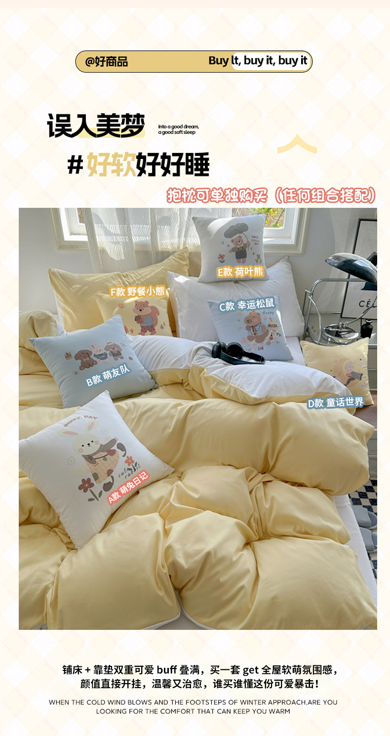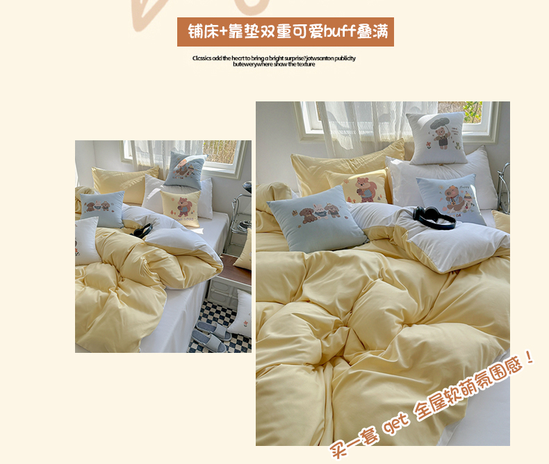 商品名称:(总)2025新款纯色双拼水洗棉四件套搭配抱枕组合ins日系简约软糯纯色床单被套抱枕床上用品