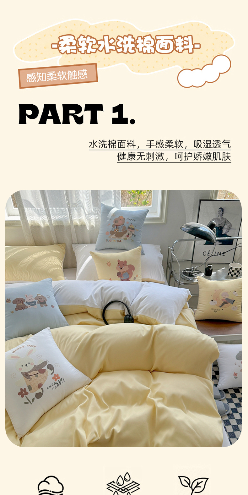 2024新款学生季卡通水洗棉四件套夏天宿舍学生三件套,早安兔,熊猫派对,字母小熊,m乐园,爱心草莓兔,遨游兔,草莓格格,草莓甜心,花园萌兔,可爱小熊,萌宠世界,牛油熊果果,青春印记,森林伙伴,盛夏之约,象模像样鸭,快乐小恐龙,英伦熊