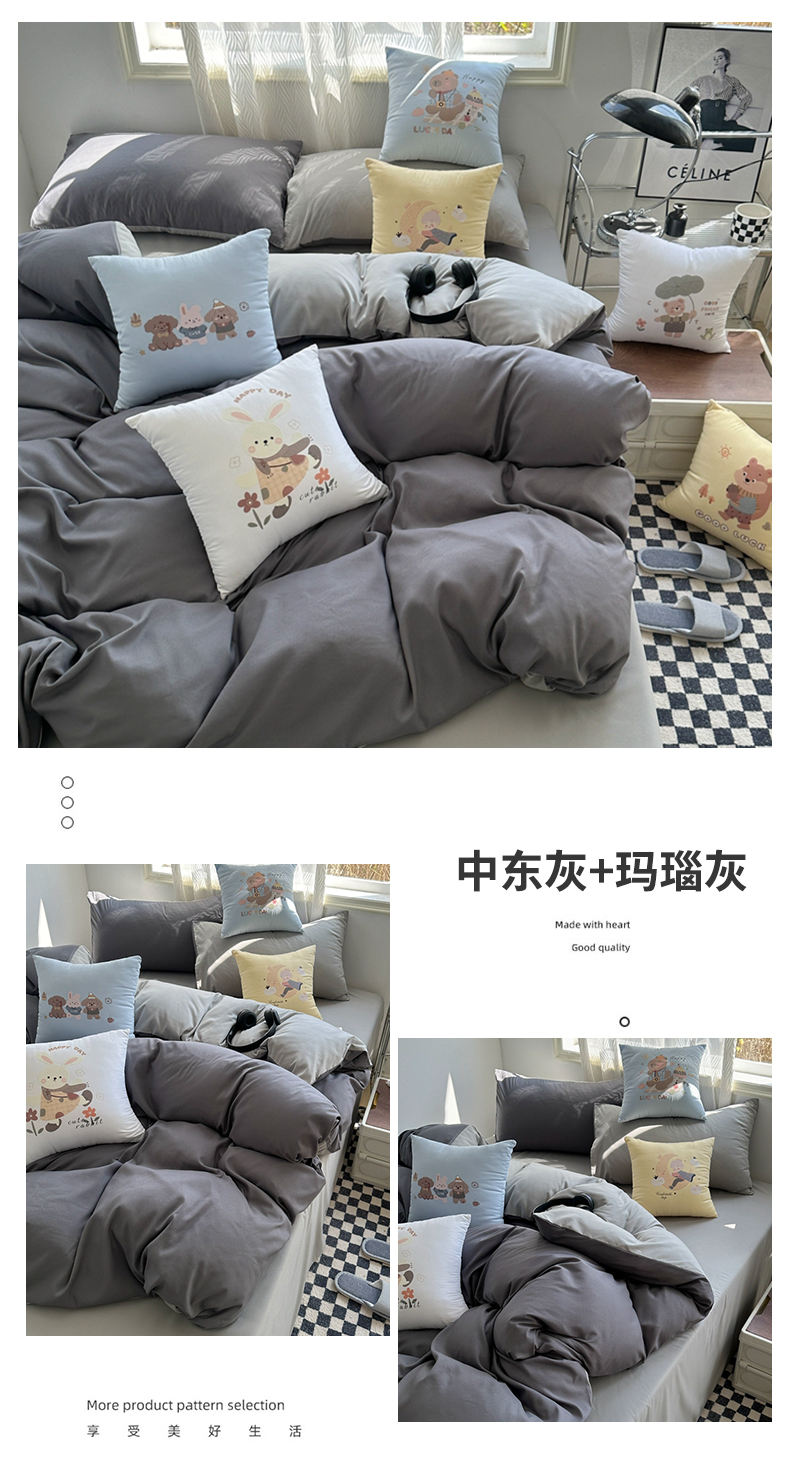 (总)2025新款纯色双拼水洗棉四件套搭配抱枕组合ins日系简约软糯纯色床单被套抱枕床上用品