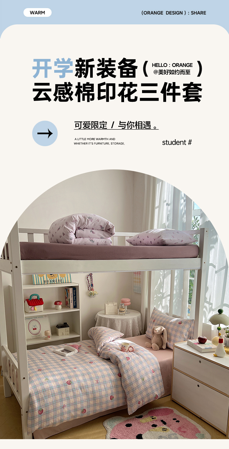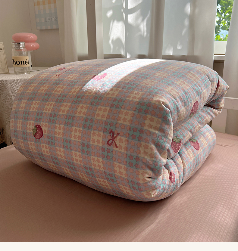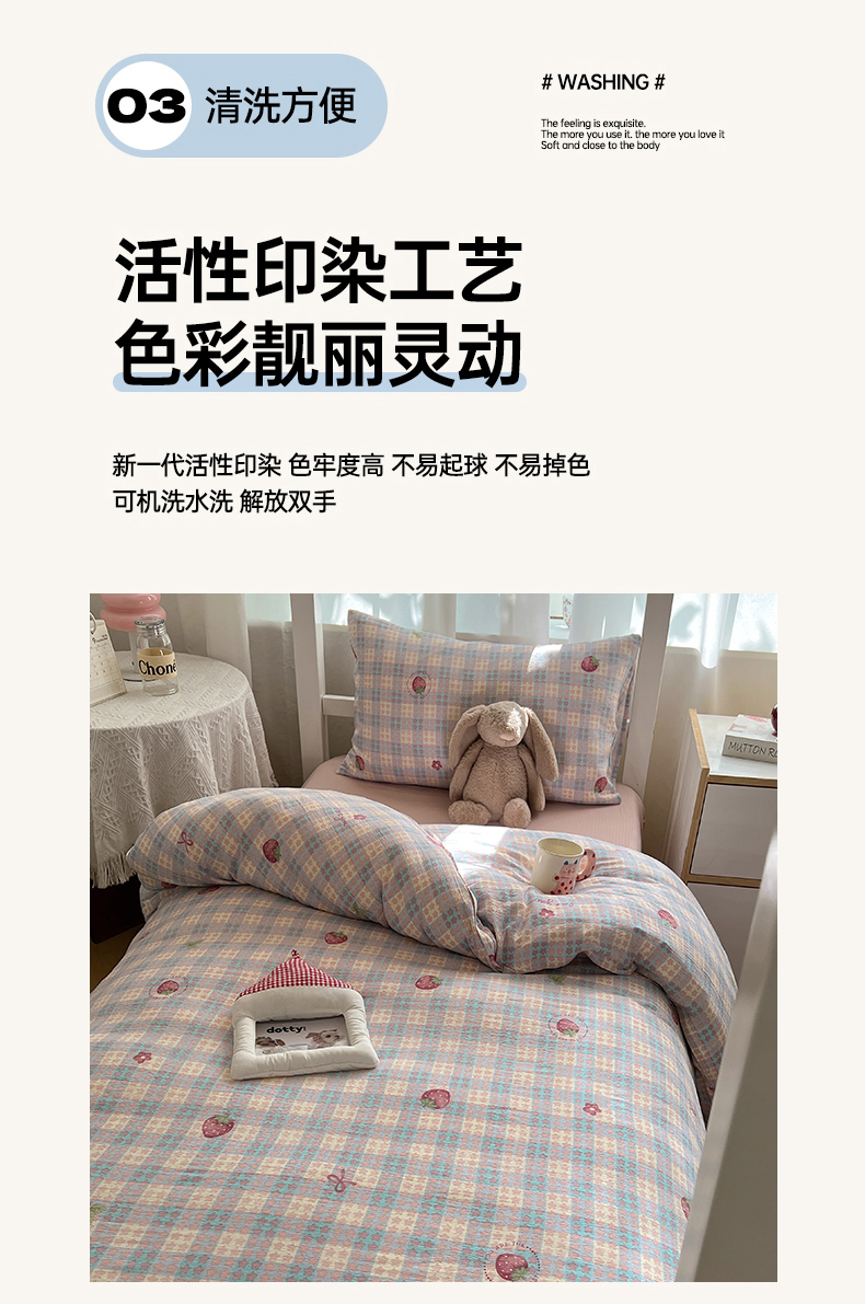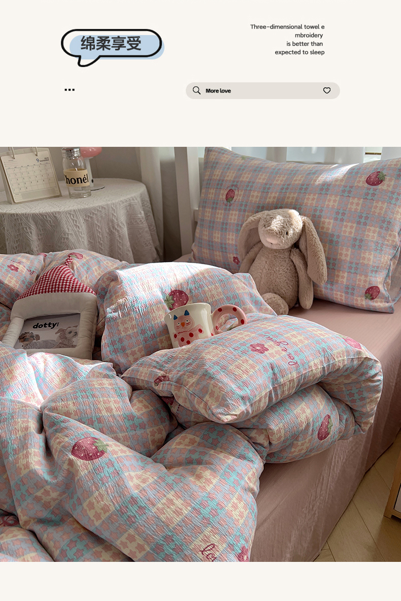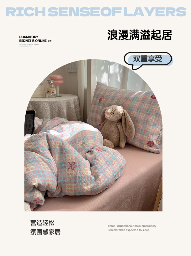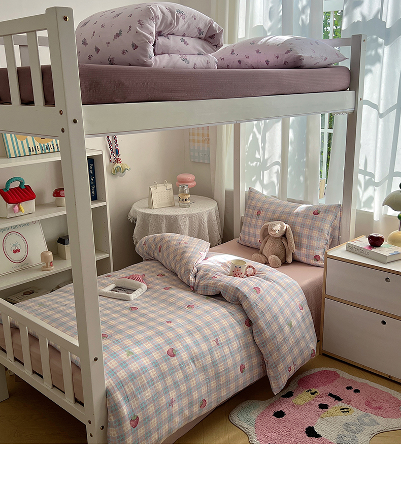 当前位置: 91家纺网 > 商品网购 > 床品套件 > 四件套 > 双层纱四件套 > 韩巢家纺 2025新款双层纱学生季床铺单件被套宿舍寝室上下铺三件套 有草莓的地方