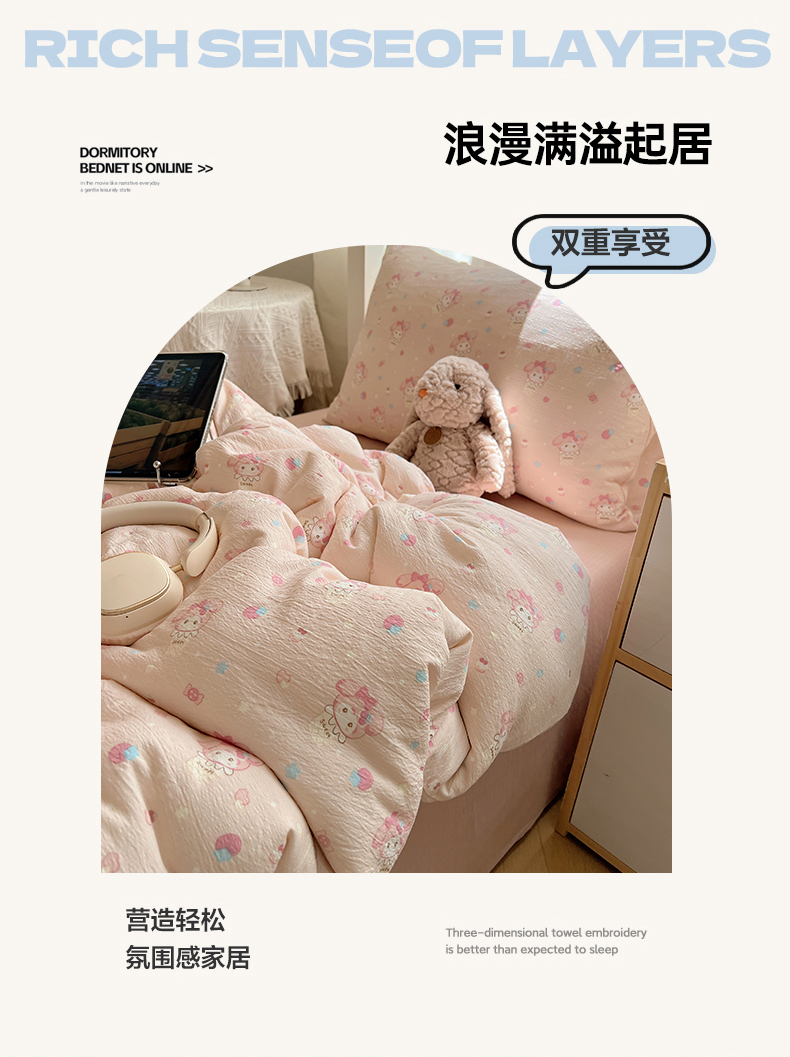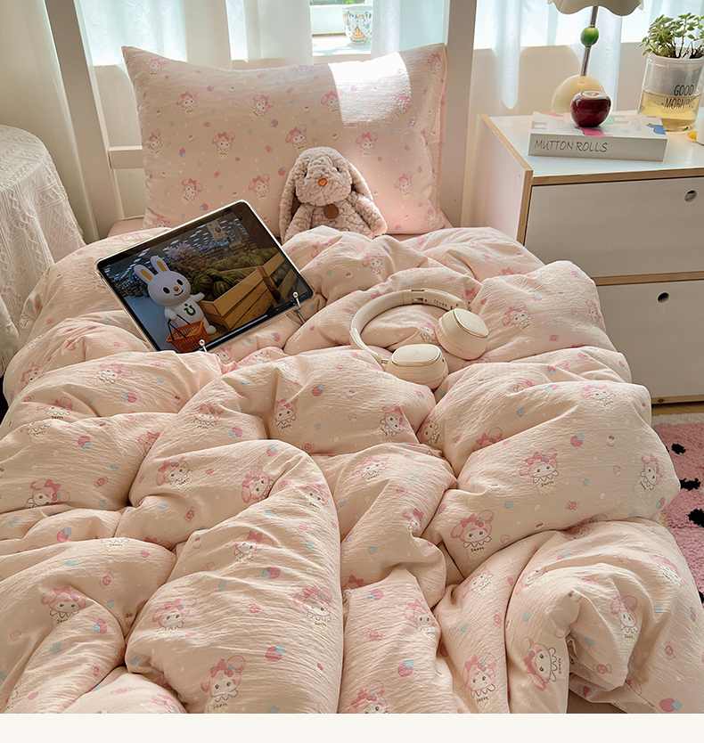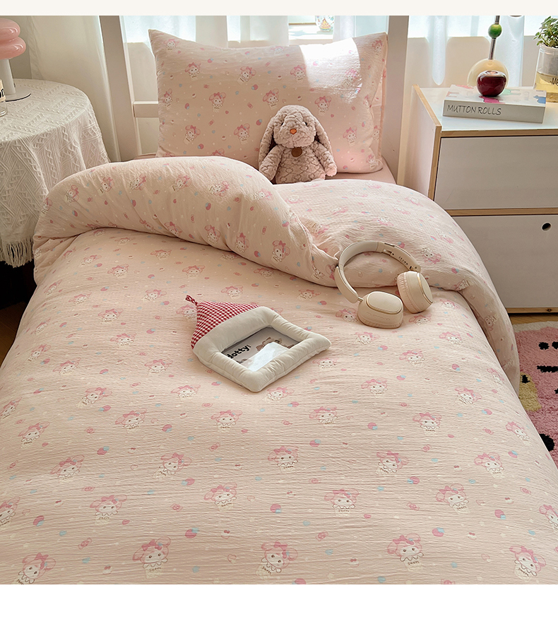 当前位置: 91家纺网 > 商品网购 > 床品套件 > 四件套 > 双层纱四件套 > 韩巢家纺 2025新款双层纱学生季床铺单件被套宿舍寝室上下铺三件套 小美冰激凌