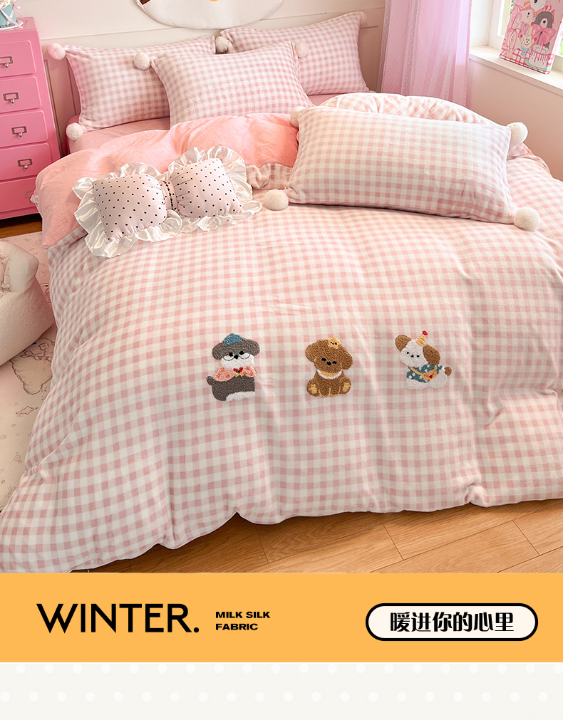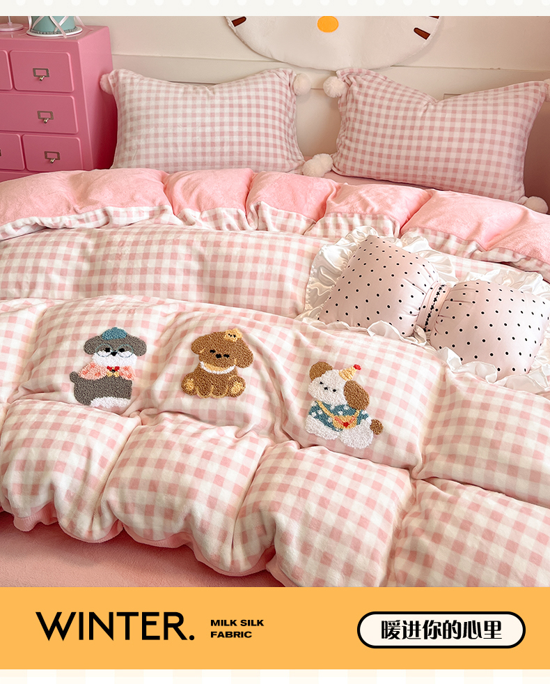 当前位置: 91家纺网 > 商品网购 > 床品套件 > 四件套 > 牛奶绒四件套 > 川悦生活 2025新款绣花牛奶绒毛巾绣四件套-大床 幸福小奶狗