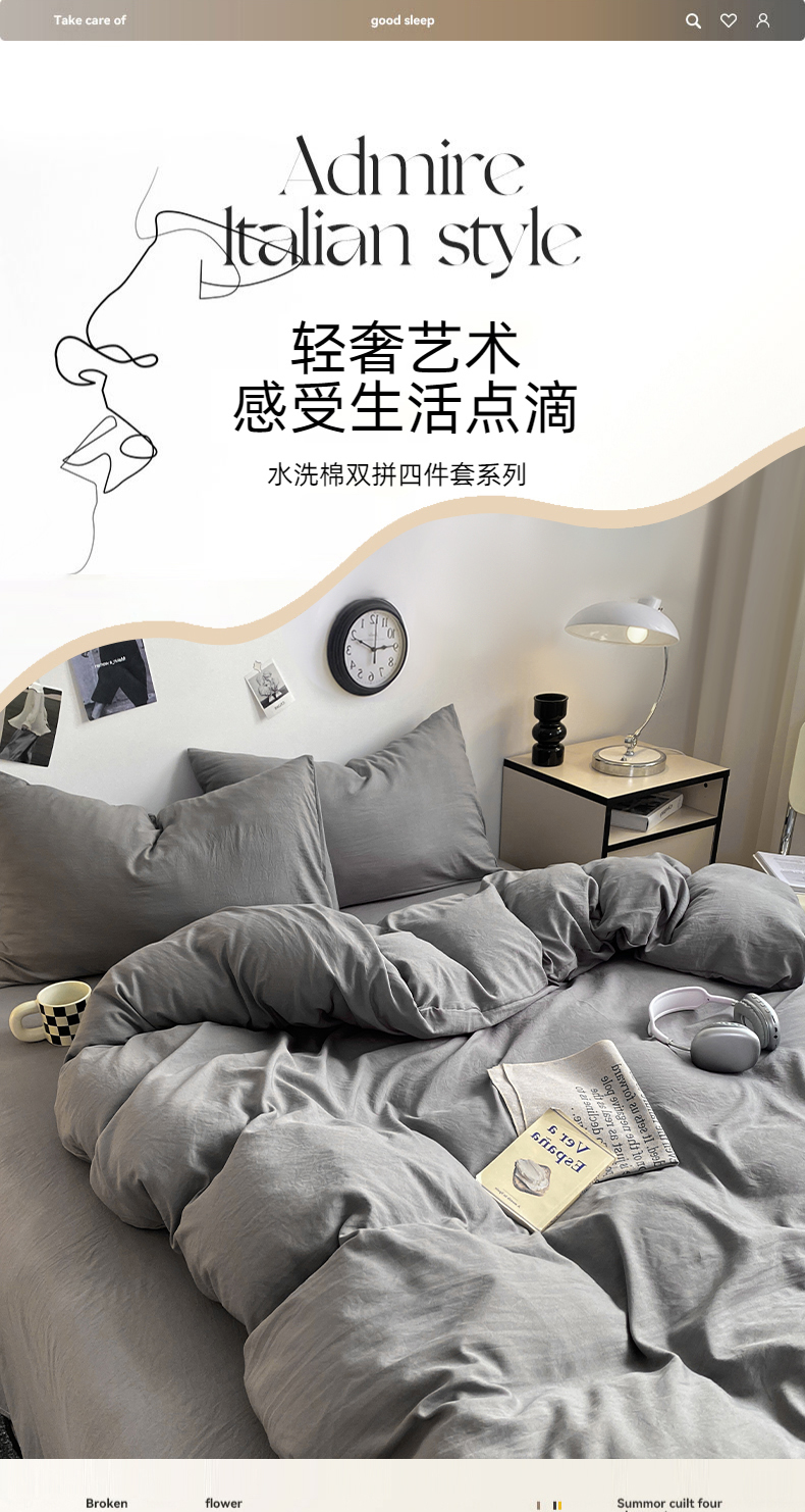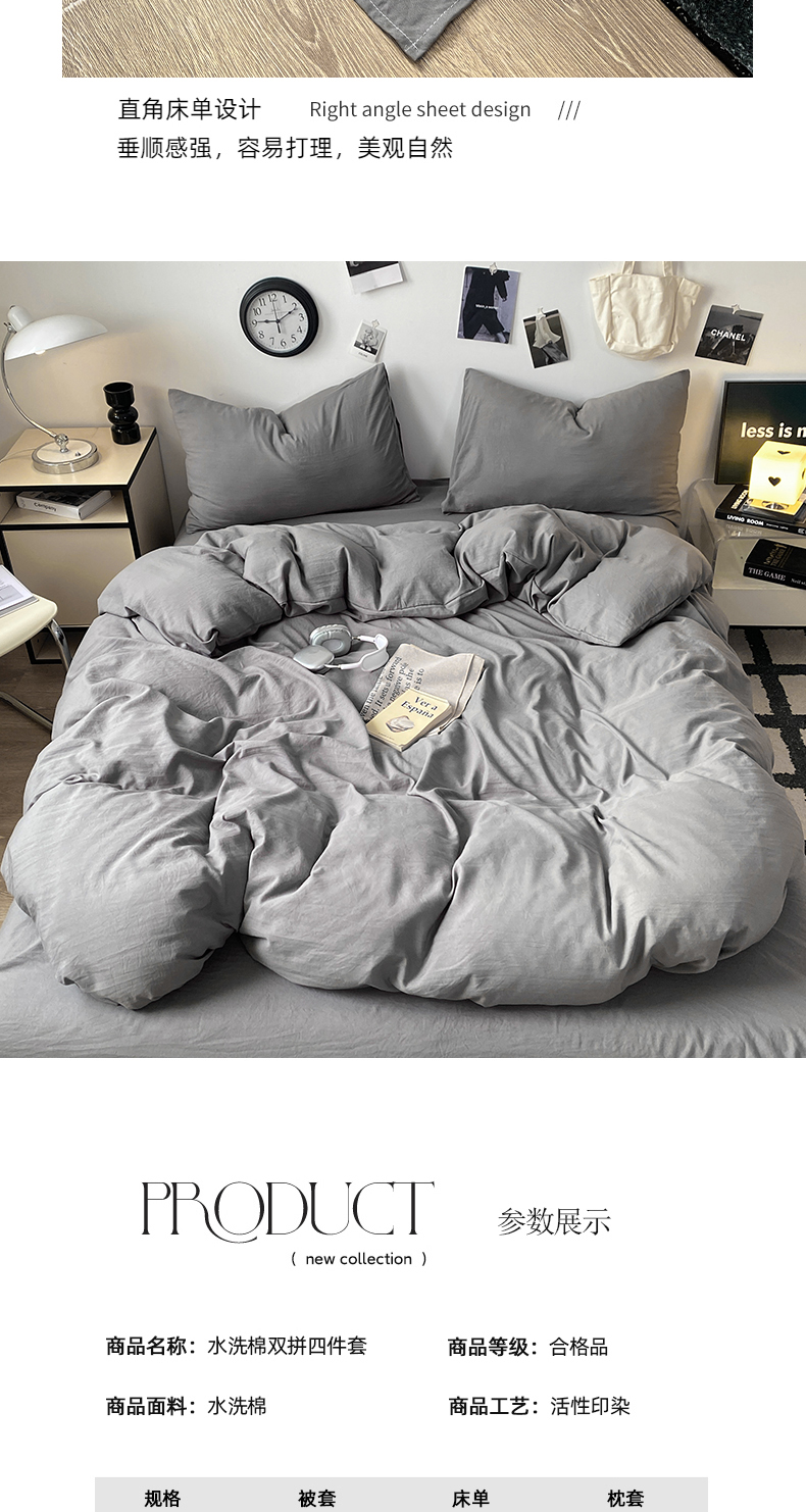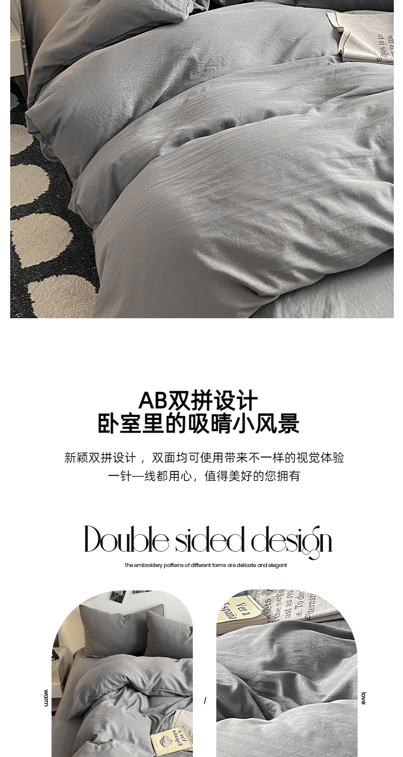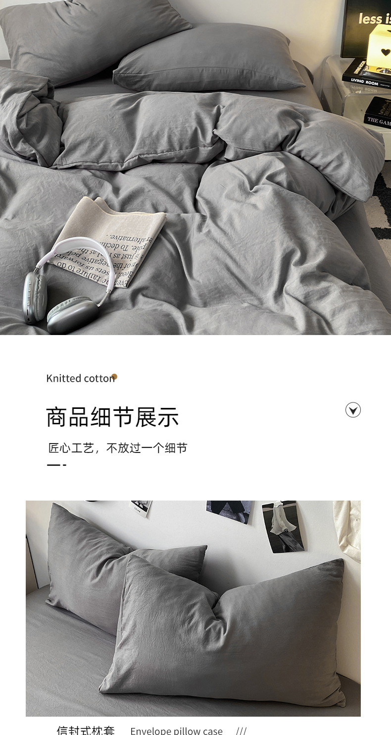 当前位置: 91家纺网 > 商品网购 > 床品套件 > 四件套 > 水洗棉四件套 > 夜笙家纺 2025新款水洗棉纯色双拼四件套 双拼-中灰山灰