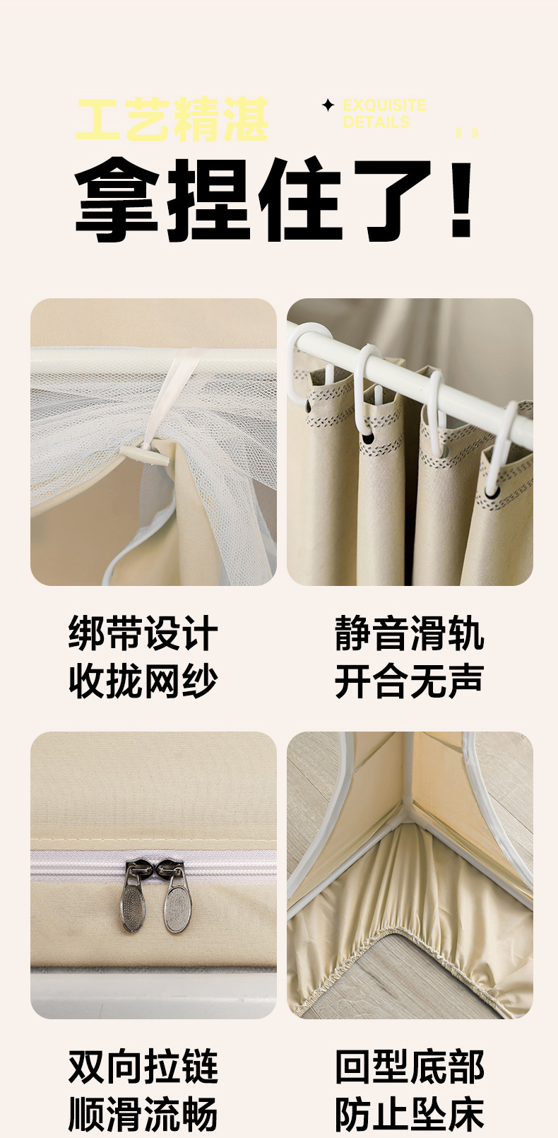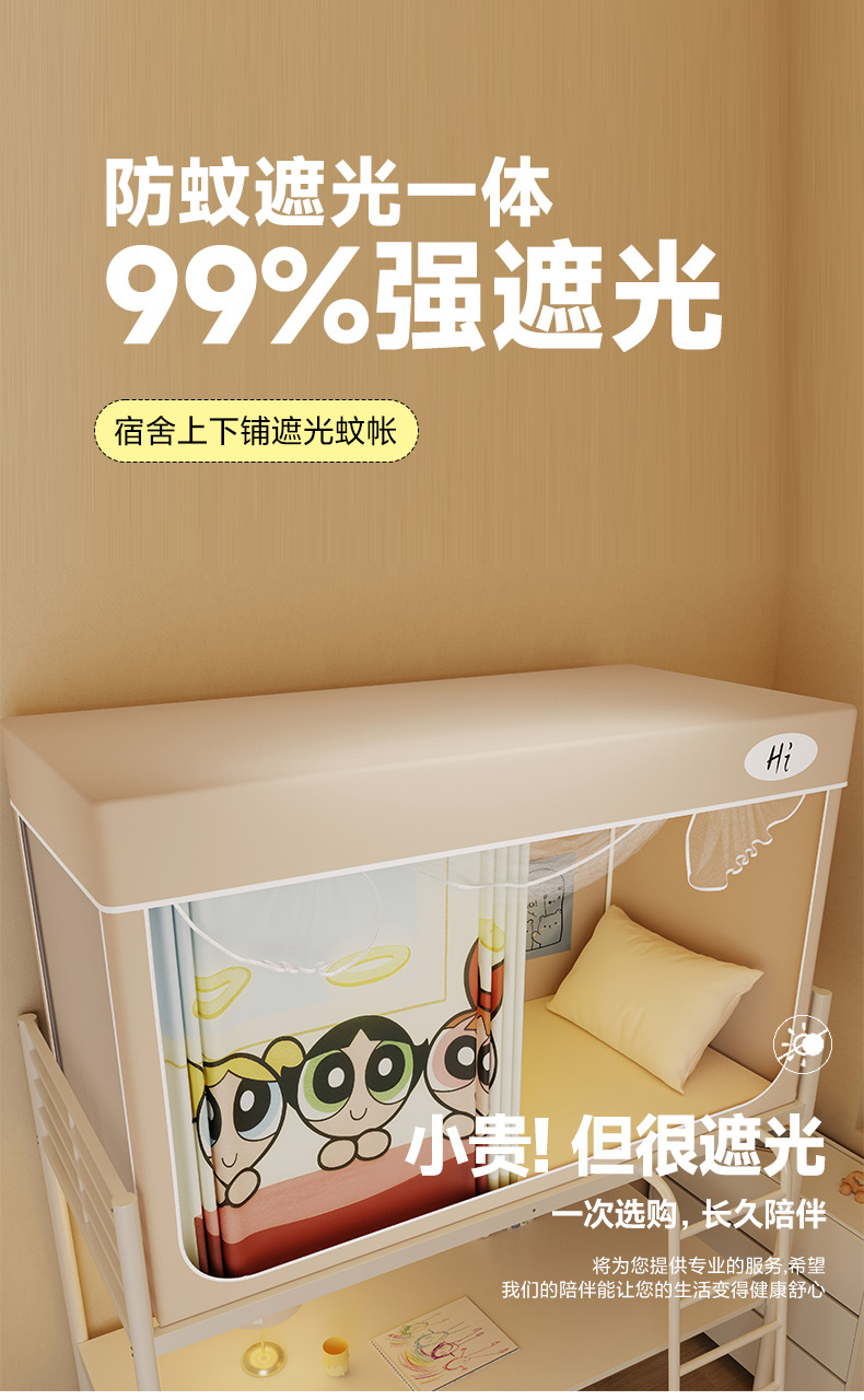当前位置: 91家纺网 > 商品网购 > 床上用品 > 蚊帐 > 学生蚊帐 > 安金蚊帐2025新款防蚊遮光一体99%强遮光学生宿舍上下铺遮光学生蚊帐-卡其系列 飞飞女孩