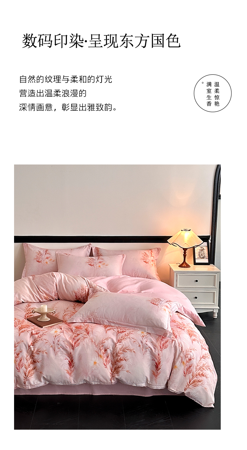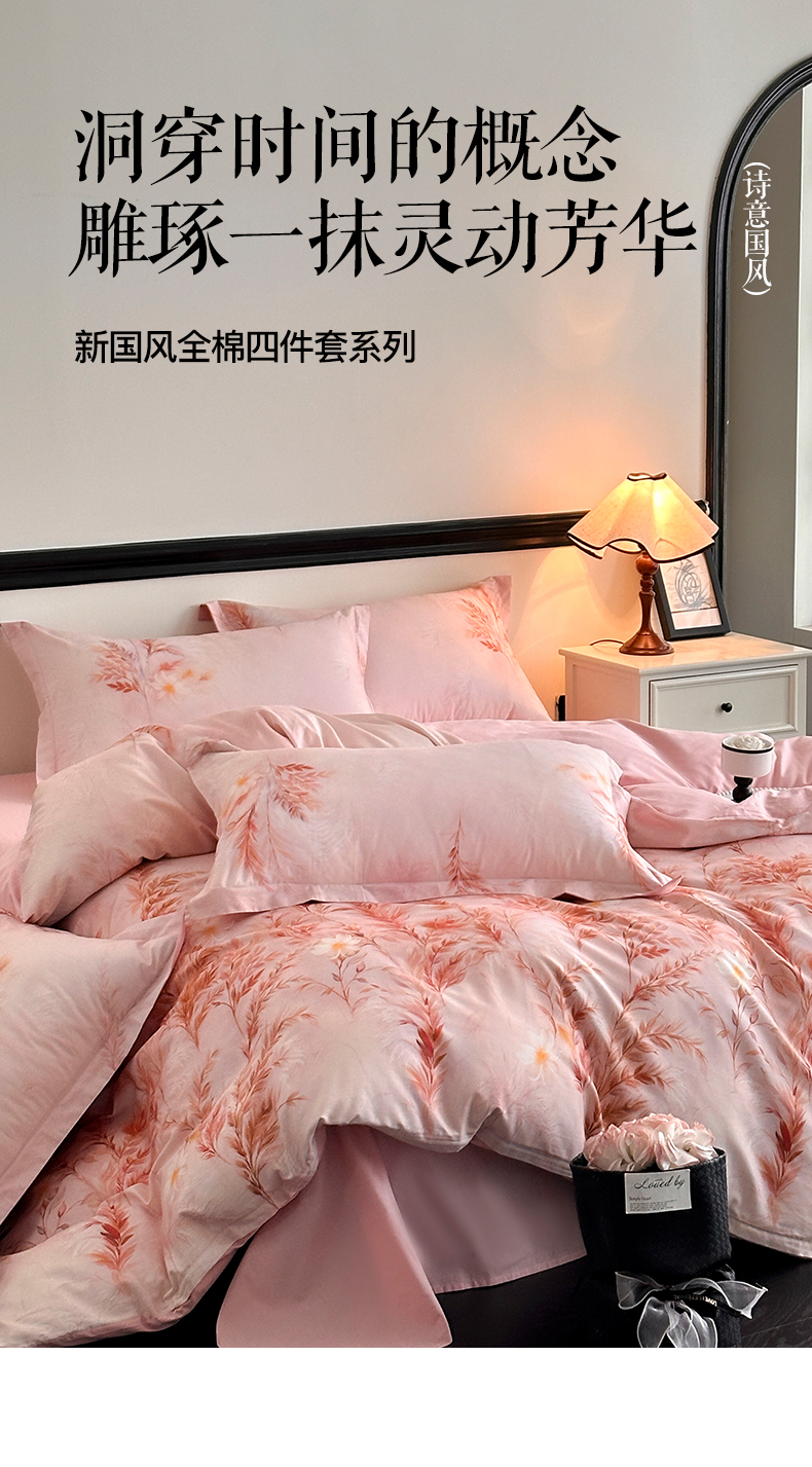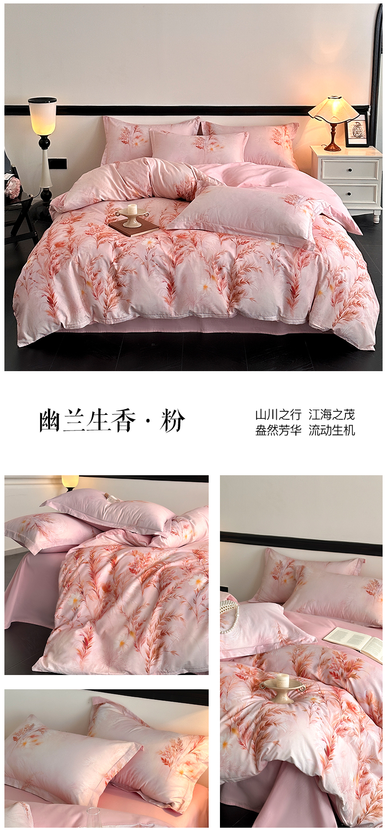 当前位置: 91家纺网 > 商品网购 > 床品套件 > 四件套 > 全棉普通四件套 > 金鑫汇家纺 2025新款13372全棉纯棉高端数码印花四件套 幽兰生香-粉