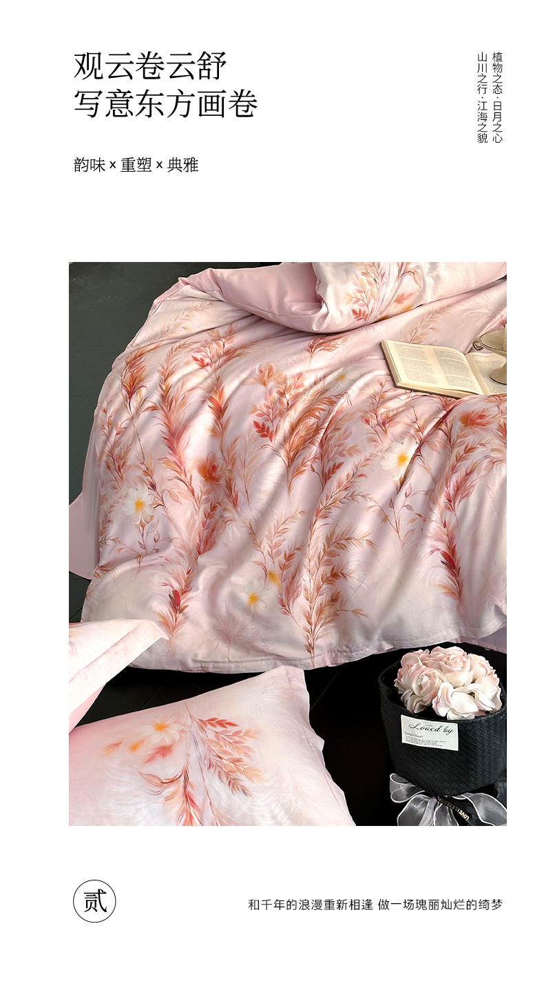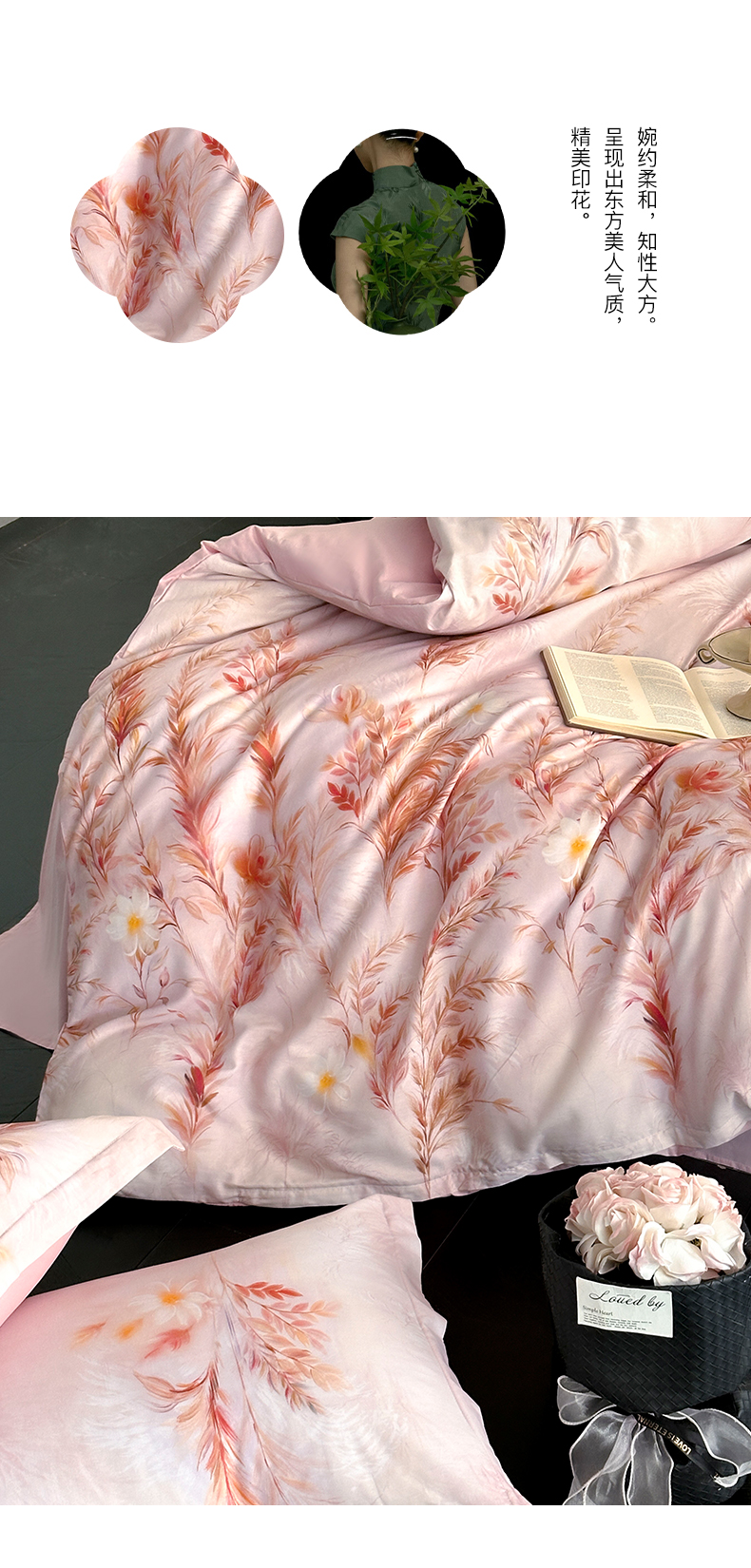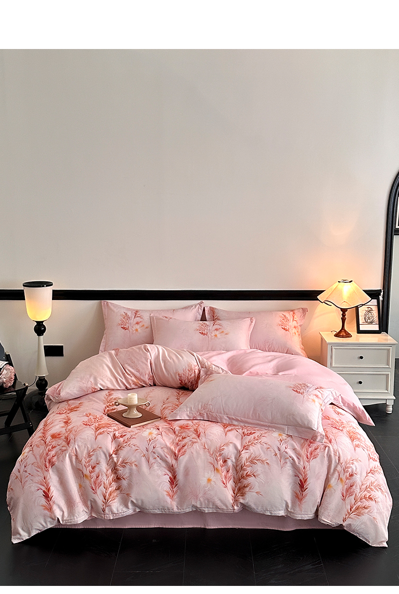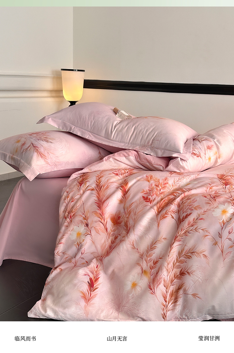当前位置: 91家纺网 > 商品网购 > 床品套件 > 四件套 > 全棉普通四件套 > 金鑫汇家纺 2025新款13372全棉纯棉高端数码印花四件套 幽兰生香-粉