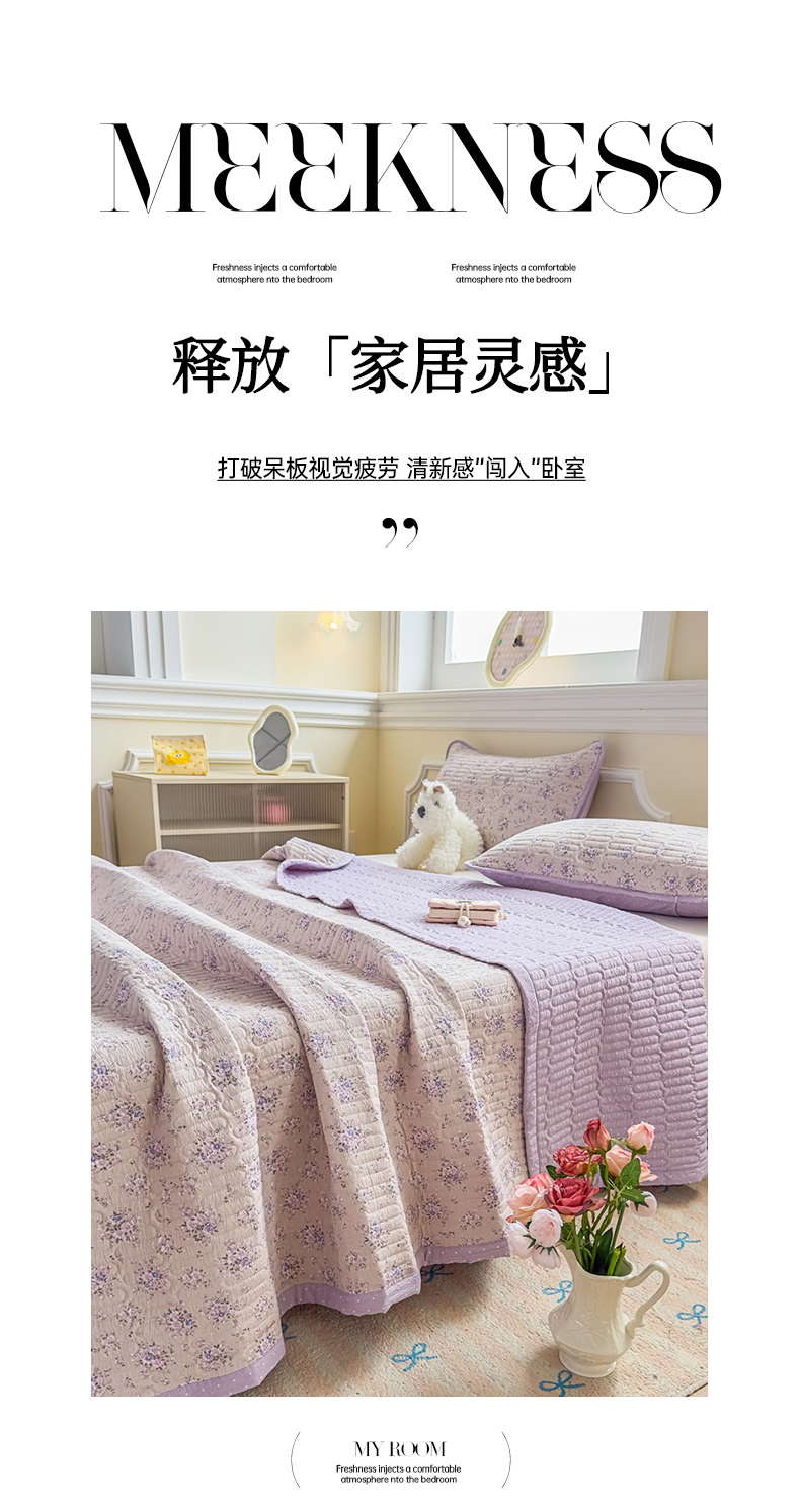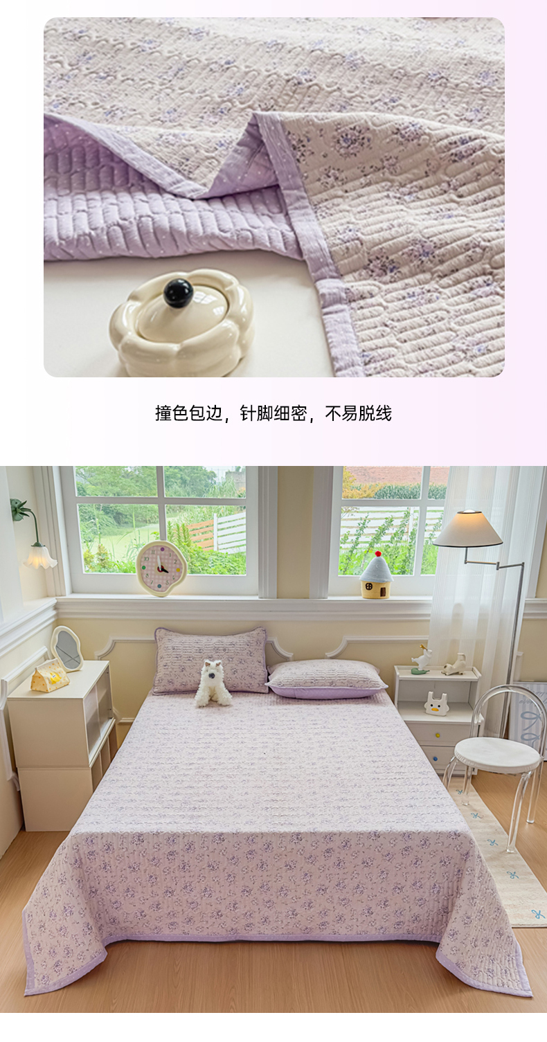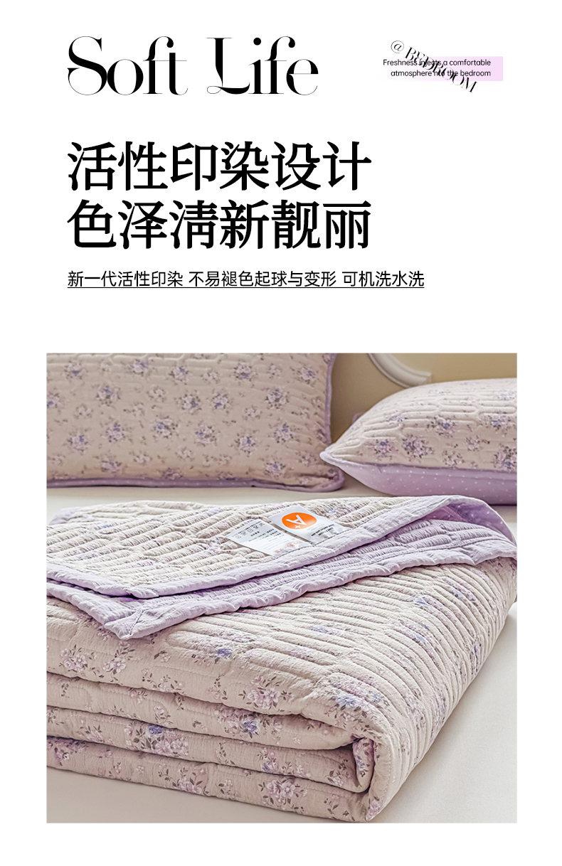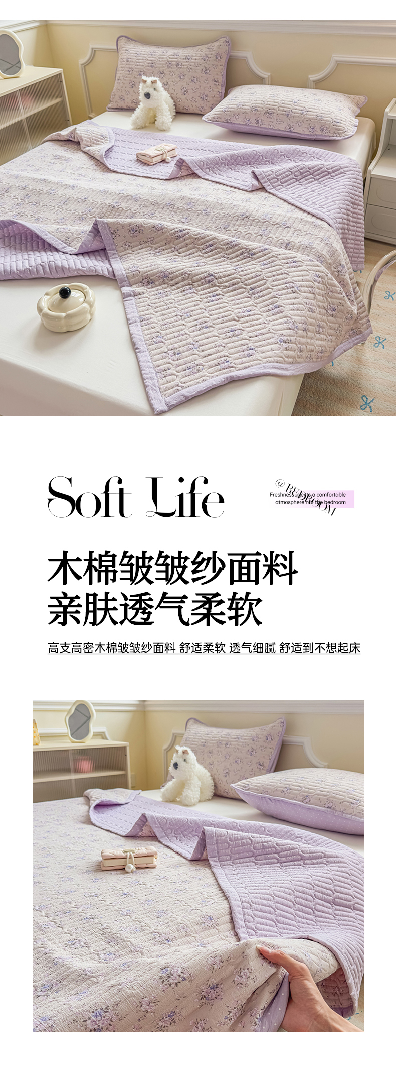 (总)芯元素 2025新款木棉绉绉纱双面可用床盖,紫恋,花季,梦境-灰,梦境-紫,山野栀子,小城故事