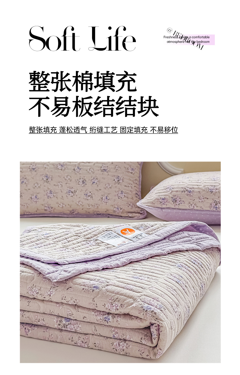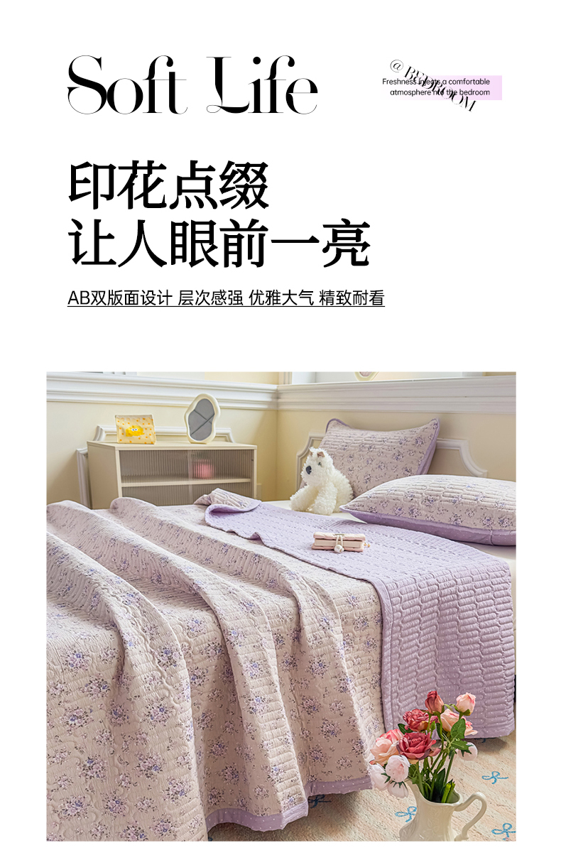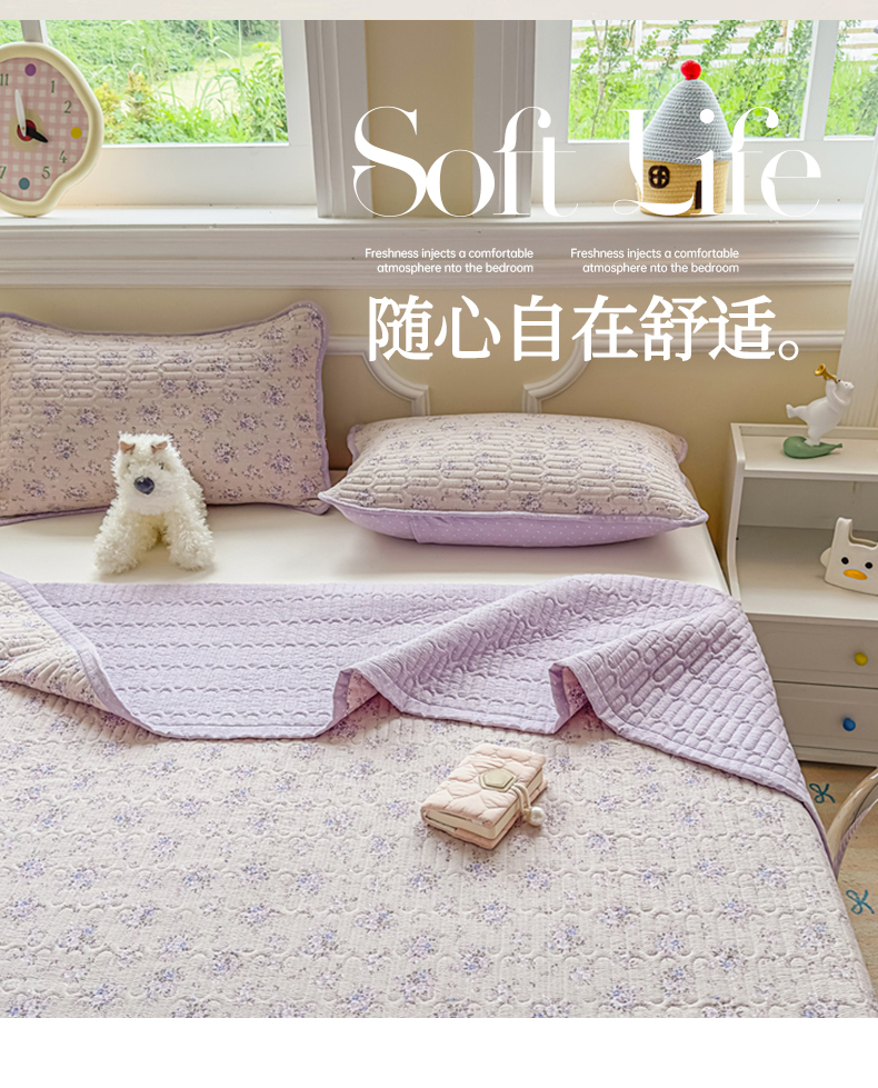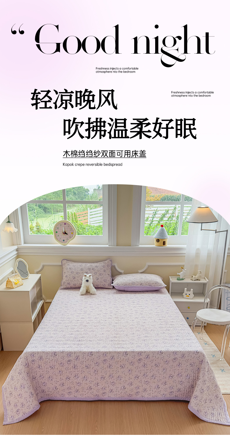 (总)芯元素 2025新款木棉绉绉纱双面可用床盖,紫恋,花季,梦境-灰,梦境-紫,山野栀子,小城故事