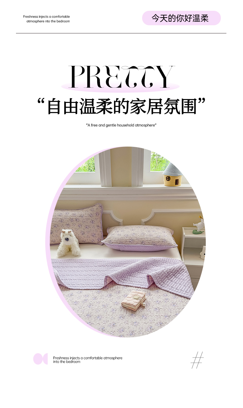 (总)芯元素 2024新款云纱棉床盖三件套,暗香,海盐蓝,花海,瑾年,青草绿,绅士咖,甜心兰,樱花粉