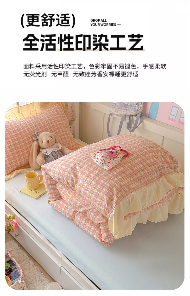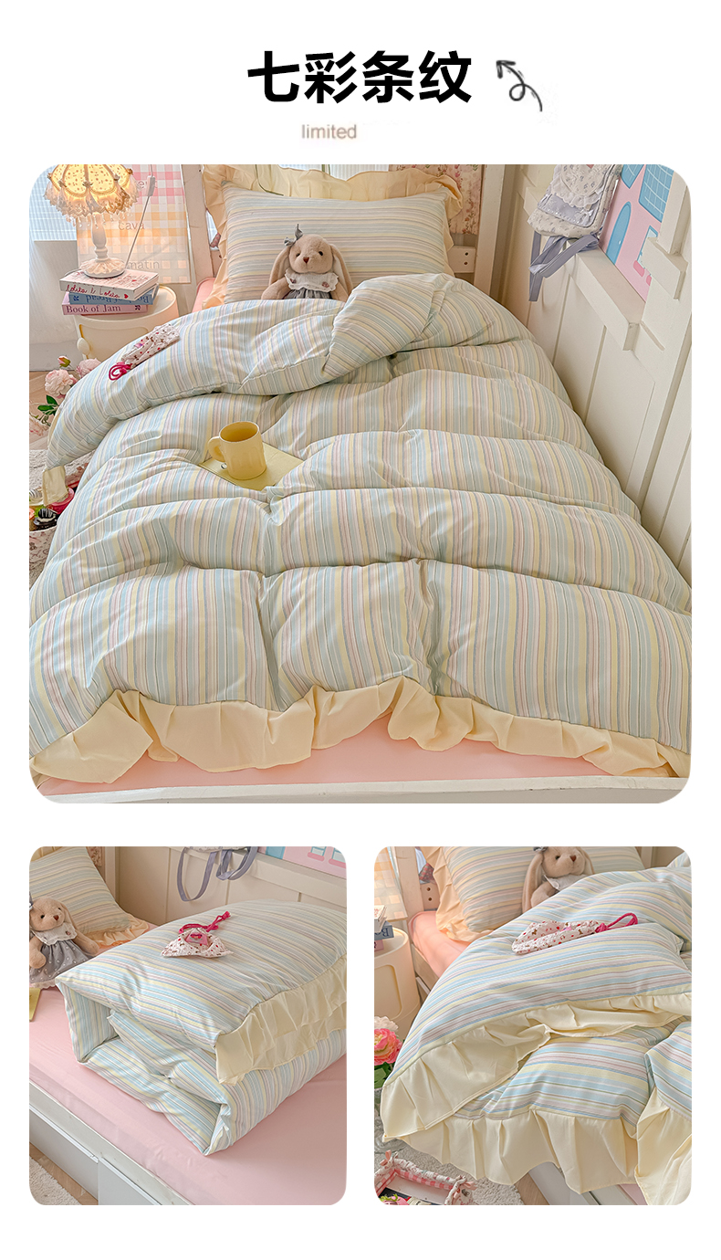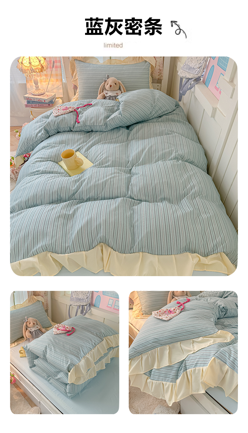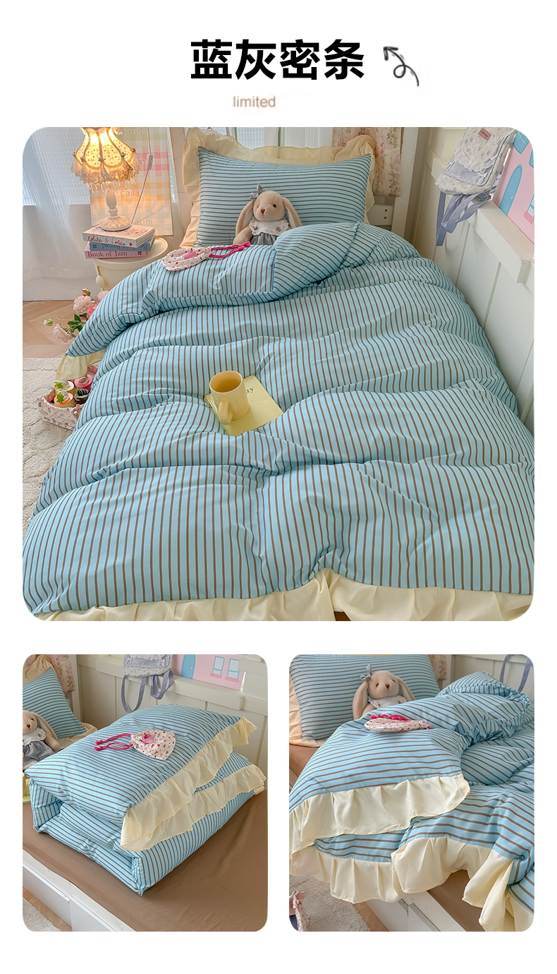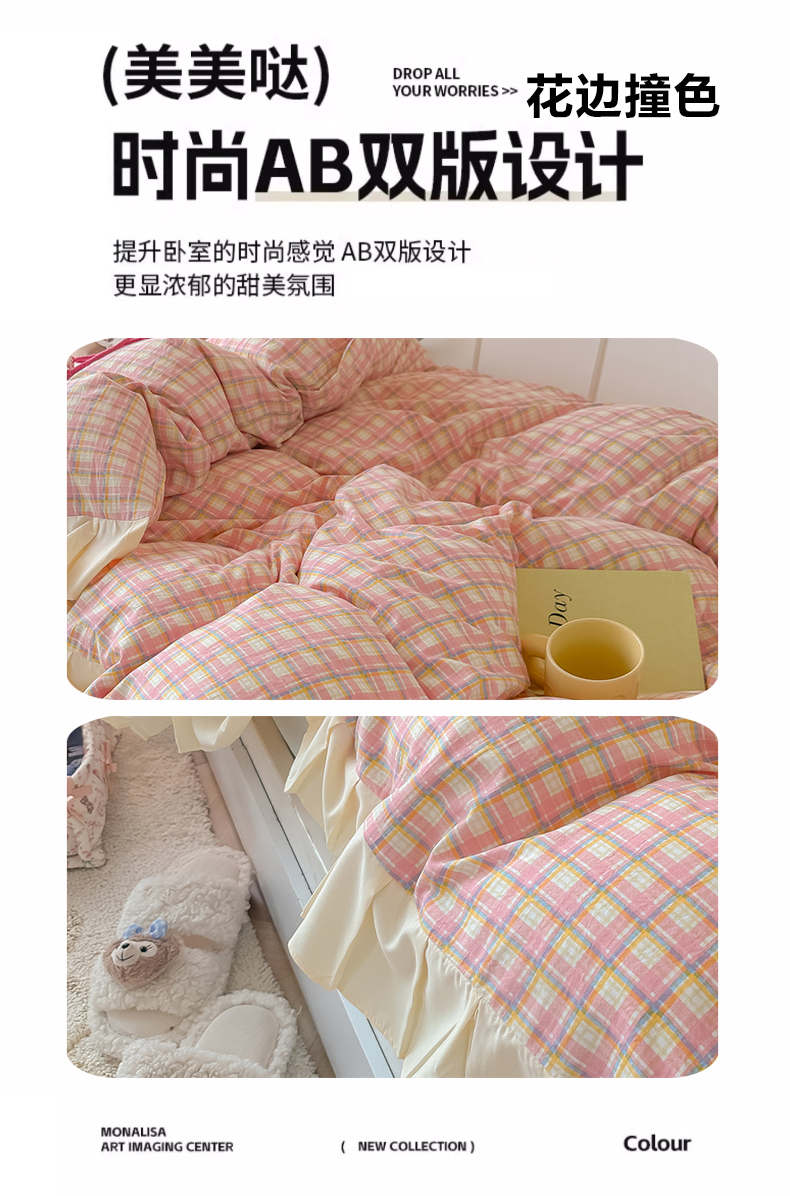 (总)子钦家纺 2023新款开学季四季棉花边三件套四件套安妮,艾绿,宾利蓝,蒂芙尼蓝,焦糖咖,暖桔,秋月黄,绅士灰,炫彩银,阳光紫,樱花粉