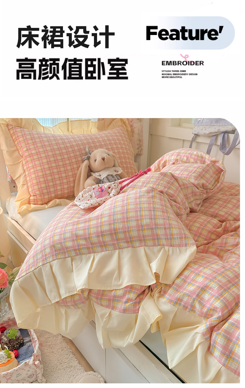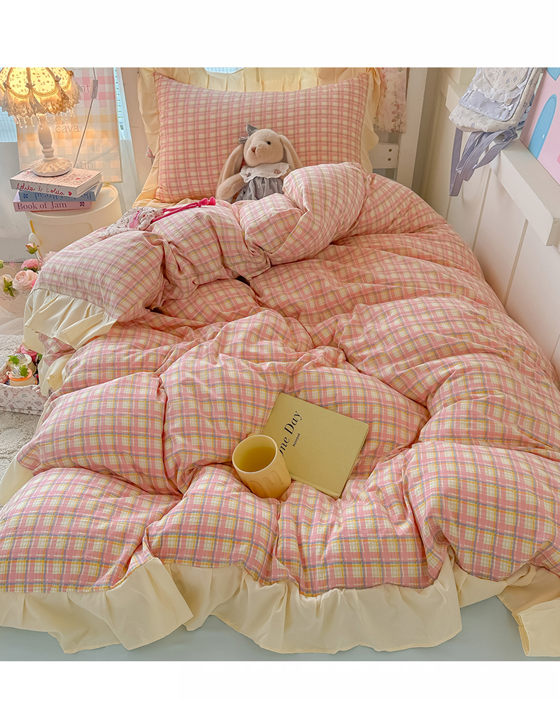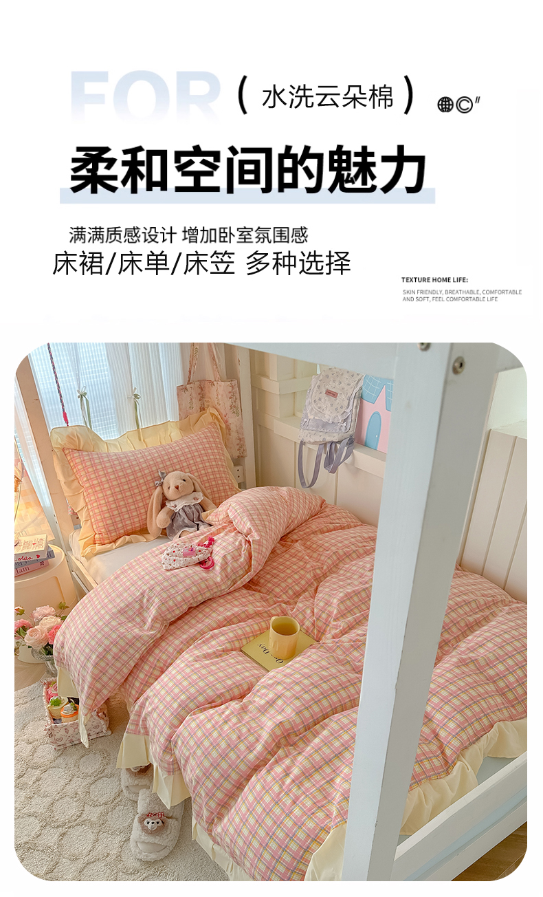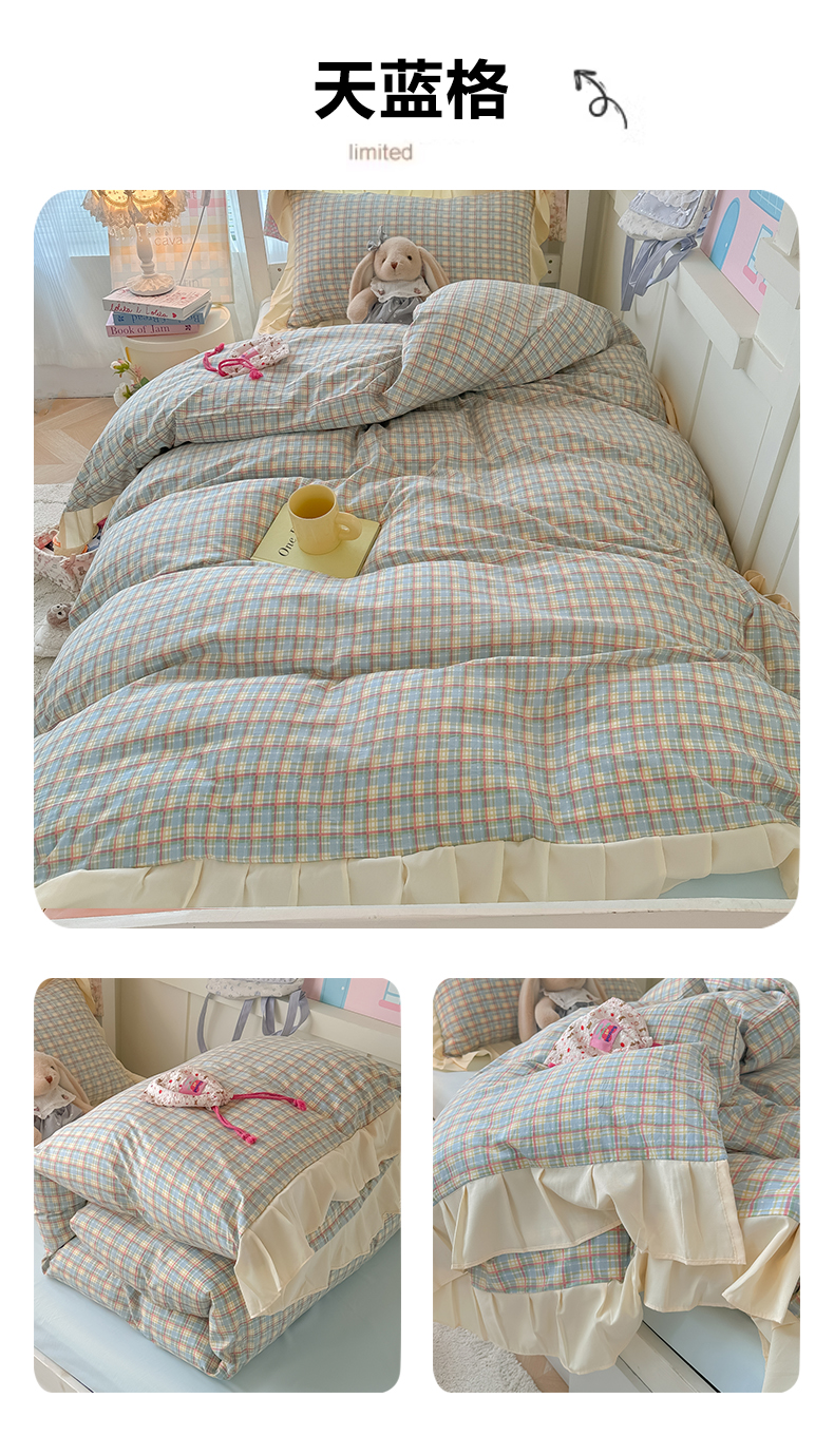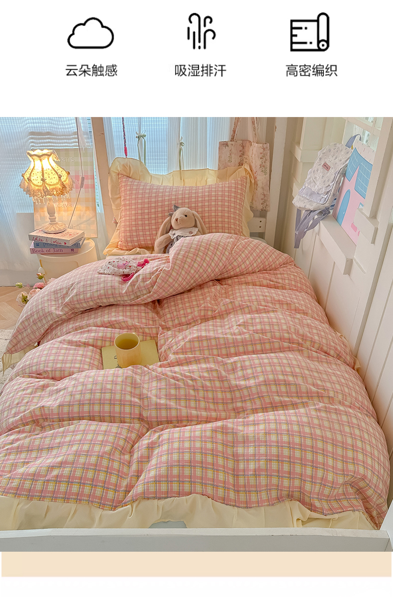 (总)子钦家纺 2025新款云朵棉水洗棉复古风奶油花边四件套学生宿舍开学季-罗密欧