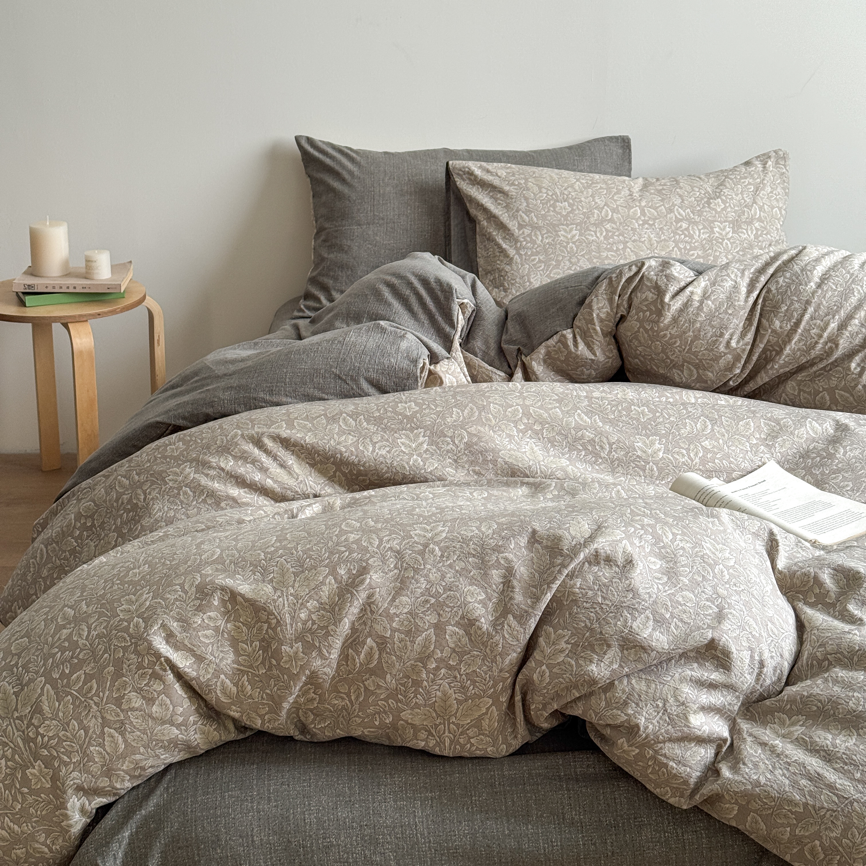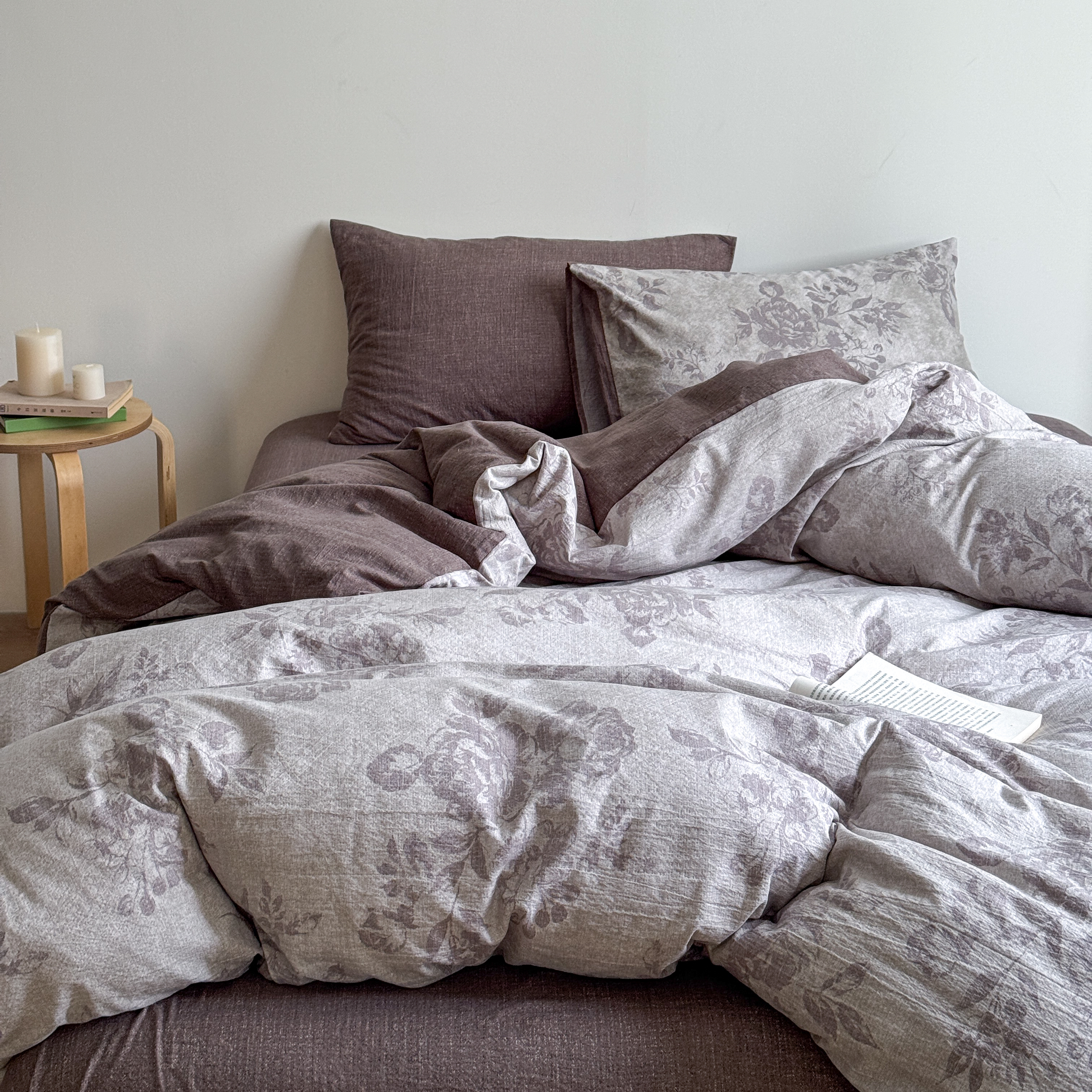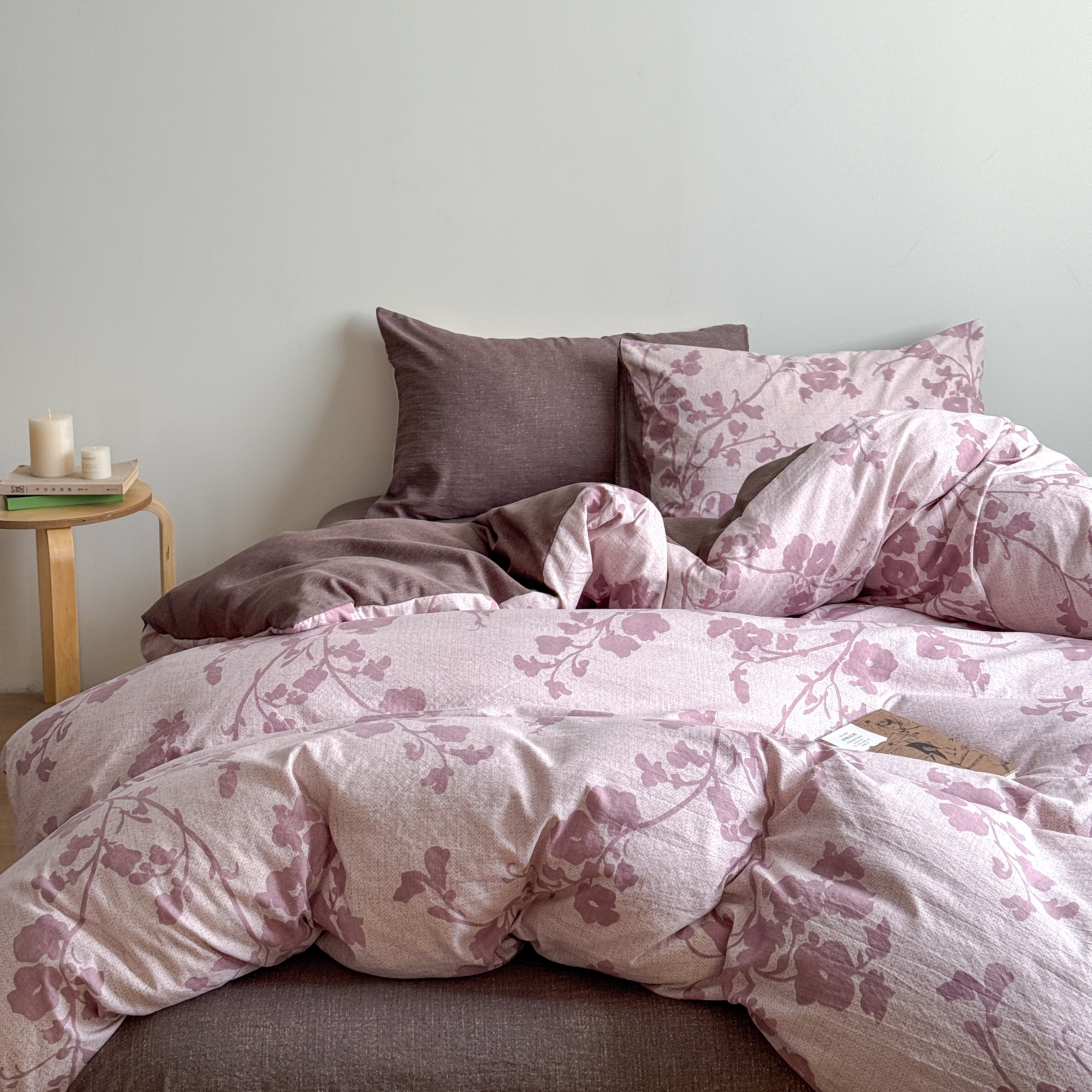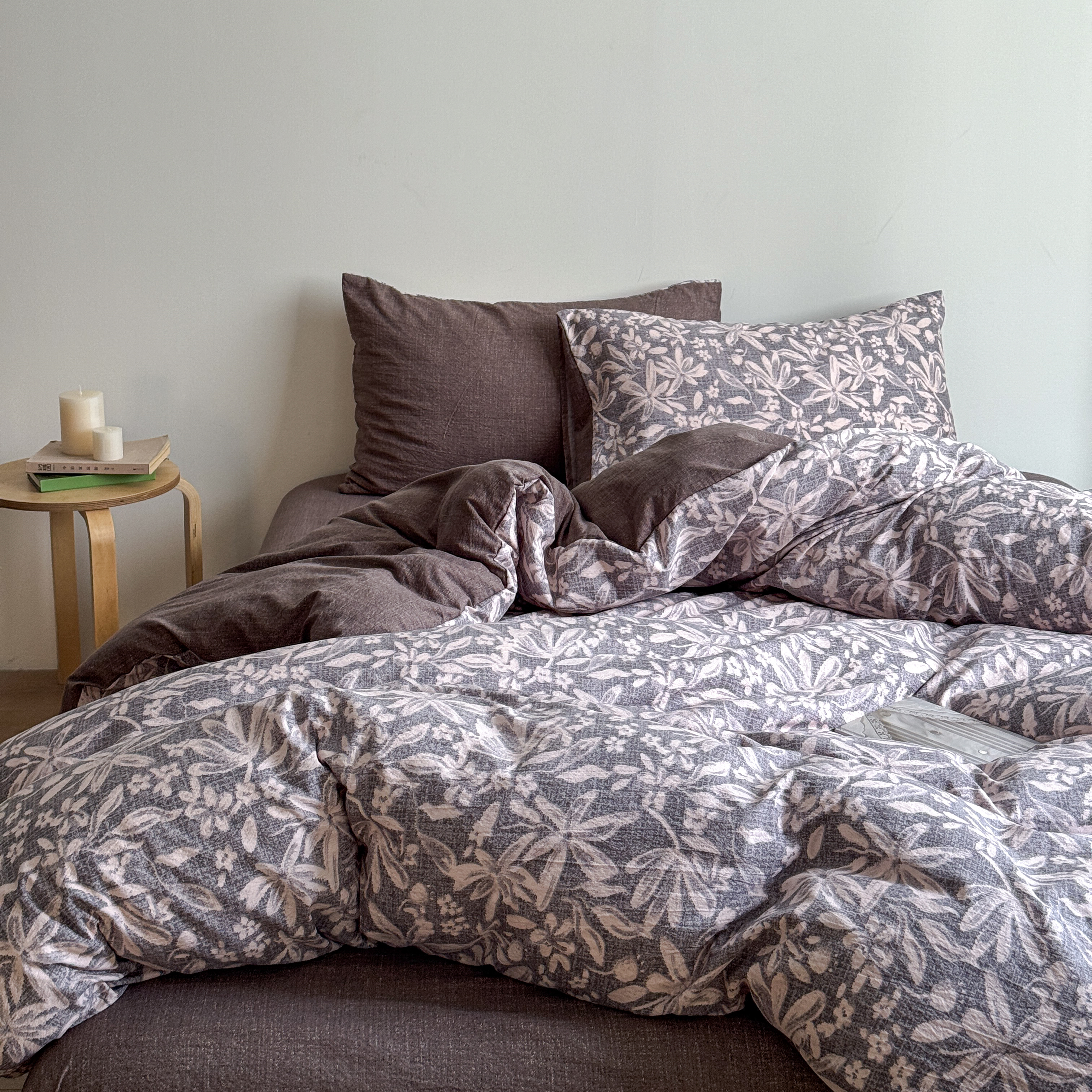 (总)优贝家纺 2025秋冬新款复古风高端提花水洗亚麻原麻棉麻四件套,褐枝,花眠,花瀑,花影,暖棕,雾灰,雅褐,紫菀,棕影
