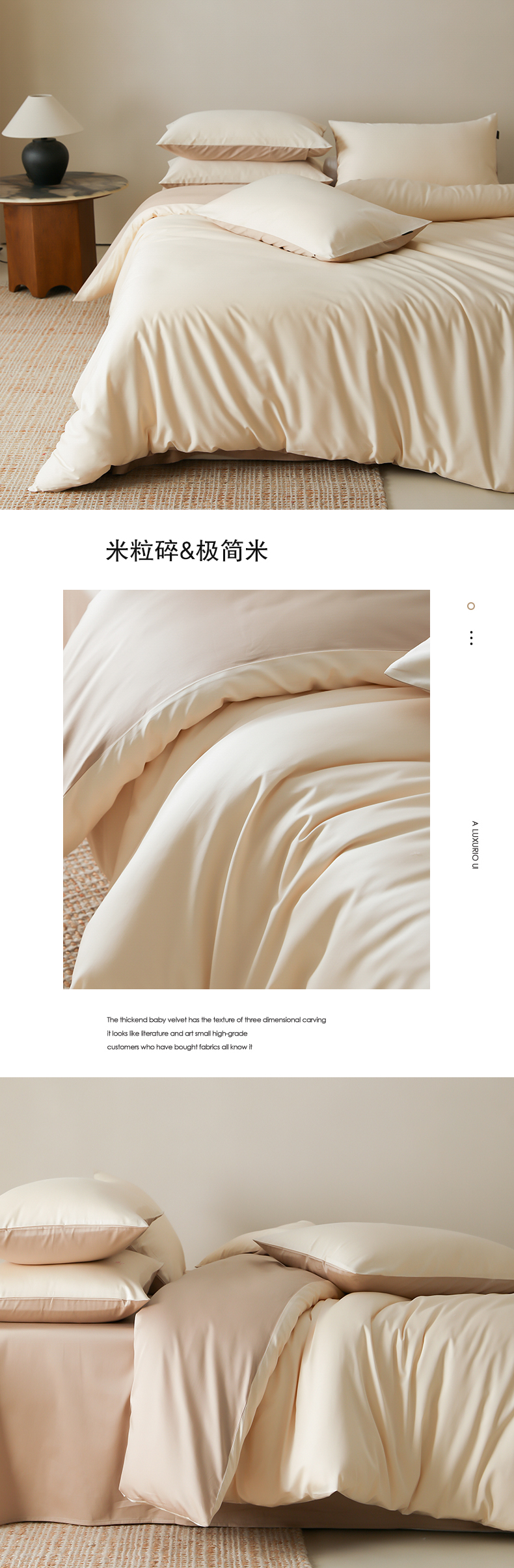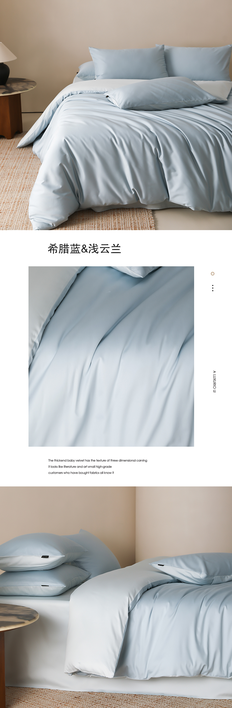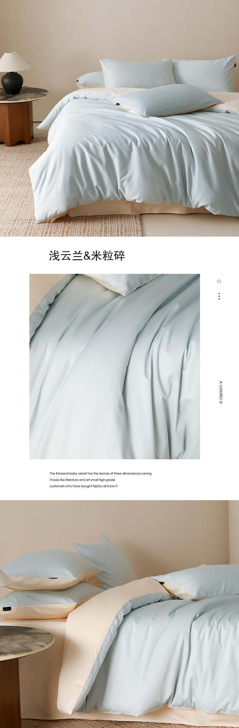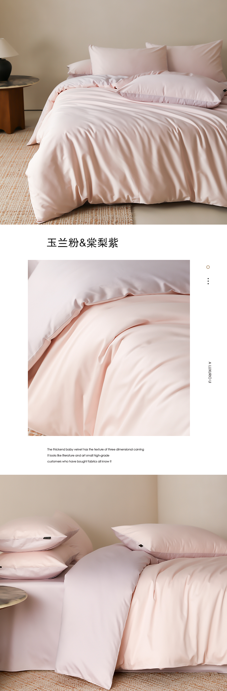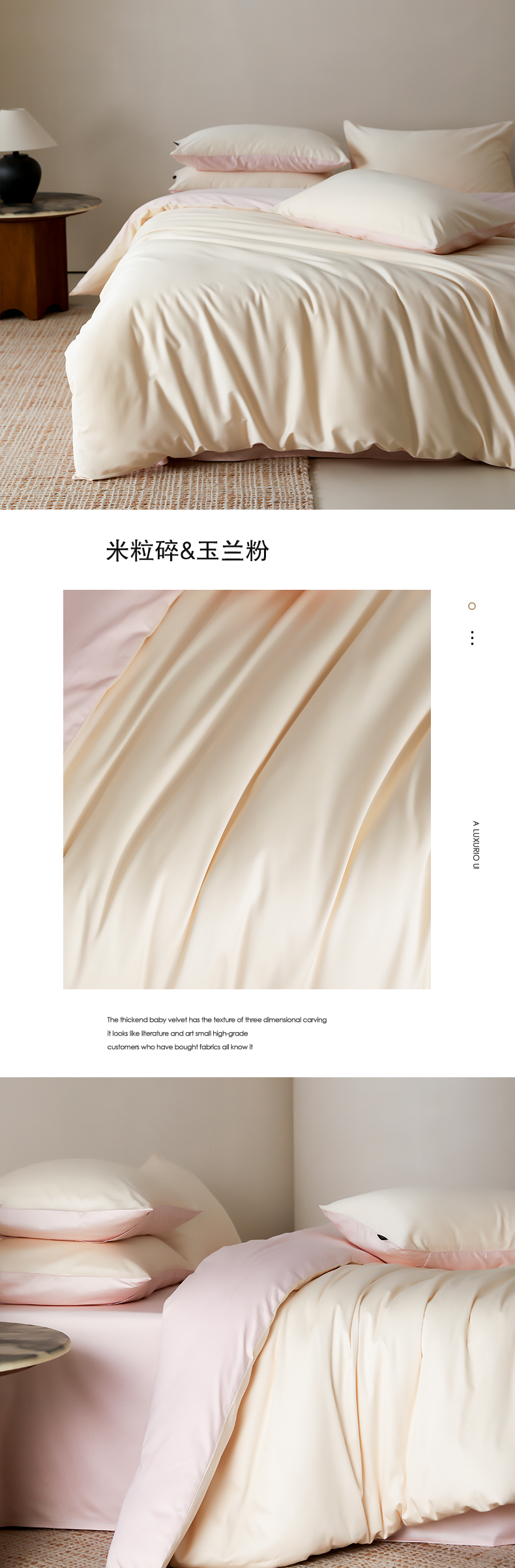 (总)云栖家居 2025秋冬新款50支纯色双拼加厚全棉磨毛被套刺绣100S纯棉四件套-小蝴蝶系列,粉灰,粉紫,蓝灰,米玉,月光黄
