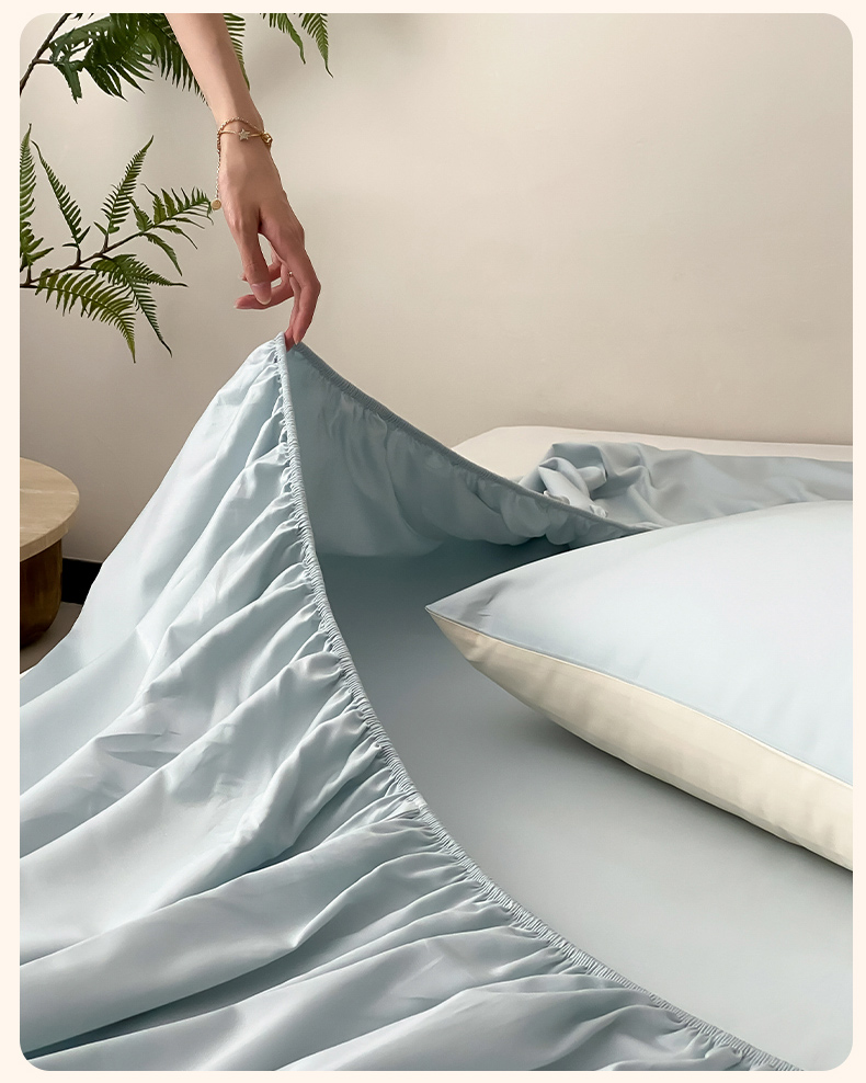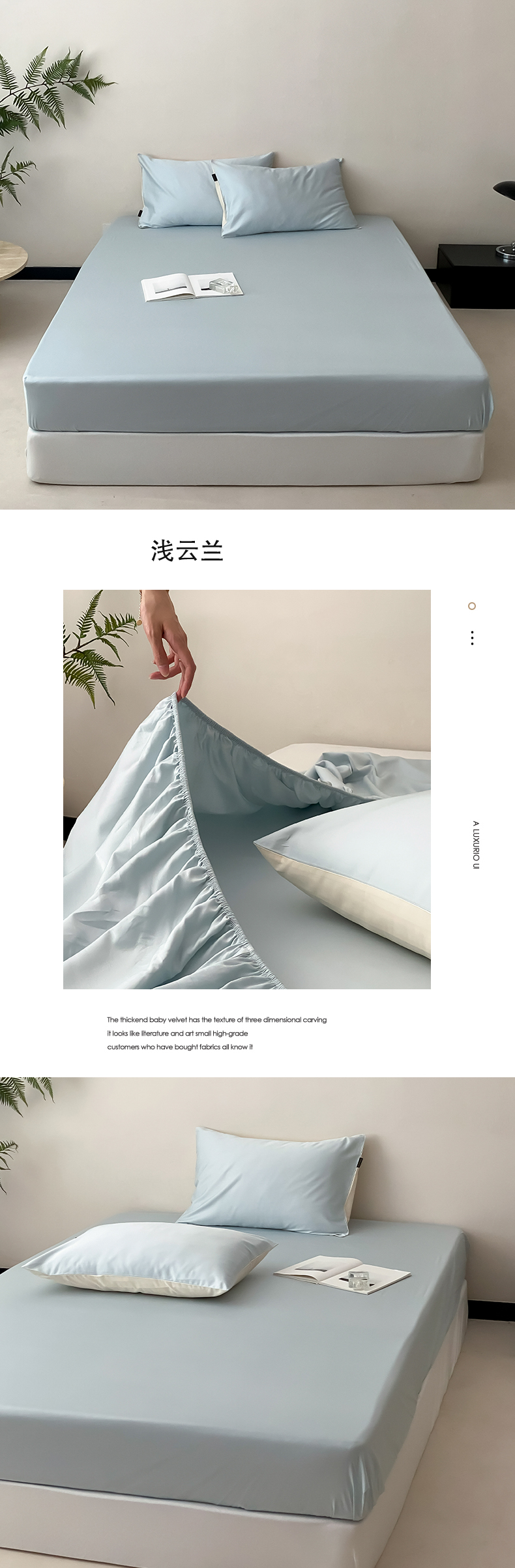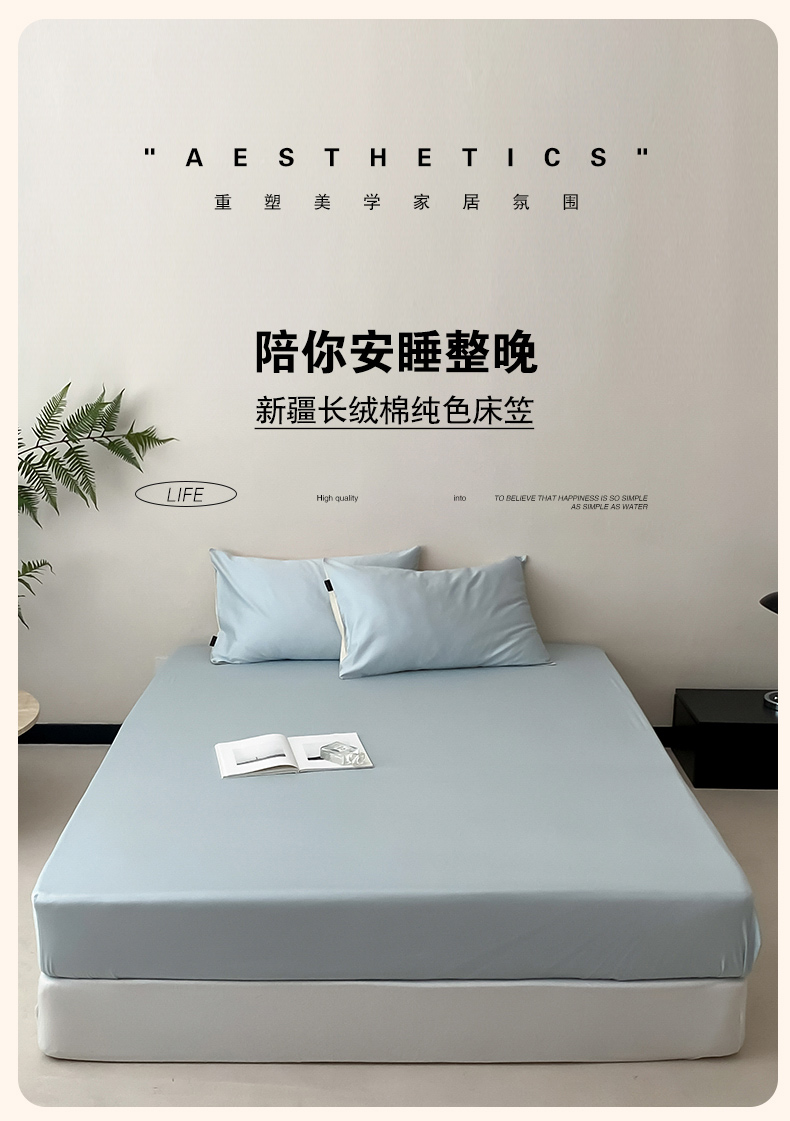 云栖家居 2025新款全棉纯色长绒棉纯棉单品系列床笠单件床笠单品-单床笠 浅云兰