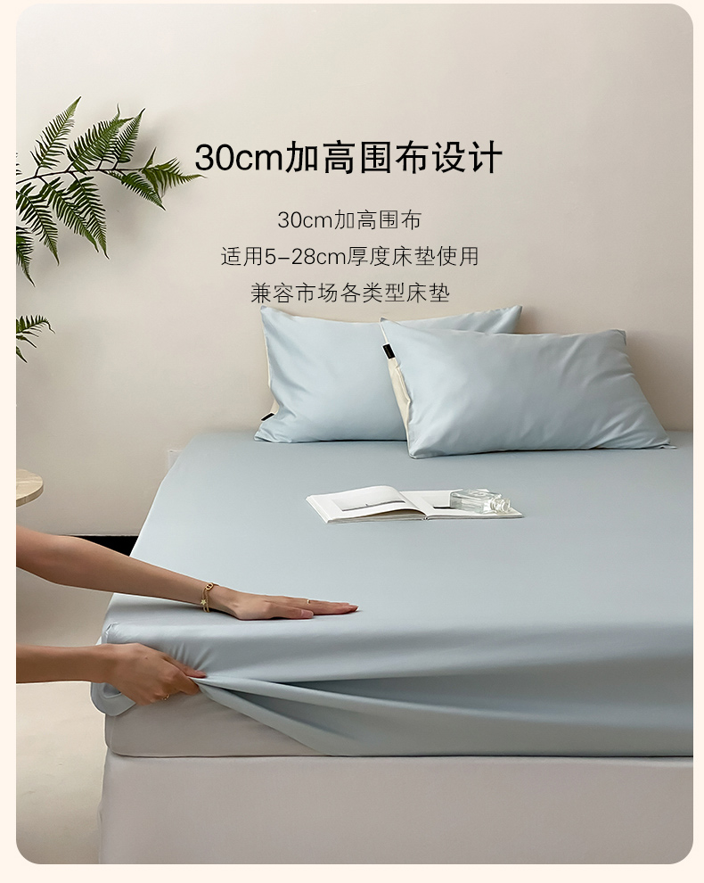 商品名称:云栖家居 2025新款全棉纯色长绒棉纯棉单品系列床笠单件床笠单品-单床笠 浅云兰