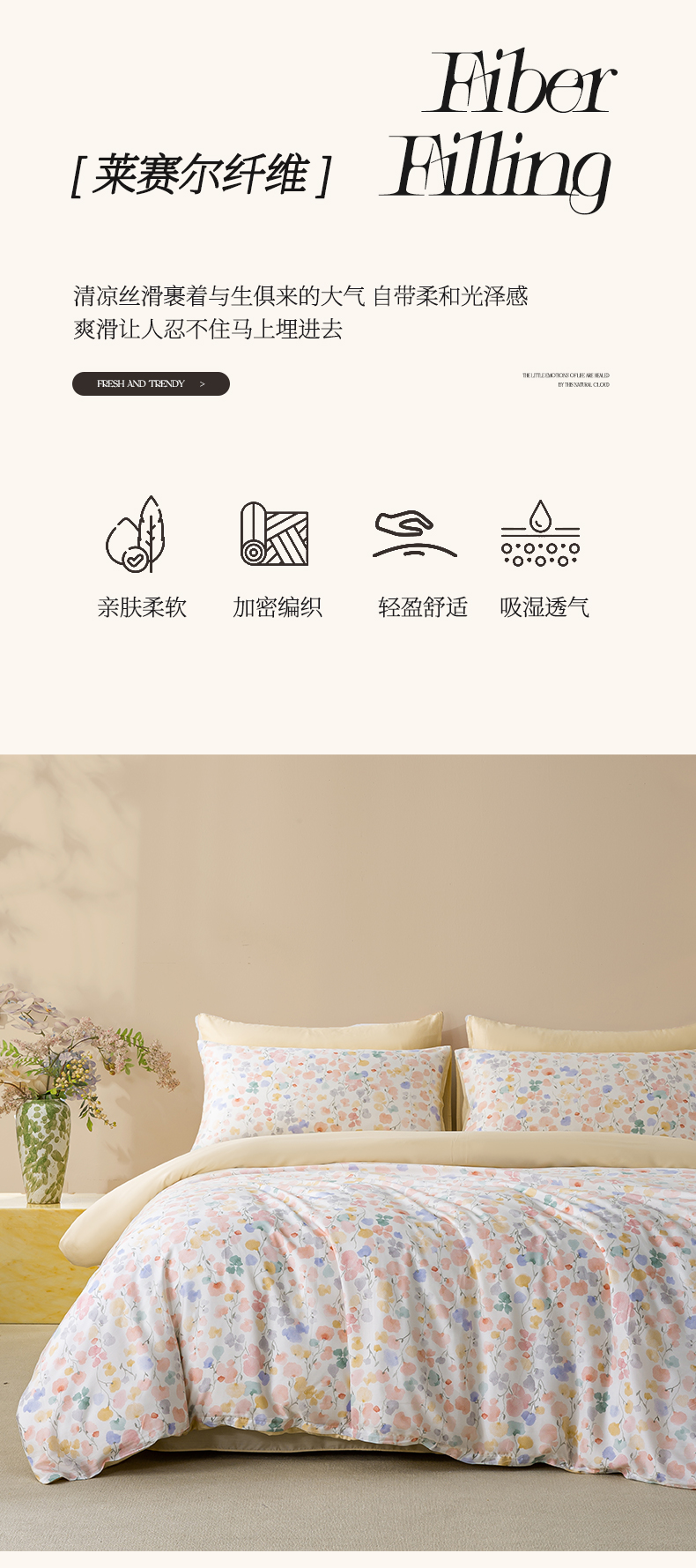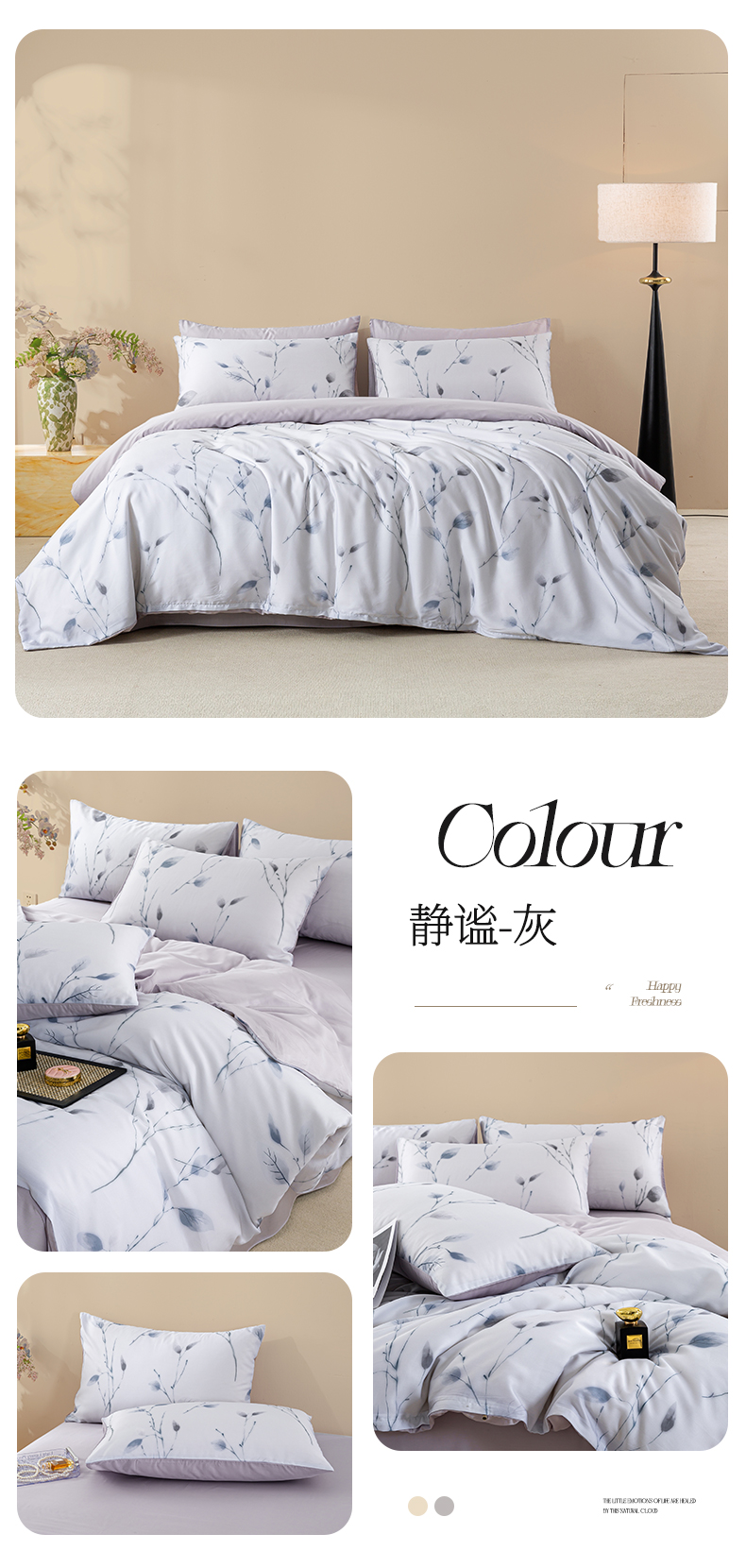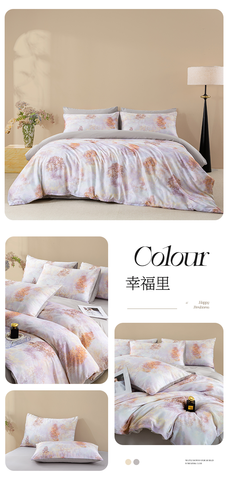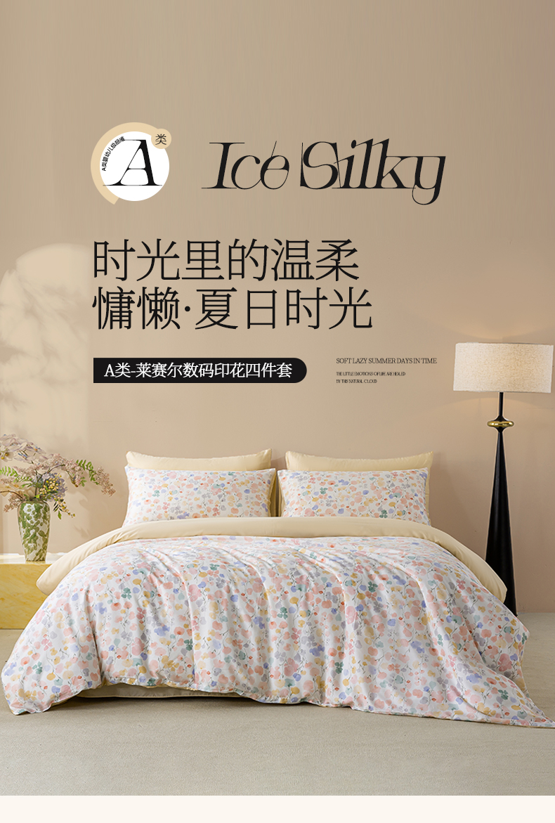 商品名称:麦田家纺 2025新款50S莱赛尔天丝印花四件套 含依