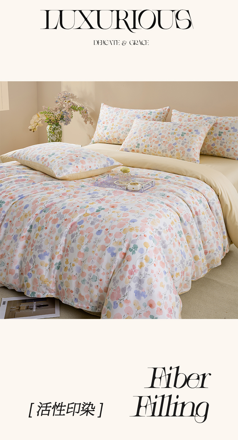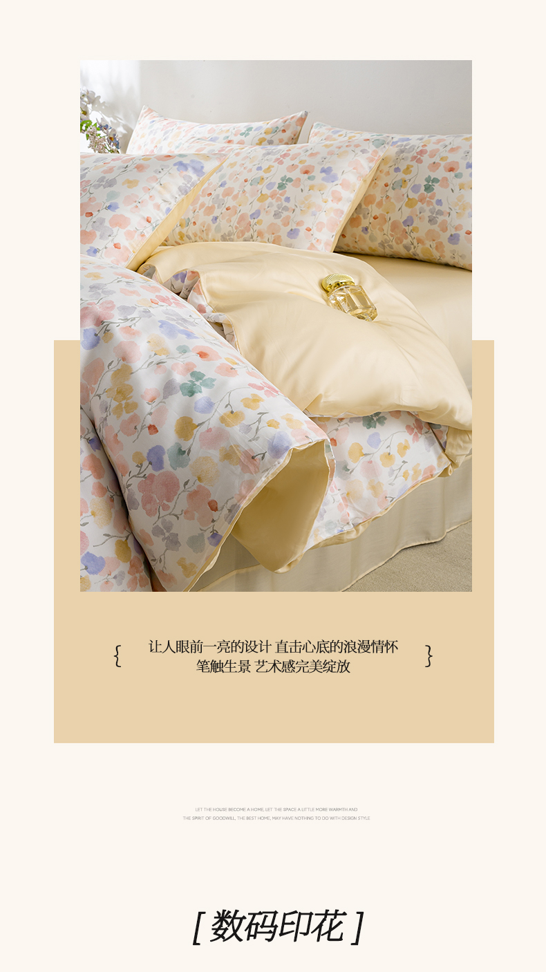 麦田家纺 2025新款50S莱赛尔天丝印花四件套 含依