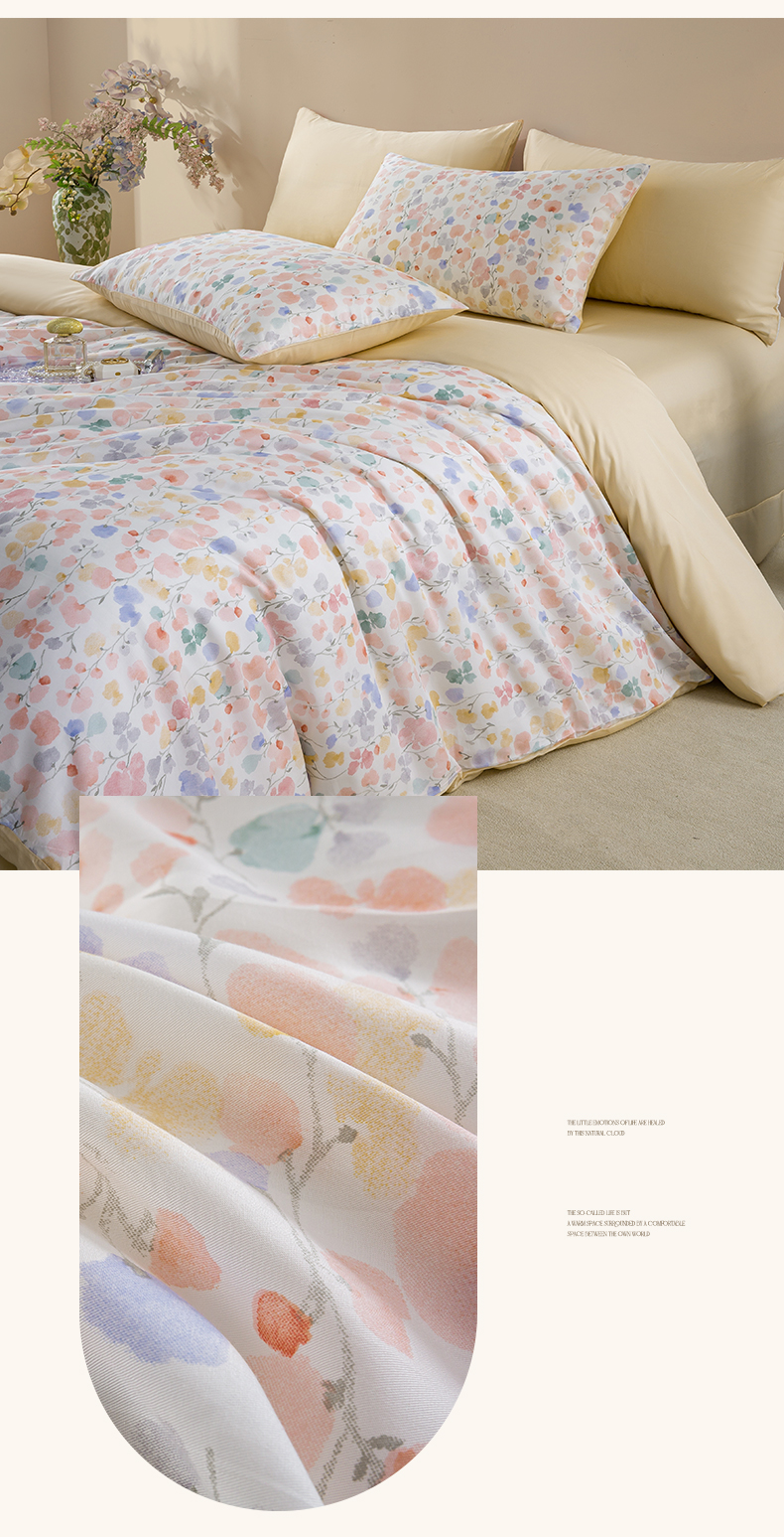 (总)麦田家纺 2025新款A类云感木棉皱皱双层纱印花四件套,春意浓,繁花,花颜,简意,开心小熊,腊肠犬,浪漫花语,免挽星辰,甜心格,小蓝町,樱桃格,紫韵
