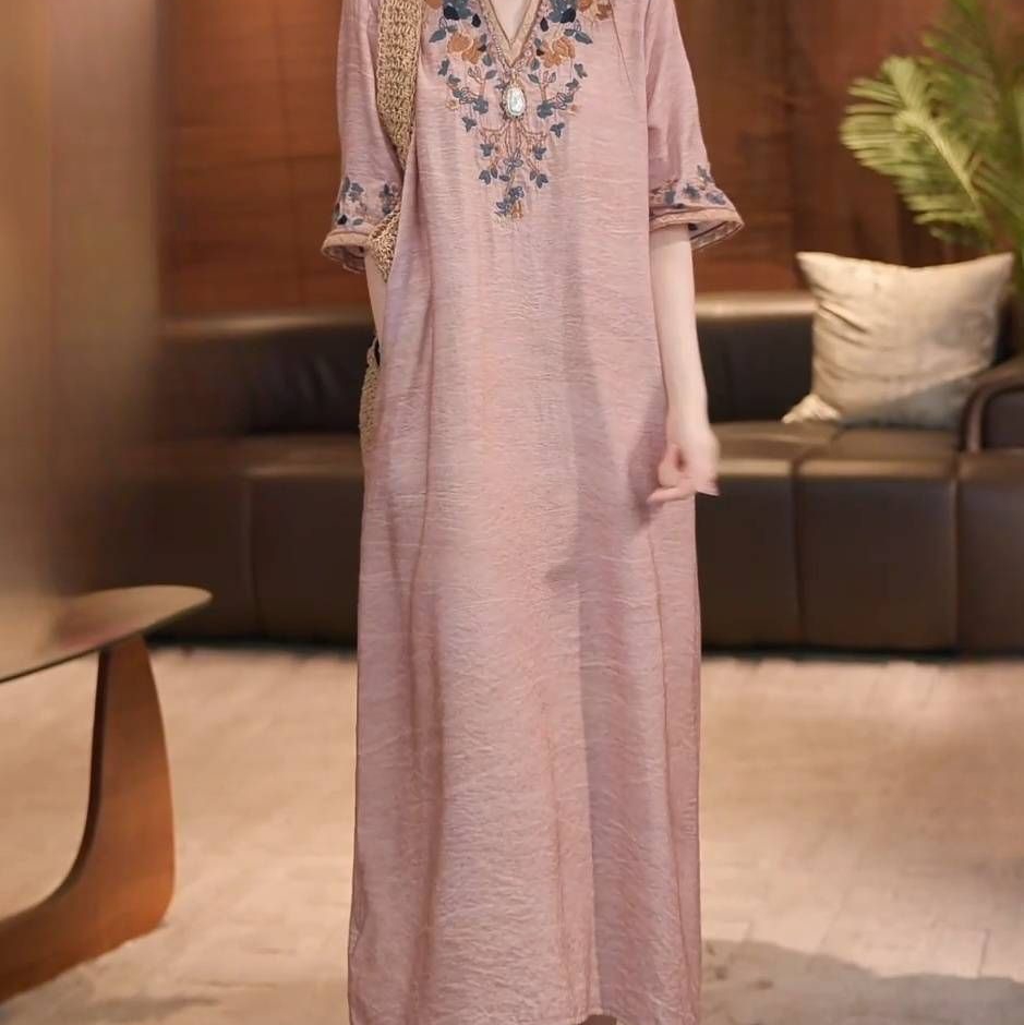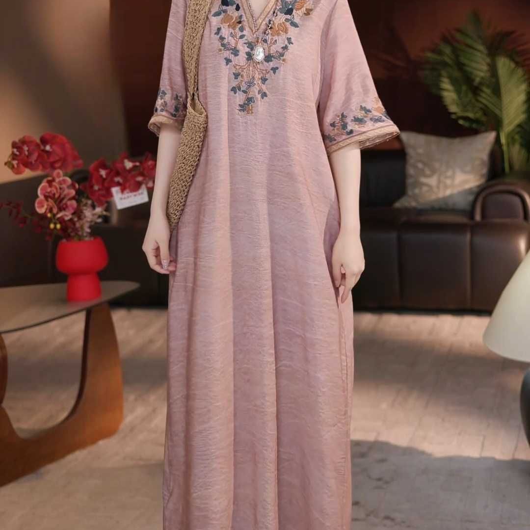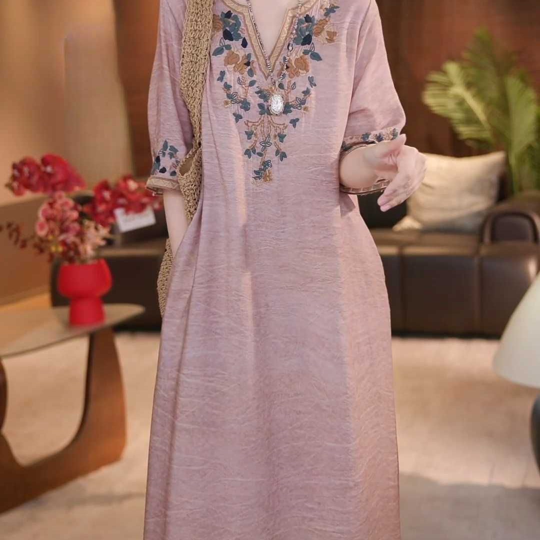 (总)洛兰沙家居馆【只代发】【只代发】 2025夏秋季新款复古苎麻重工刺绣上衣宽松洋气休闲文艺新中式款连衣裙
