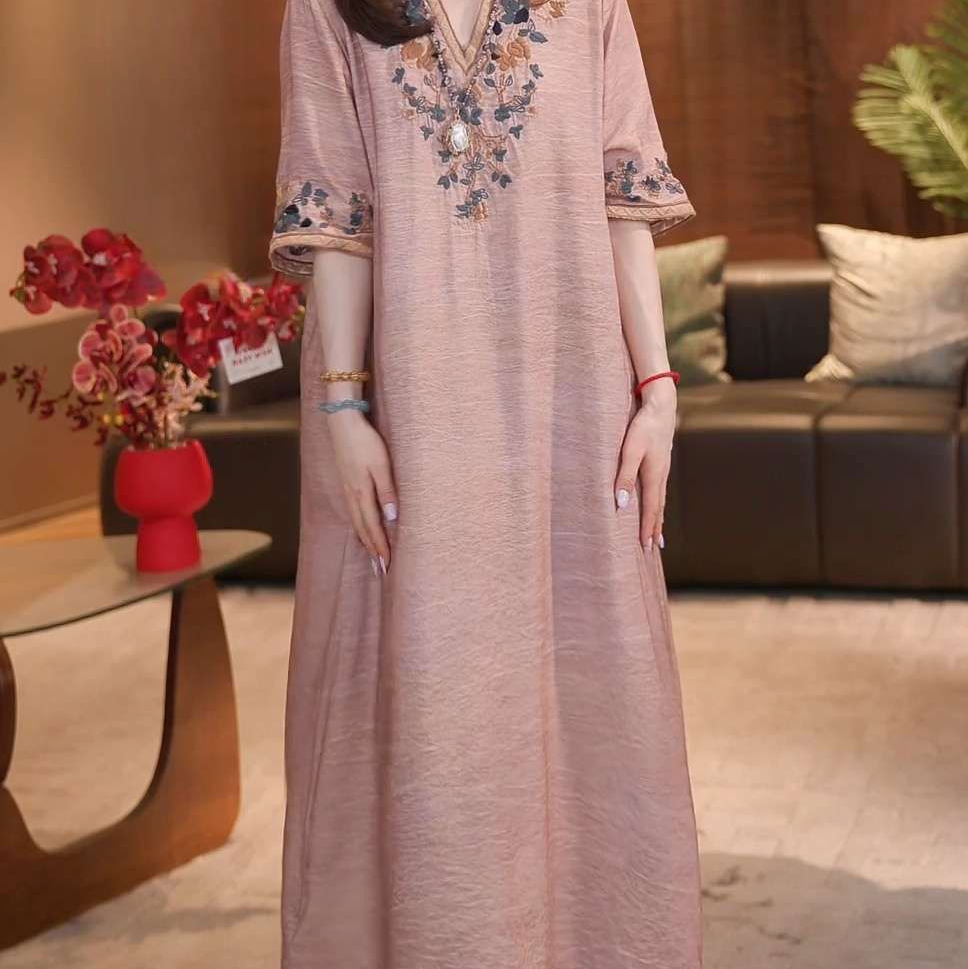 商品名称:(总)洛兰沙家居馆【只代发】【只代发】 2025夏秋季新款复古苎麻重工刺绣上衣宽松洋气休闲文艺新中式款连衣裙