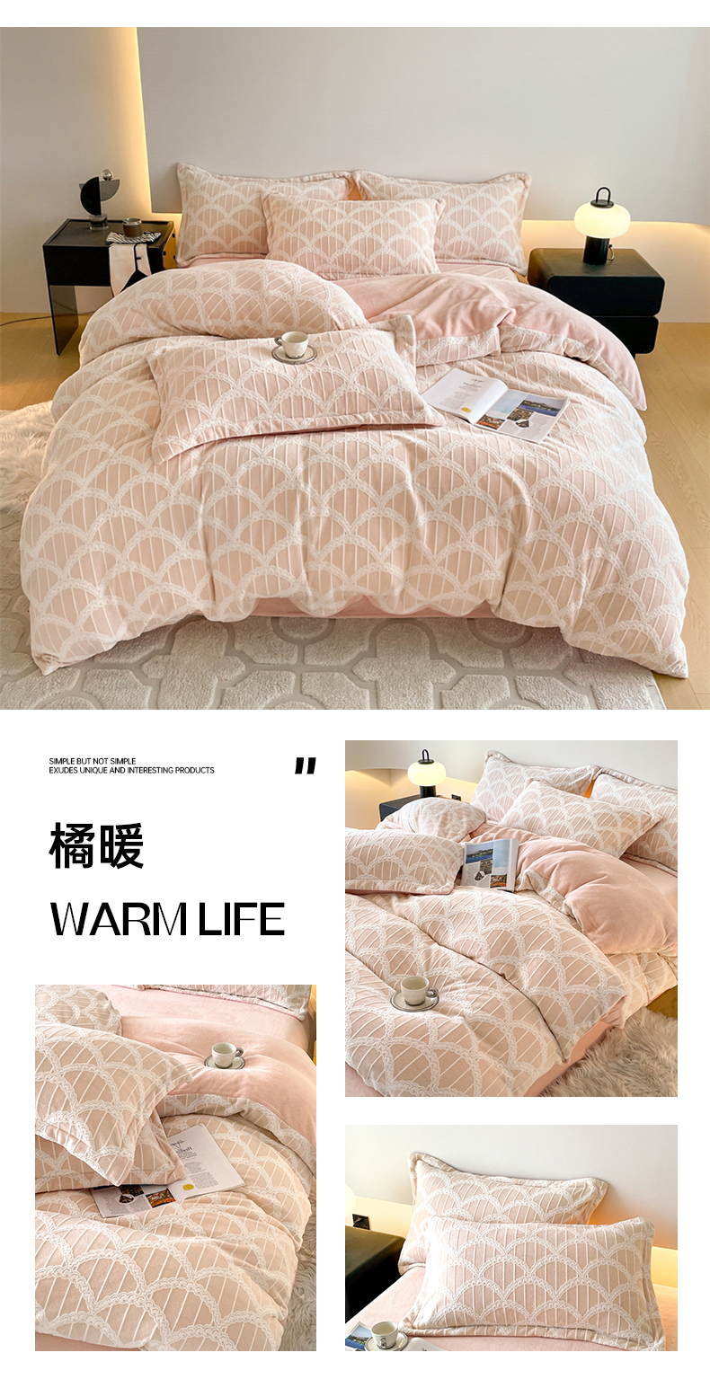 玉相逢 2025秋冬新款A类高克重牛奶绒立体亲肤绒浮雕雕花绒四件套 橘暖