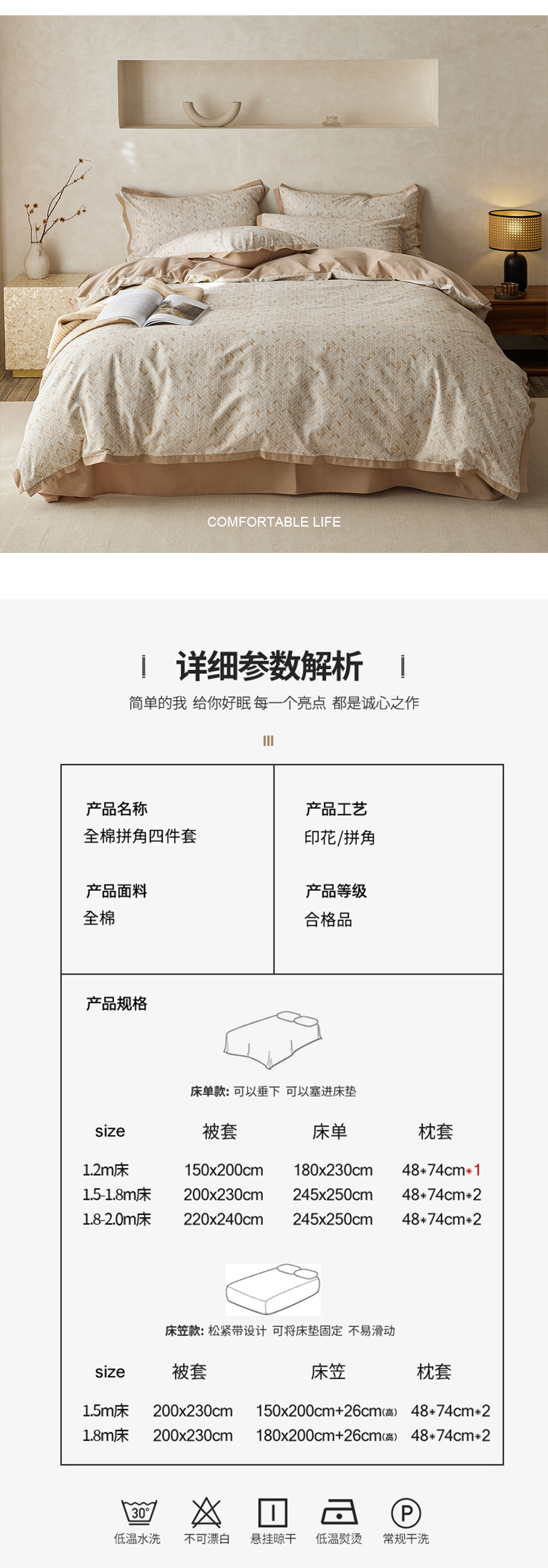 千朵森 2025新款全棉高定印花磨毛拼角四件套-风格一 似锦
