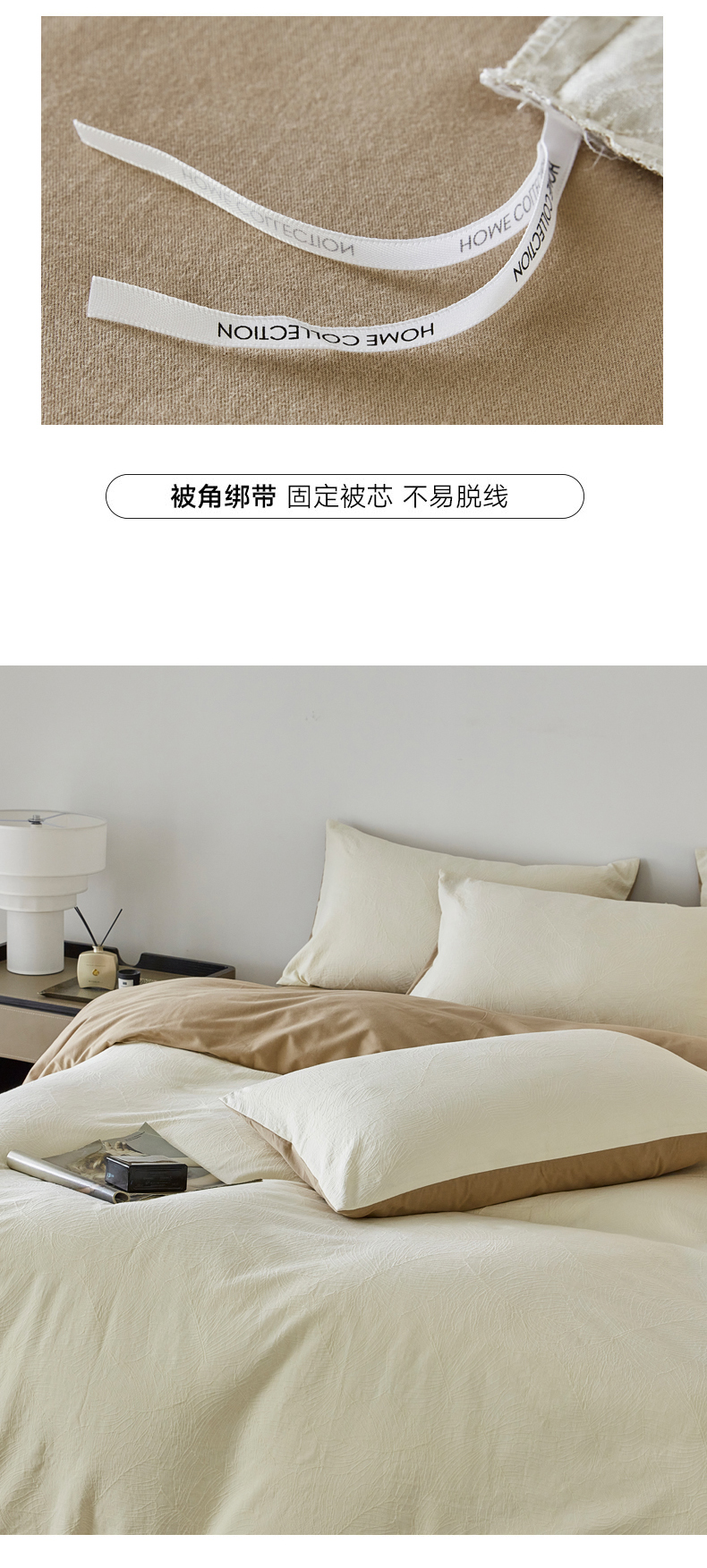 商品名称:千朵森 2025新款全棉色织提花磨毛四件套-风格二 欧佩斯-奶杏