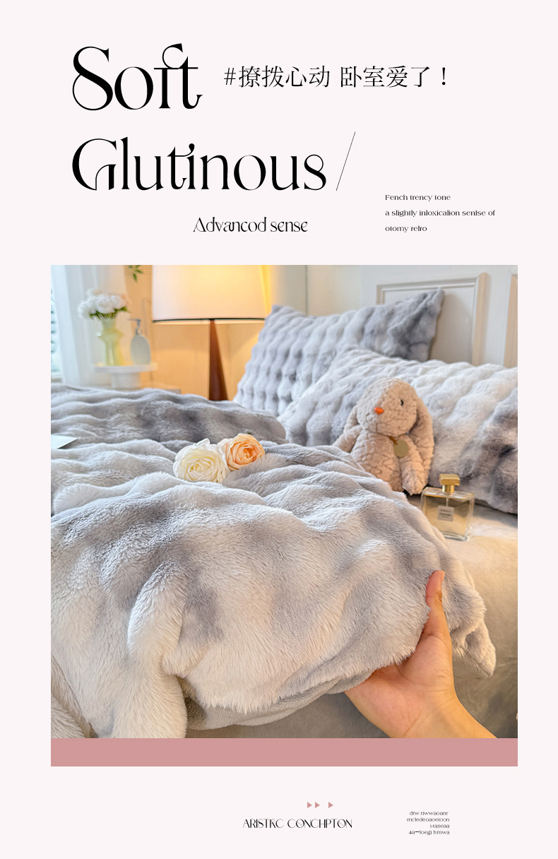 商品名称:唐人居 2025新款泡泡兔毛牛奶绒四件套--七彩 豆沙