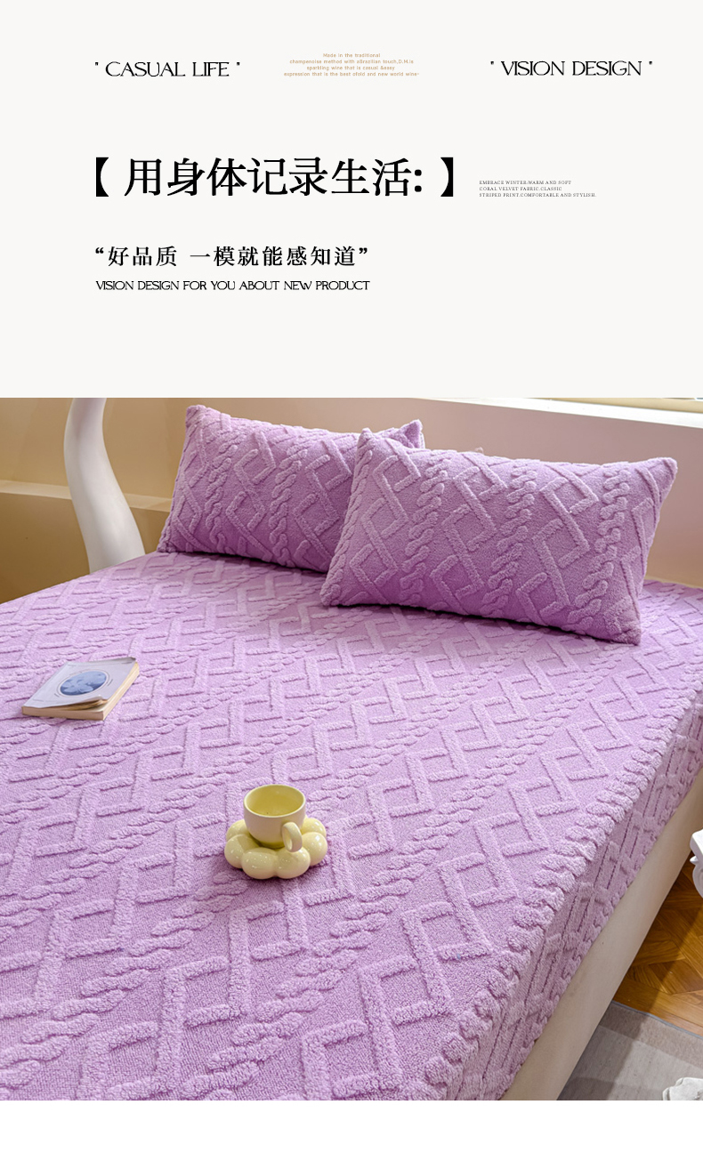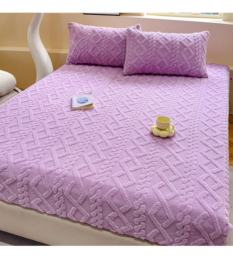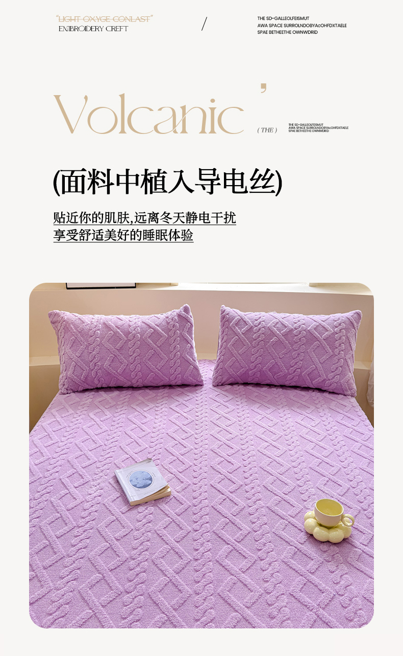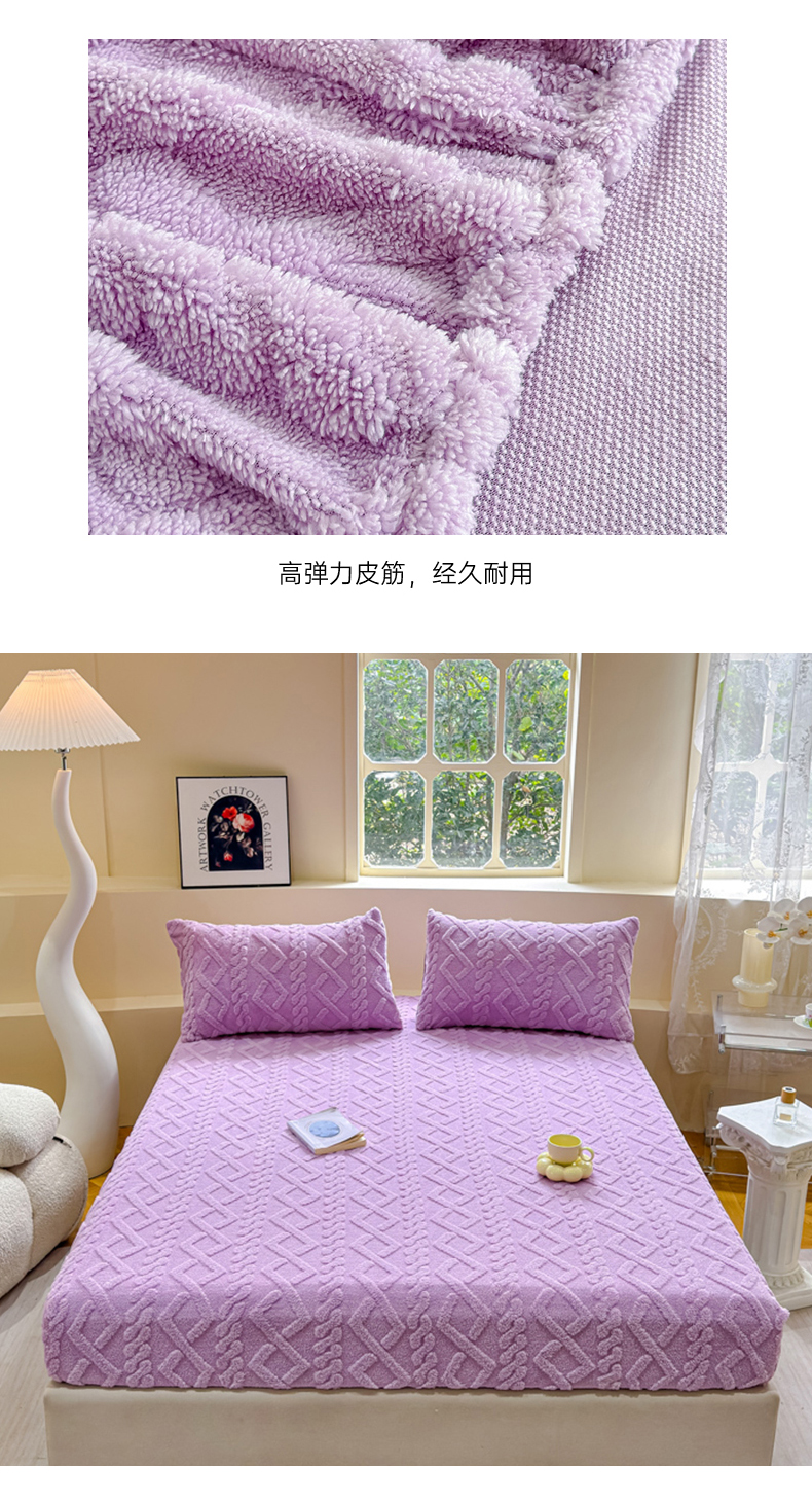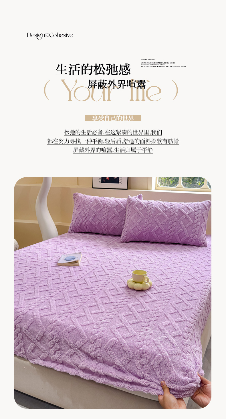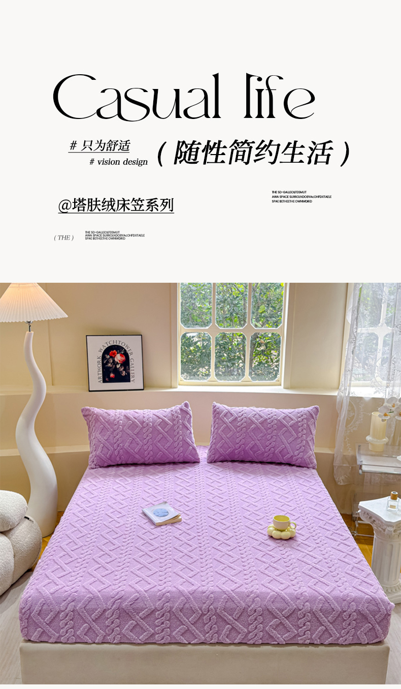 商品名称:睡美人 2025新款塔芙绒纯色立体雕花床笠三件套 塔芙绒香叶紫