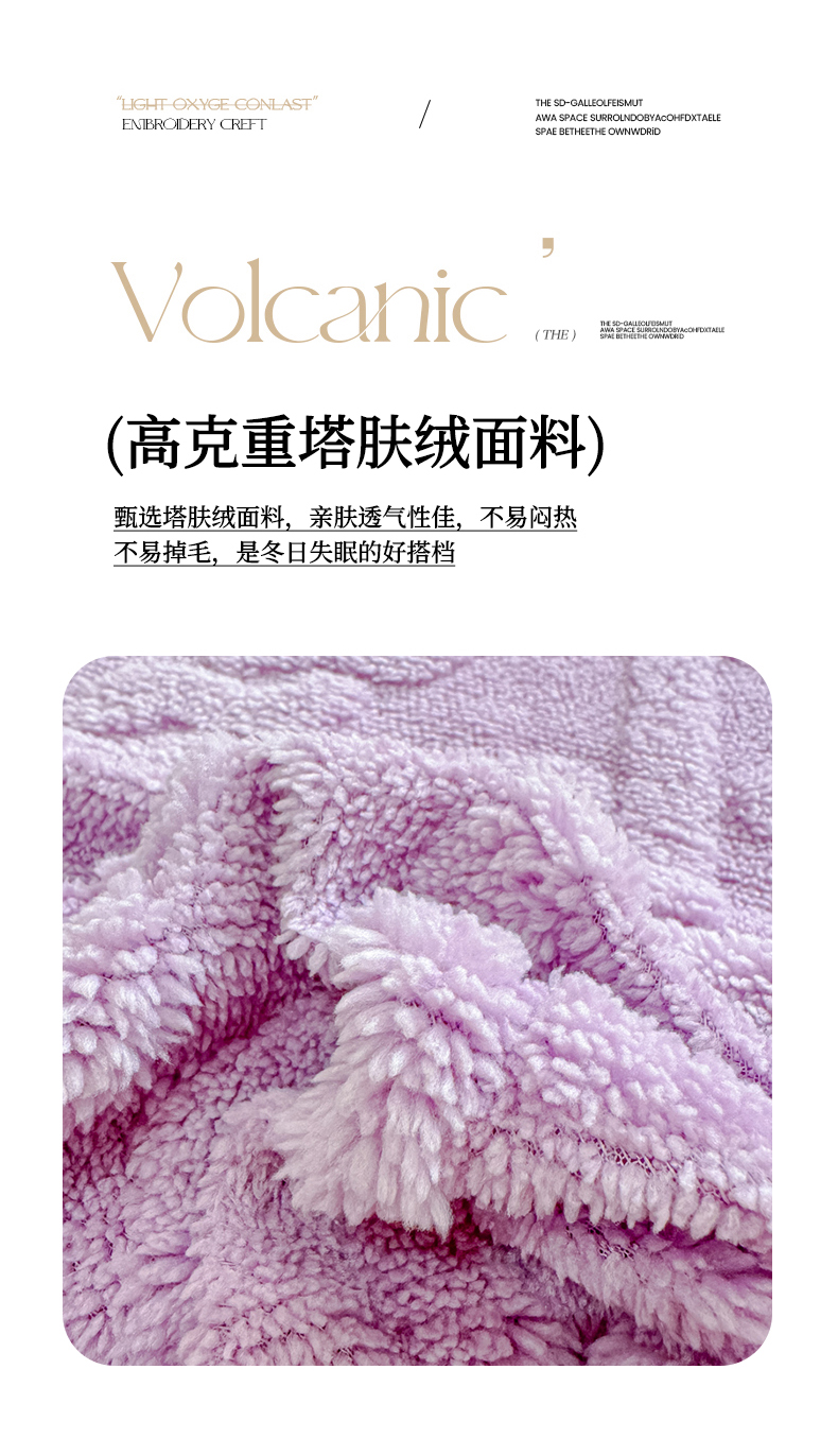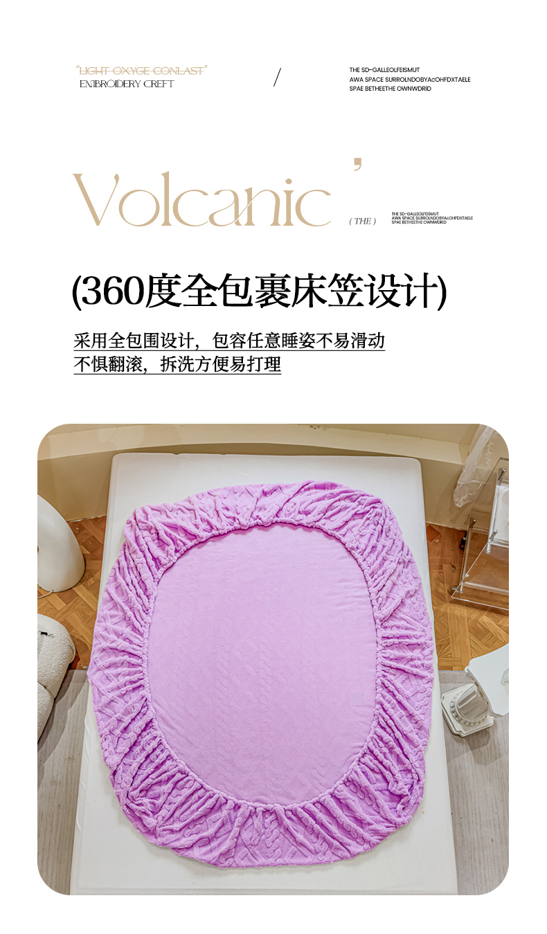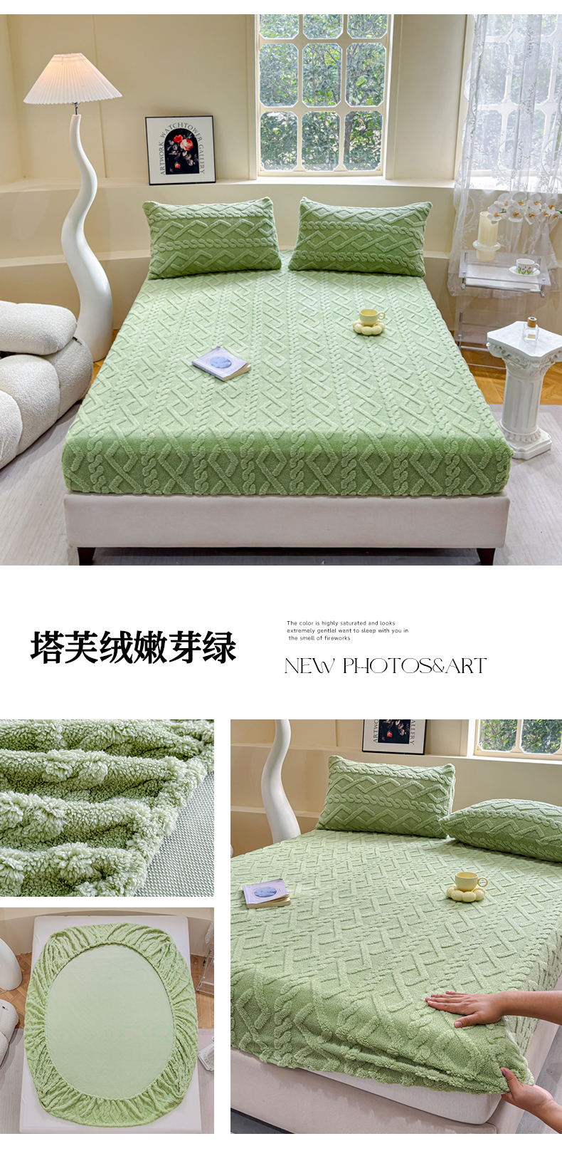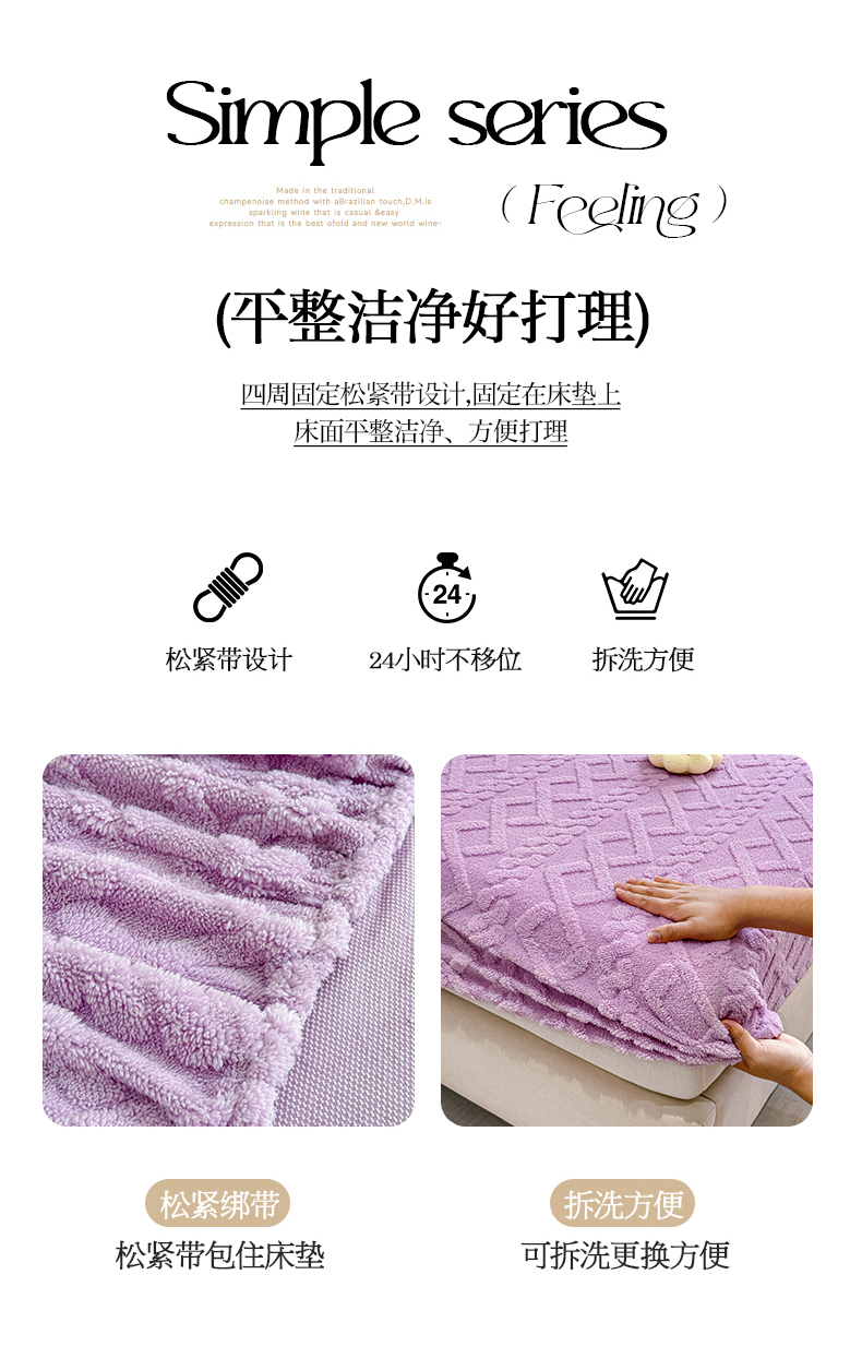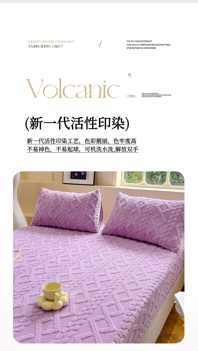 商品名称:睡美人 2025新款塔芙绒纯色立体雕花床笠三件套 塔芙绒香叶紫