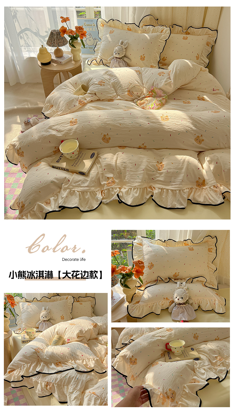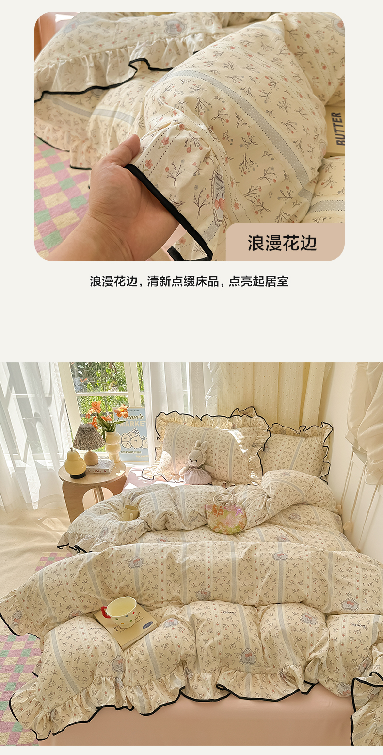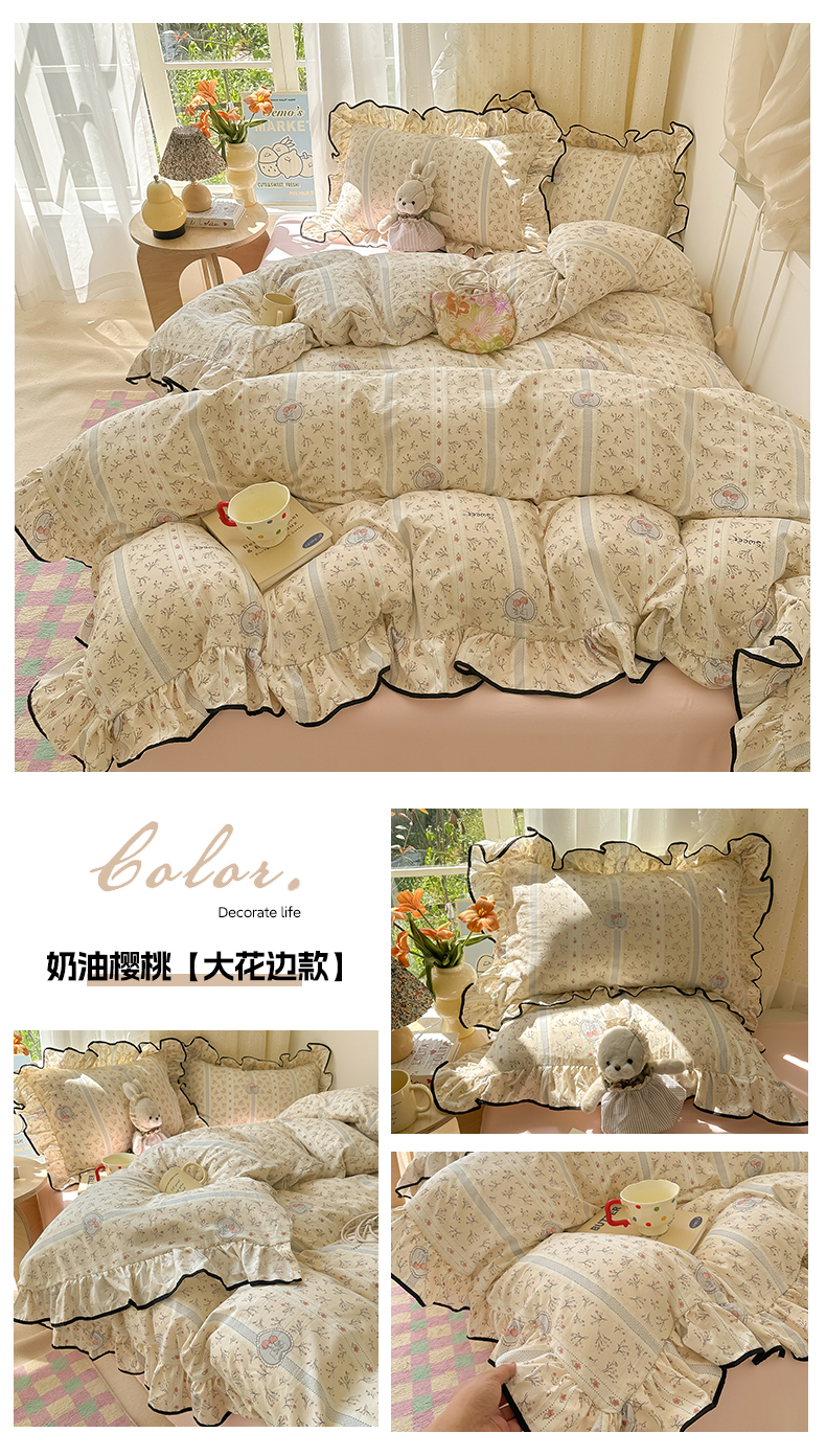当前位置: 91家纺网 > 商品网购 > 床品套件 > 四件套 > 其它四件套 > 韩巢家纺 2025新款水洗棉大花边被套四件套直播热销款学生宿舍被罩床单三件套(提供卖家秀) 奶油樱桃【大花边款】