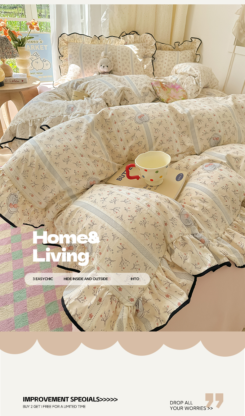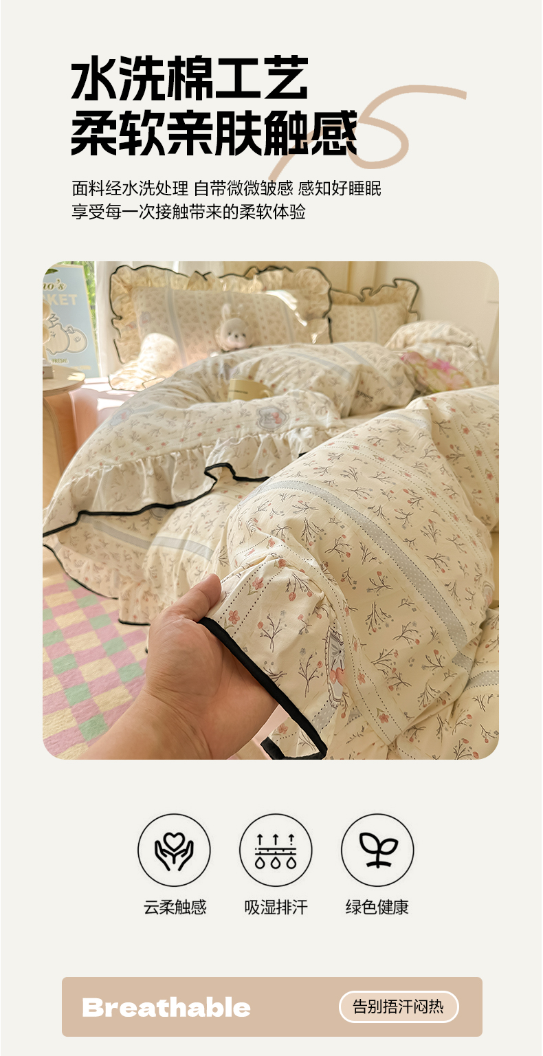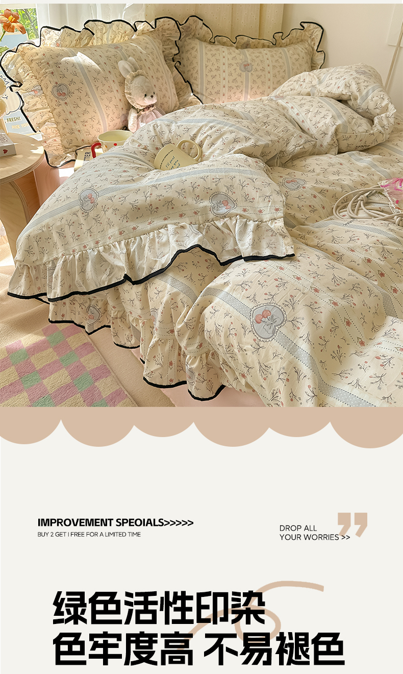 当前位置: 91家纺网 > 商品网购 > 床品套件 > 四件套 > 其它四件套 > 韩巢家纺 2025新款水洗棉大花边被套四件套直播热销款学生宿舍被罩床单三件套(提供卖家秀) 奶油樱桃【大花边款】