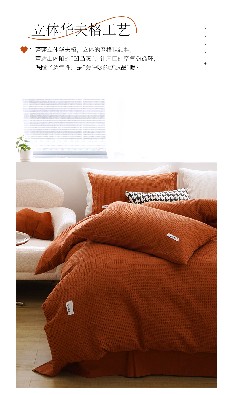 (总)贝尔 PELLHOME 小红书民宿全棉空气提花华夫格四件套纯棉水洗棉小众(可抖音代发)