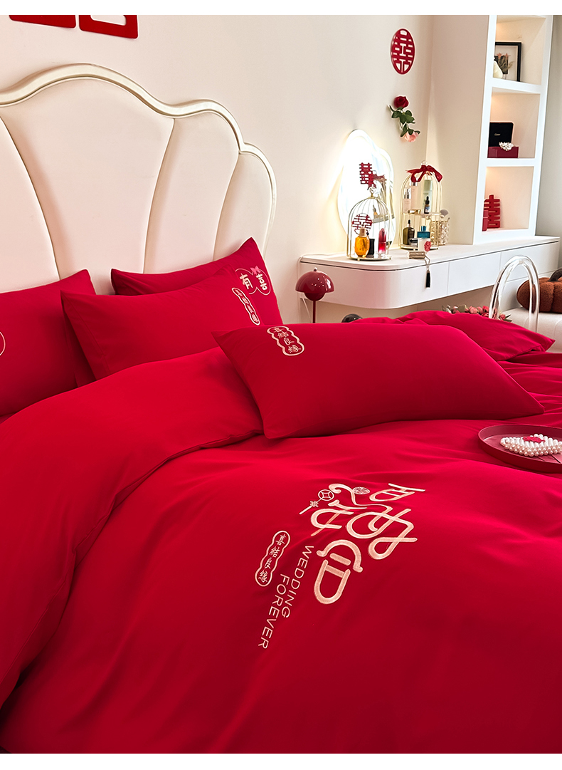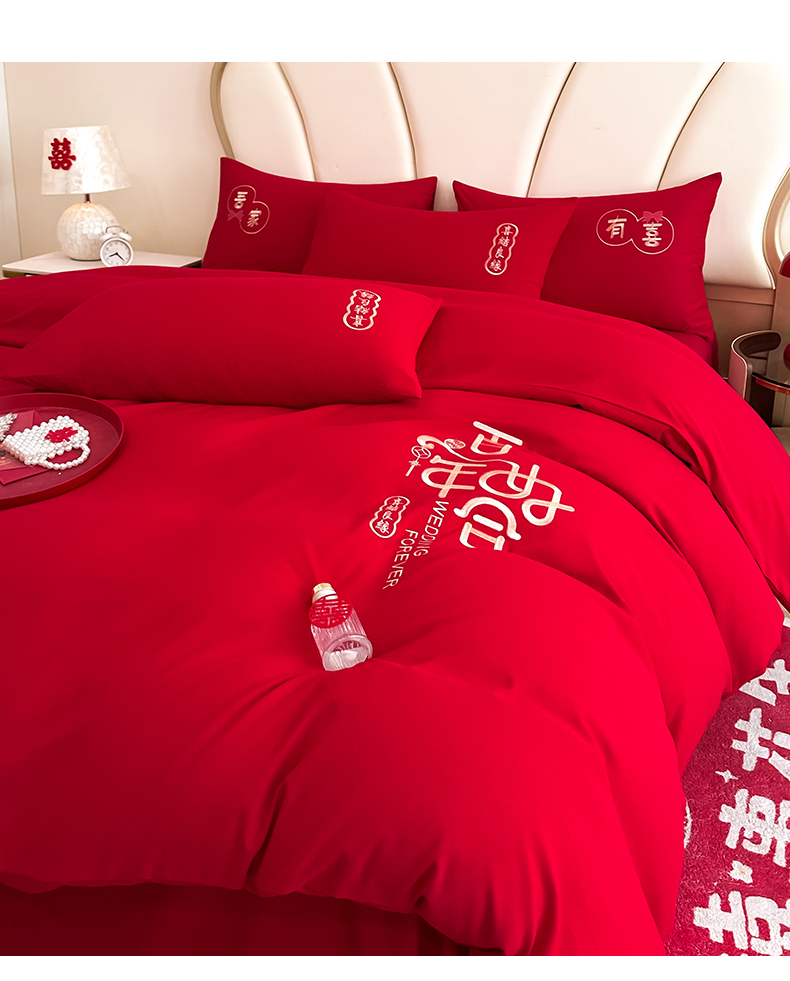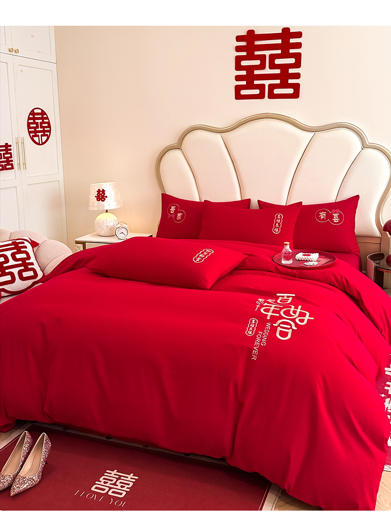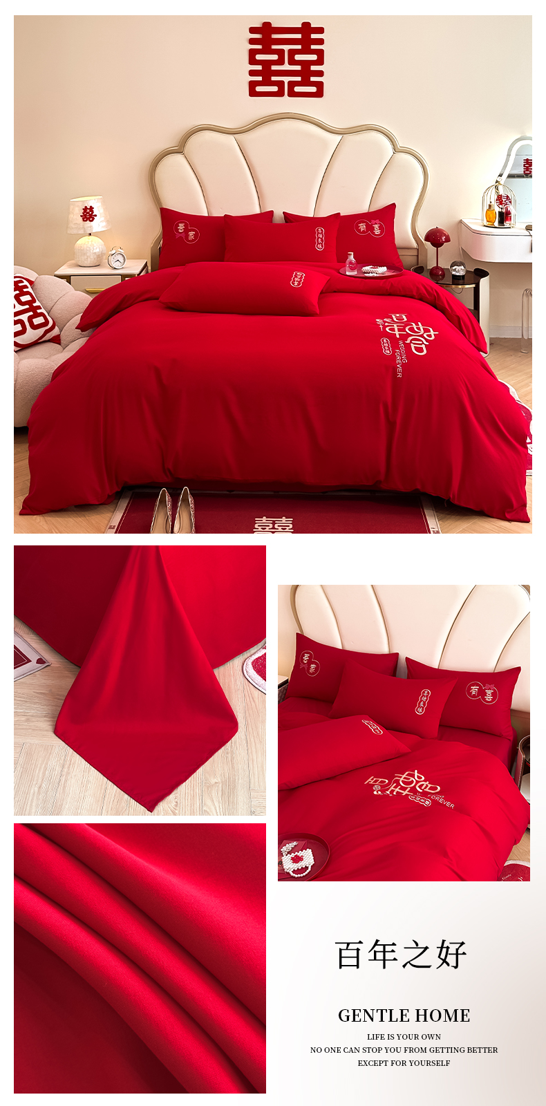 火麒麟家纺 2025新款亲肤棉婚庆刺绣四件套 百年之好