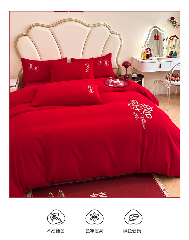 商品名称:火麒麟家纺 2025新款亲肤棉婚庆刺绣四件套 百年之好