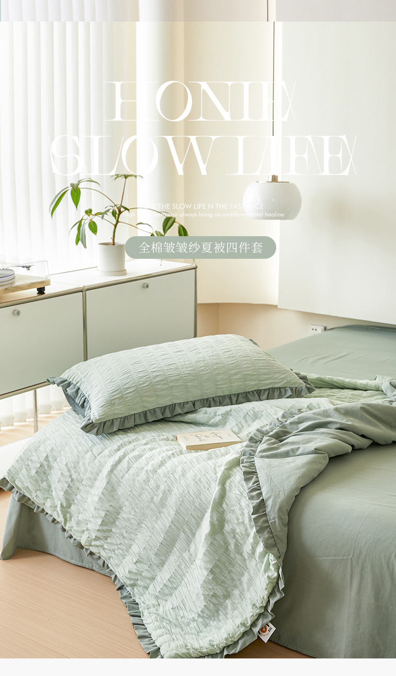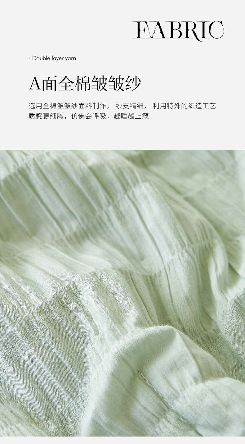 商品名称:贝尔 PELLHOME 全棉皱皱纱夏被夏凉被(可抖音代发) 皱皱纱夏被-绿