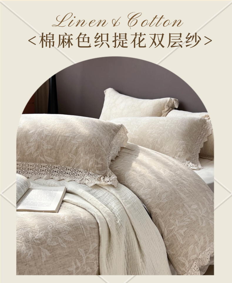 贝尔 2025新款棉麻色织提花双层纱镂空花边款四件套 镂空花边-风吟