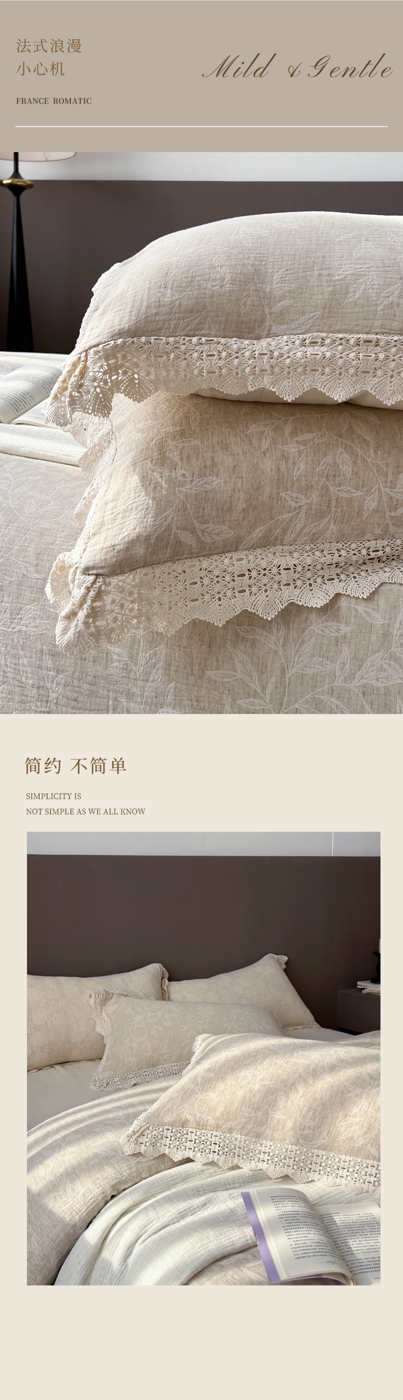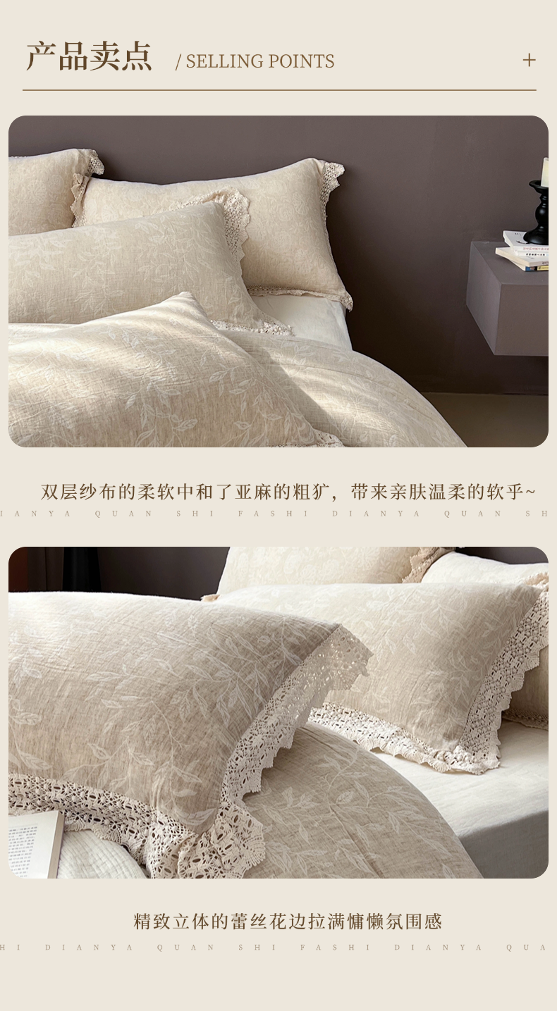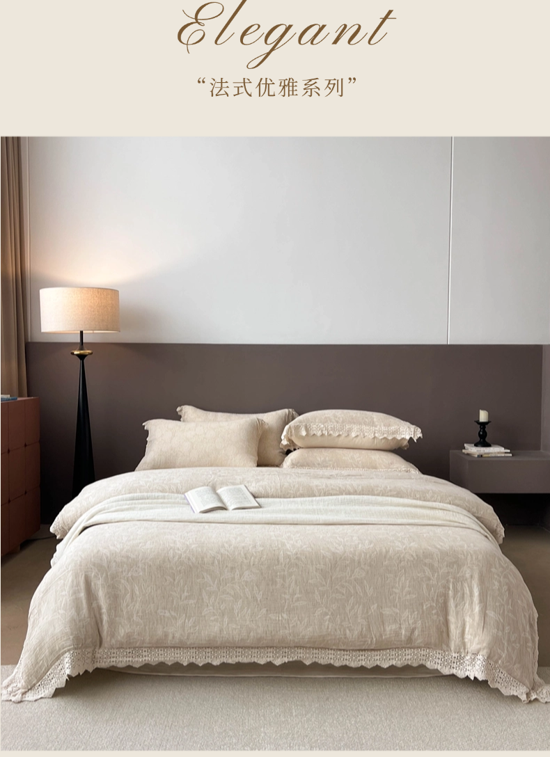 商品名称:贝尔 2025新款棉麻色织提花双层纱镂空花边款四件套 镂空花边-风吟