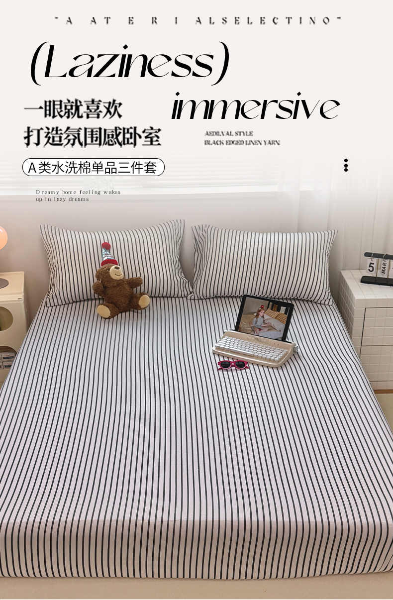 (总)觅妮家纺 2025新款A类水洗棉韩系ins床笠三件套